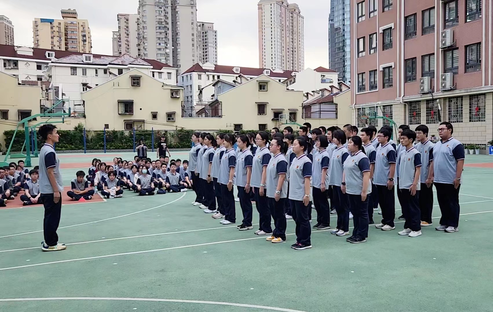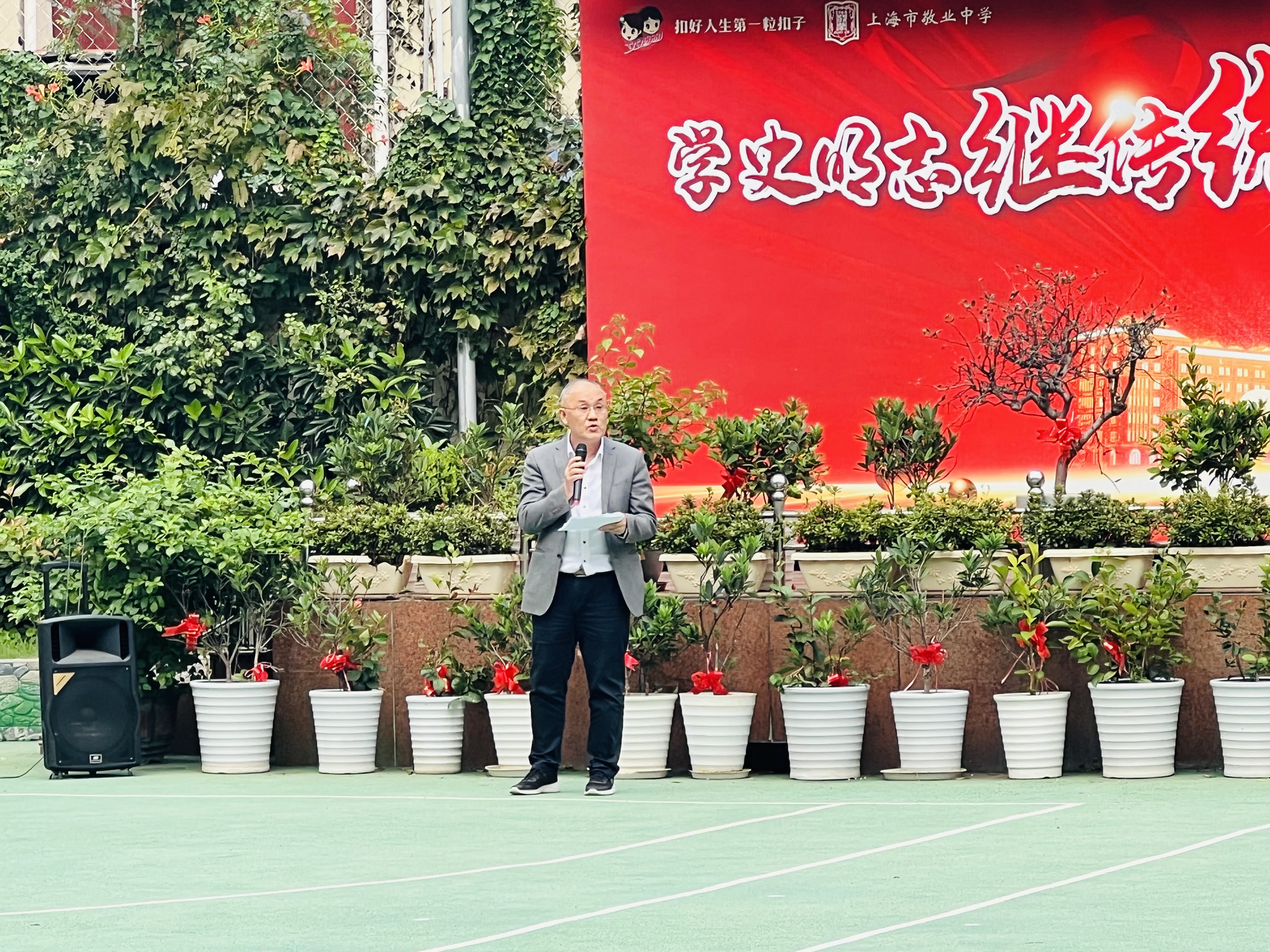 彭本新副校长在会操结束后对同学们的会操情况进行点评。彭校长首先对于同学们的精神面貌提出表扬,赞扬了同学们的进步,敬业男生们雄姿英发,朝气蓬勃;敬业女生们铿锵有力,整齐划一。同时,彭校长也指出了本次会操中存在的不足。有些班级的同学动作不够有力,希望下次能有所进步。