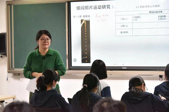 课堂教学中许韫亮老师通过伽利略科学研究的历程,梳理科学研究的基本思路与方法,利用班级同学对落体运动的图片拍摄作为素材开展研究。小组同学经历模型构建、数据测量、数据处理、形成观点。通过三个小组的交流与评价,形成和发展物理学科核心素养。本节课充分体现了深度学习中以学生为中心的课程设计理念。