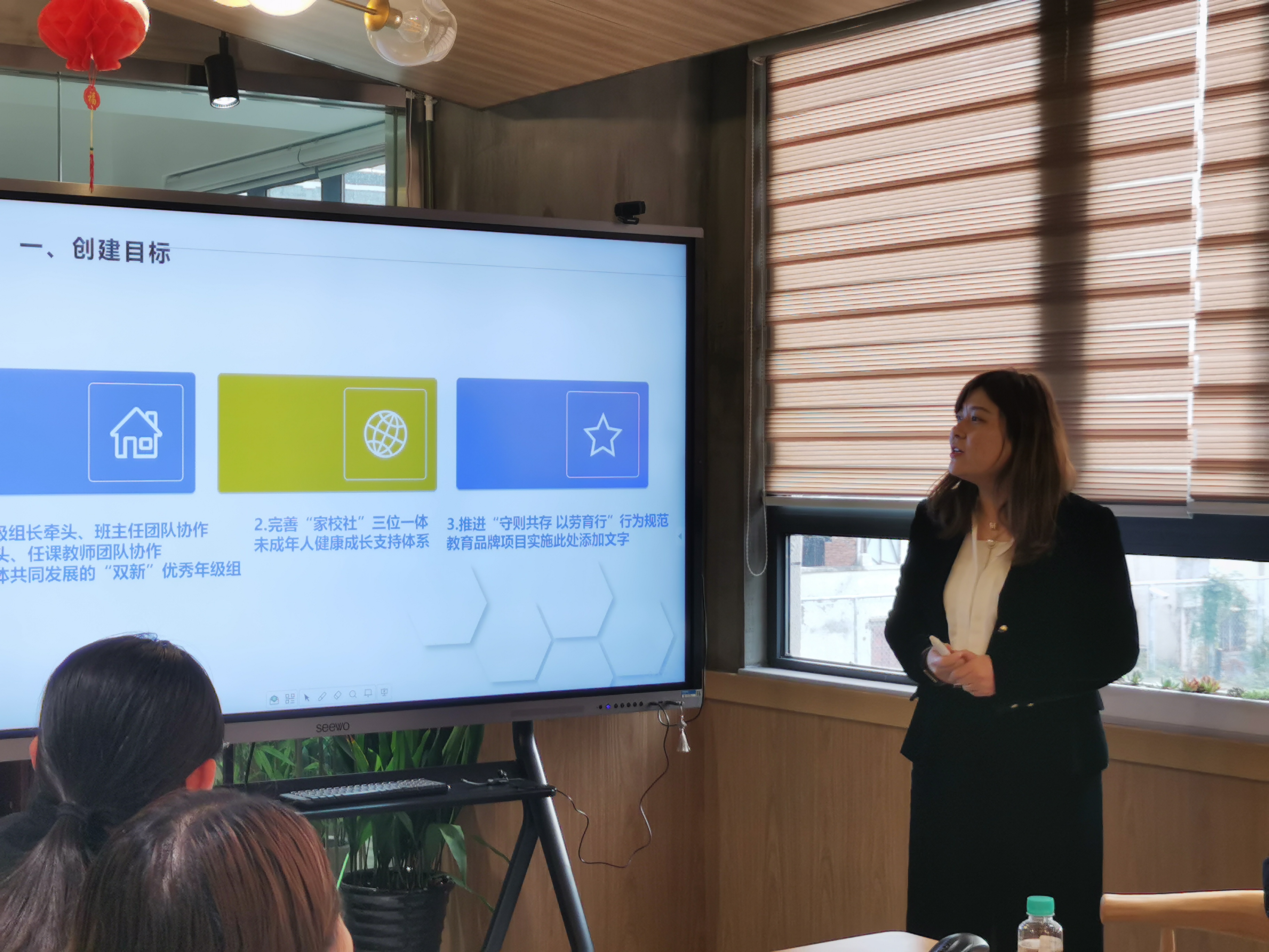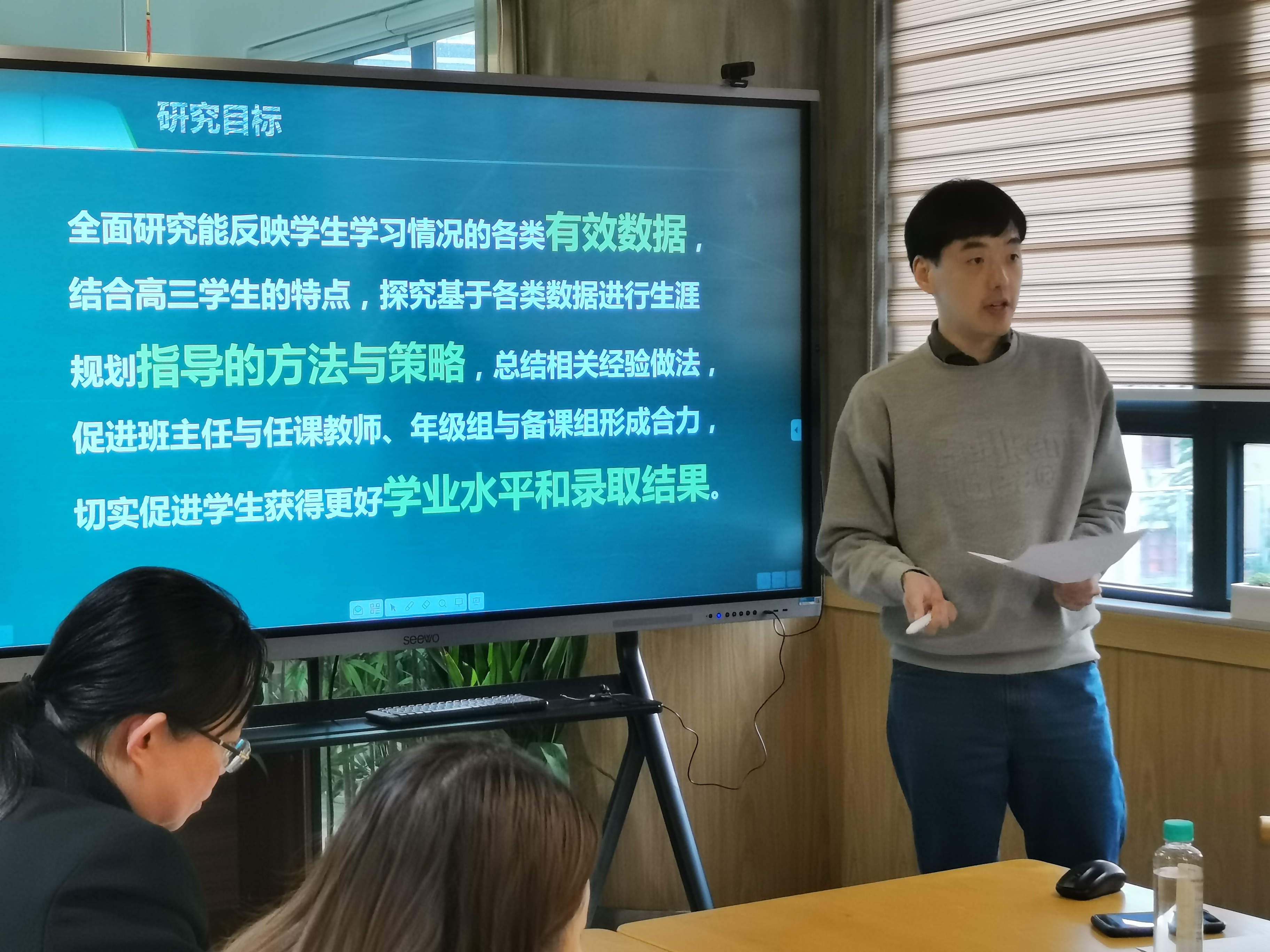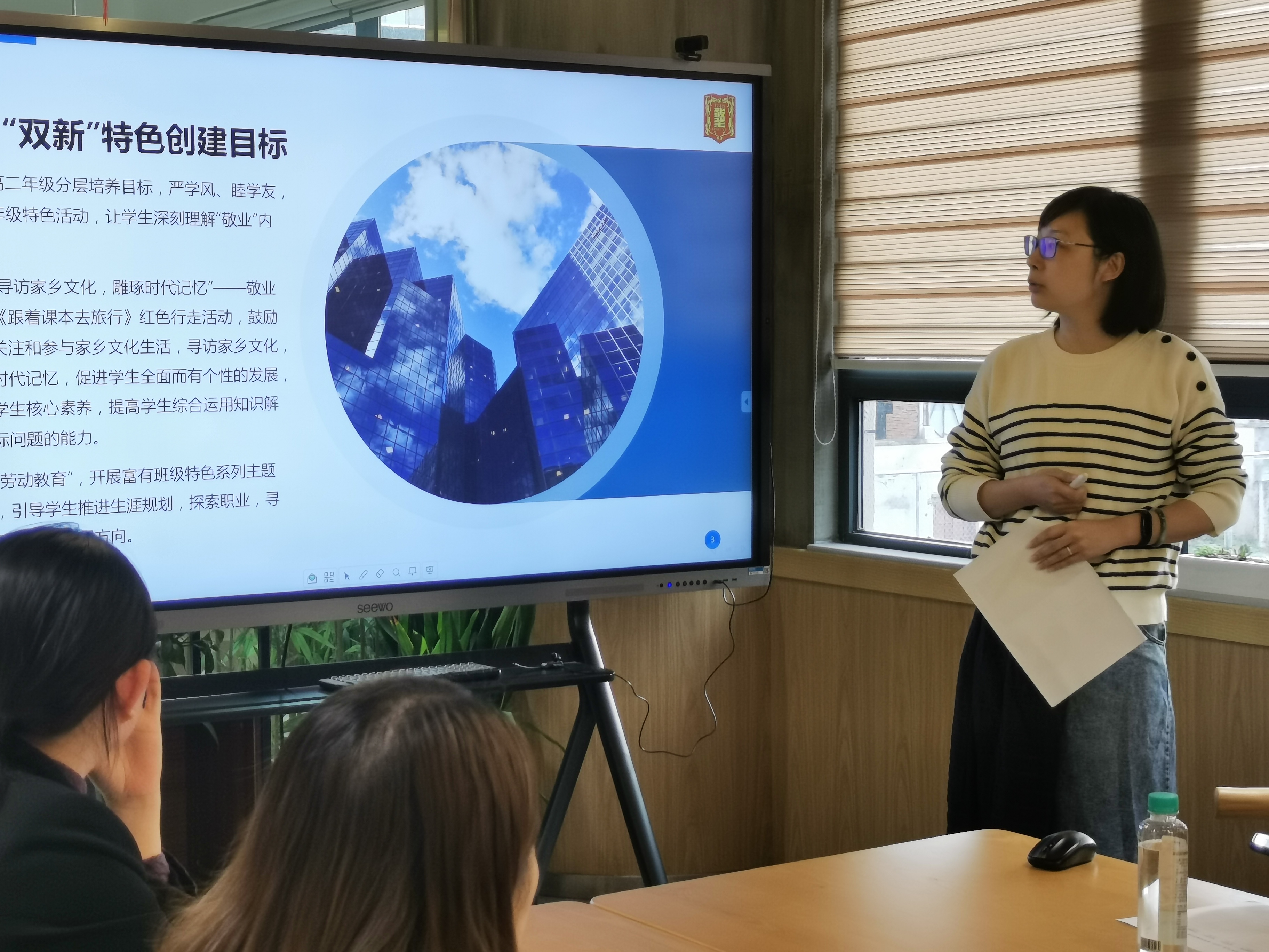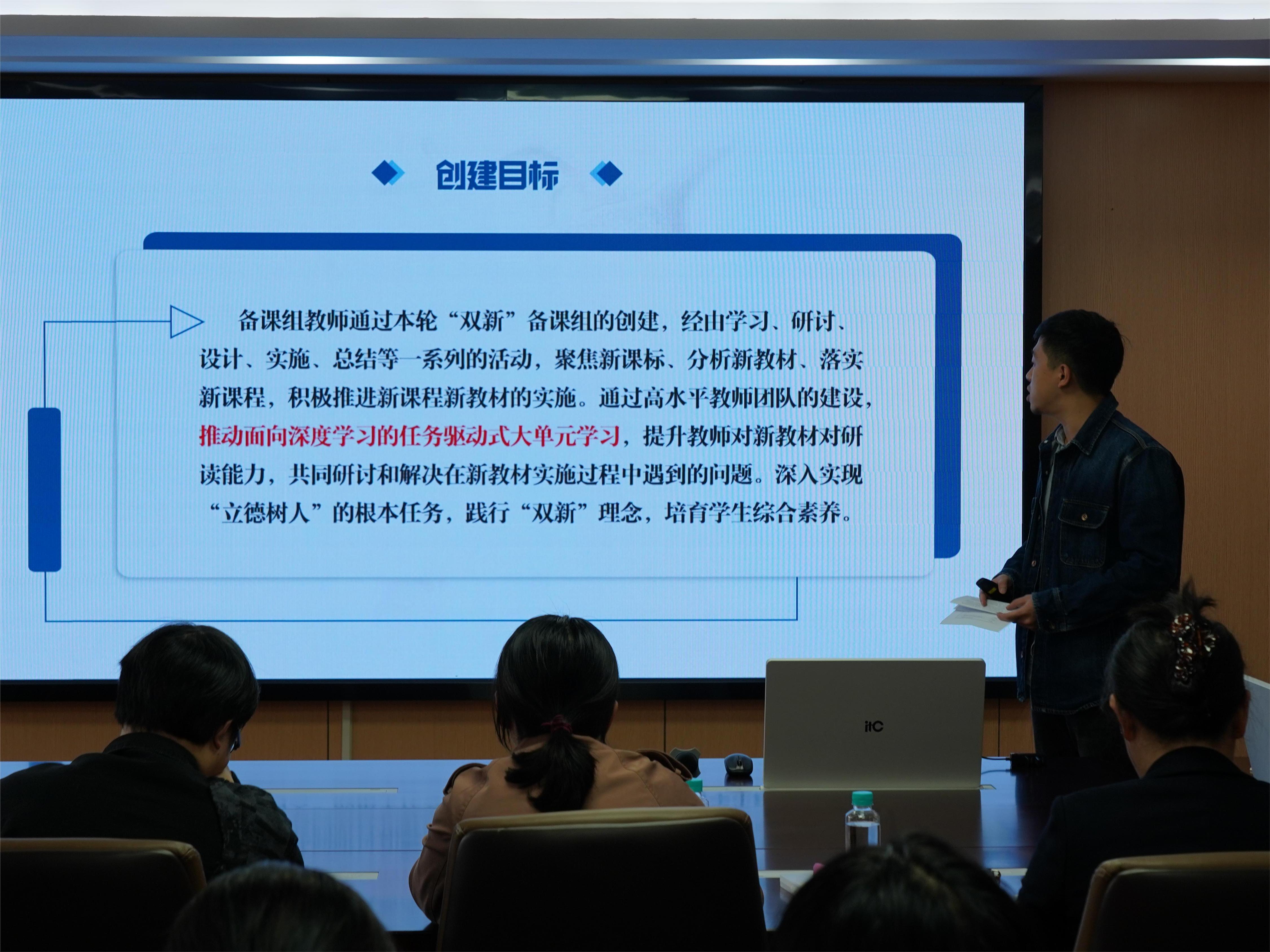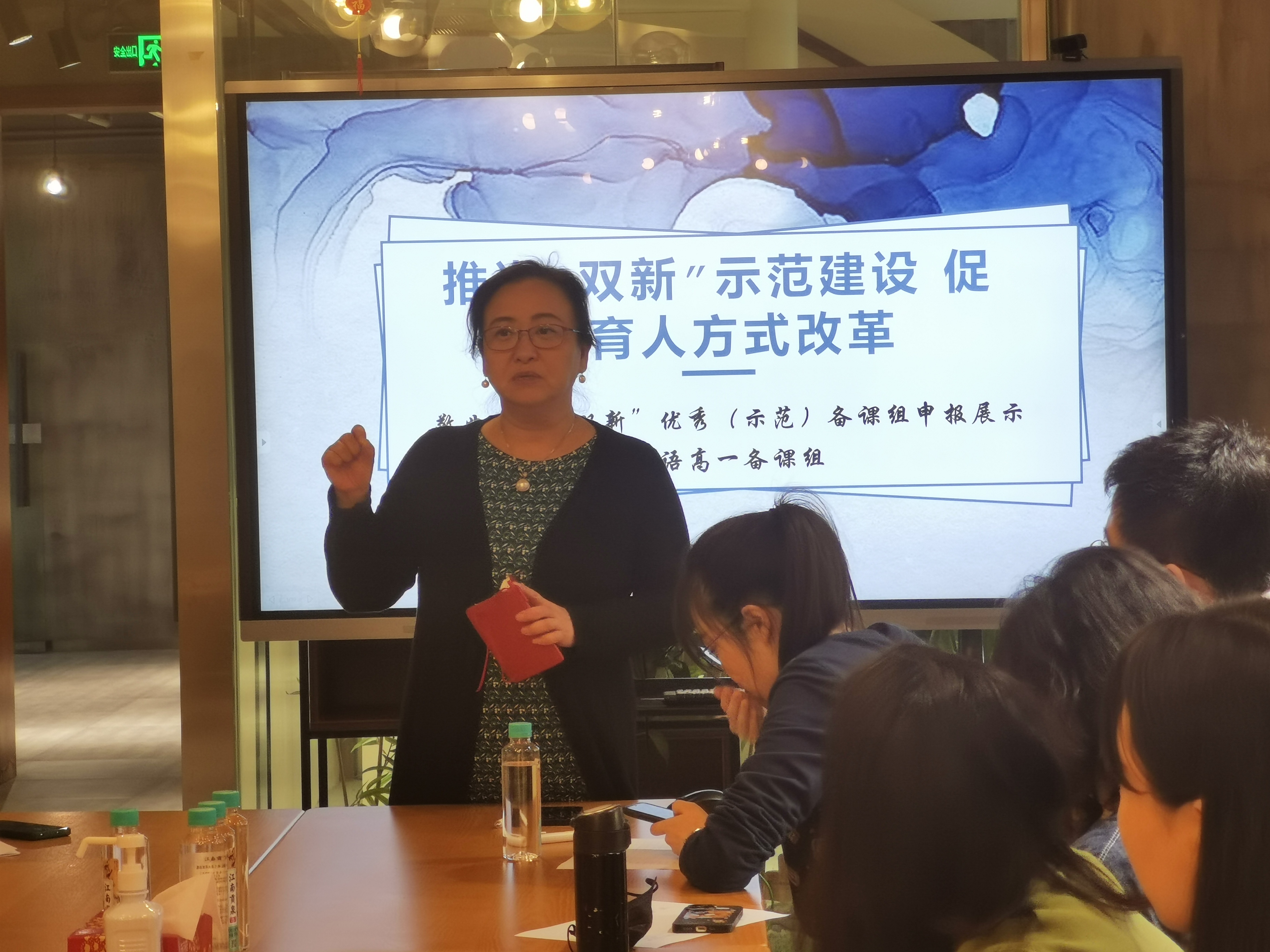 会议前半部分由2021学年度的“双新”优秀、示范教研组——数学组、化学组、物理组、英语组、地理组的教研组长就上一学年度的创建目标、创建过程、创建成果进行展示。会议后半部分则由各申报备课组、年级组的组长汇报新一轮创建的目标、路径、预期成果等。