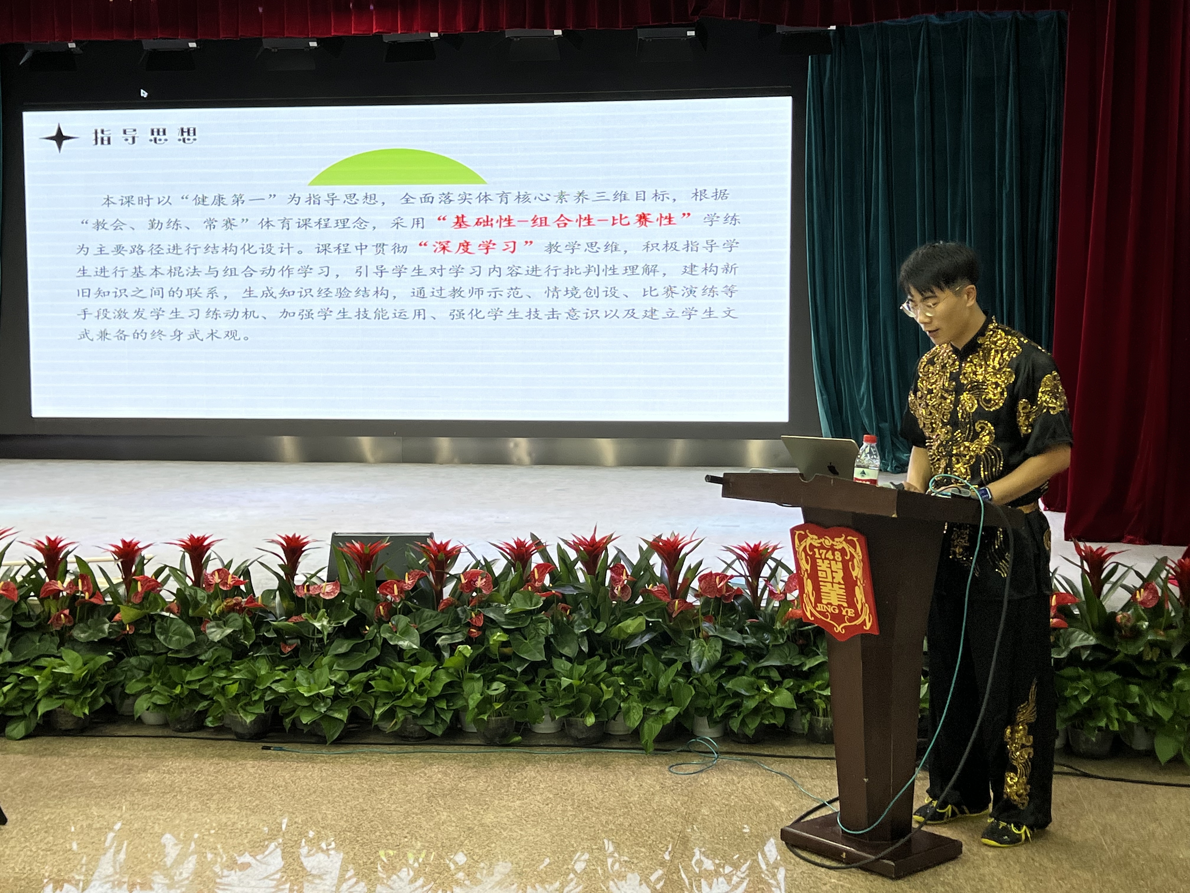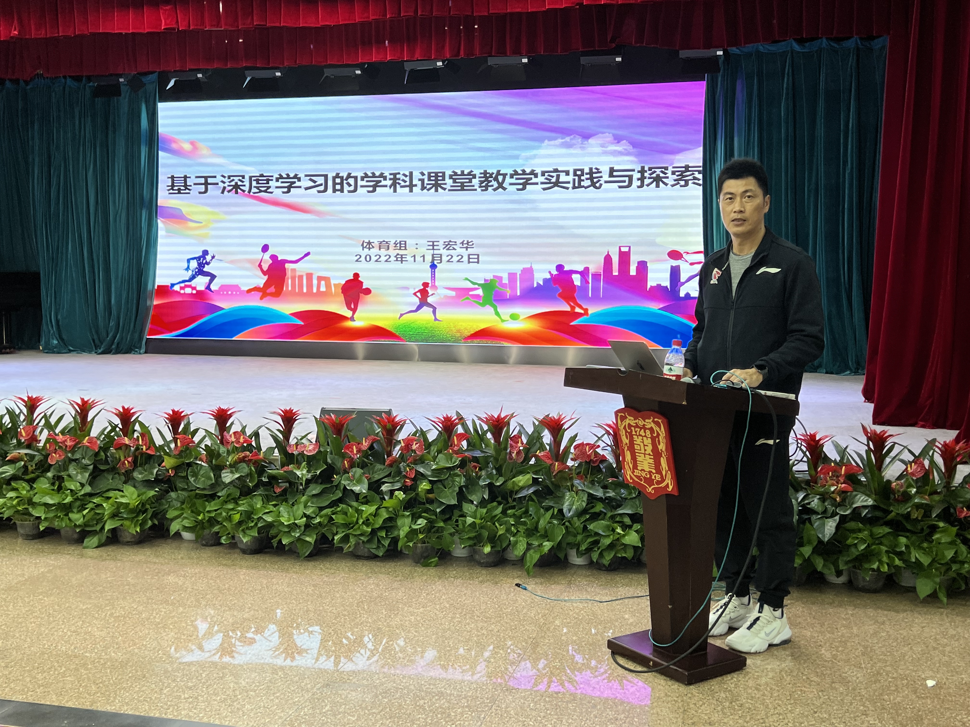 课程结束后由陈思凡老师就本节课的教学设计与思路进行介绍,并对本节课做出课后反思。随后由体育教研组长王宏华老师进行“基于深度学习的学科课堂教学实践与探索”主题交流,王宏华老师从“夯实理论基础”“促进教师发展”“落实课堂教学”三个方面介绍了体育学科在落实“核心素养”及开展“深度学习”等教学背景下所做出的实践与探索。