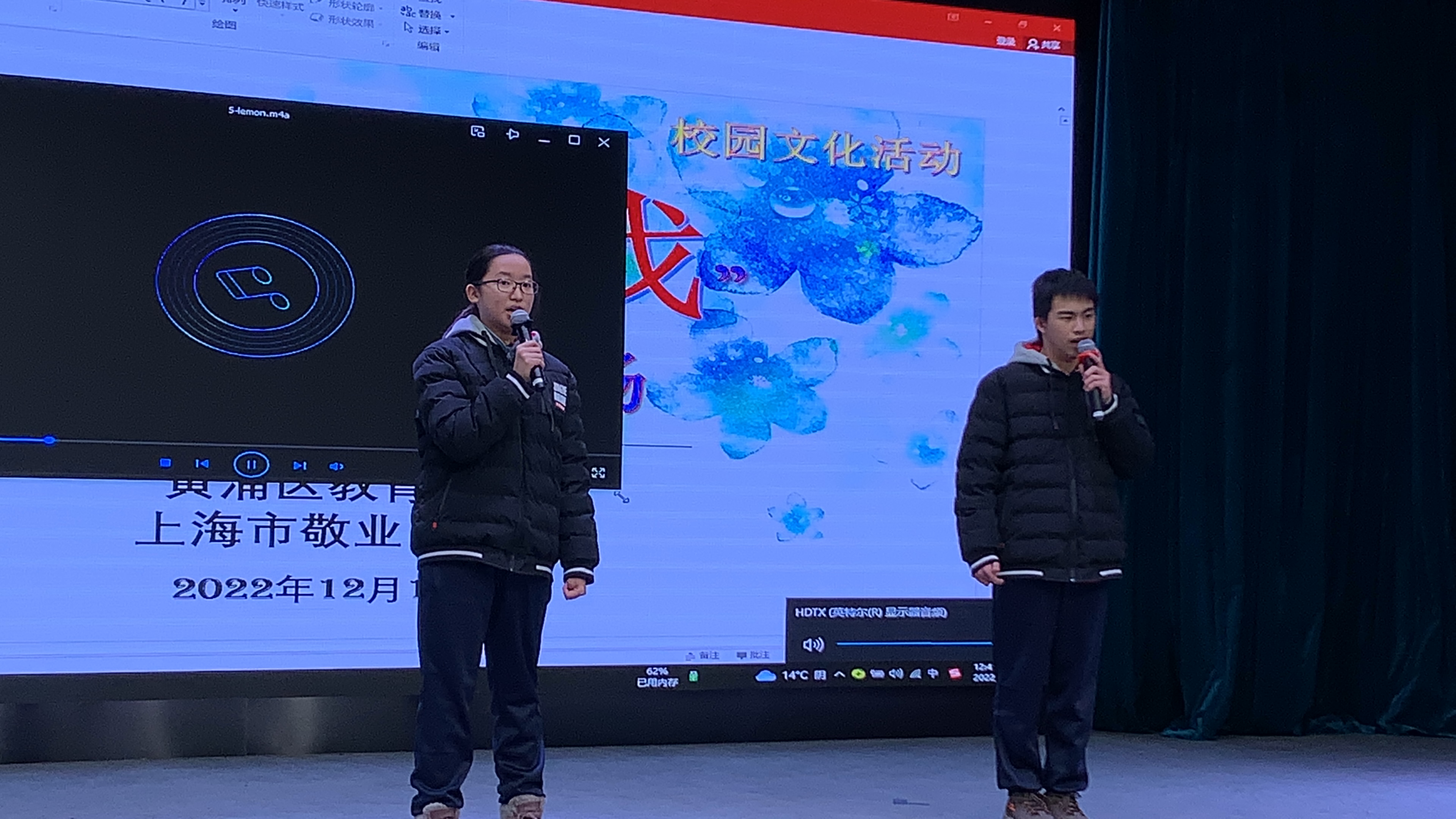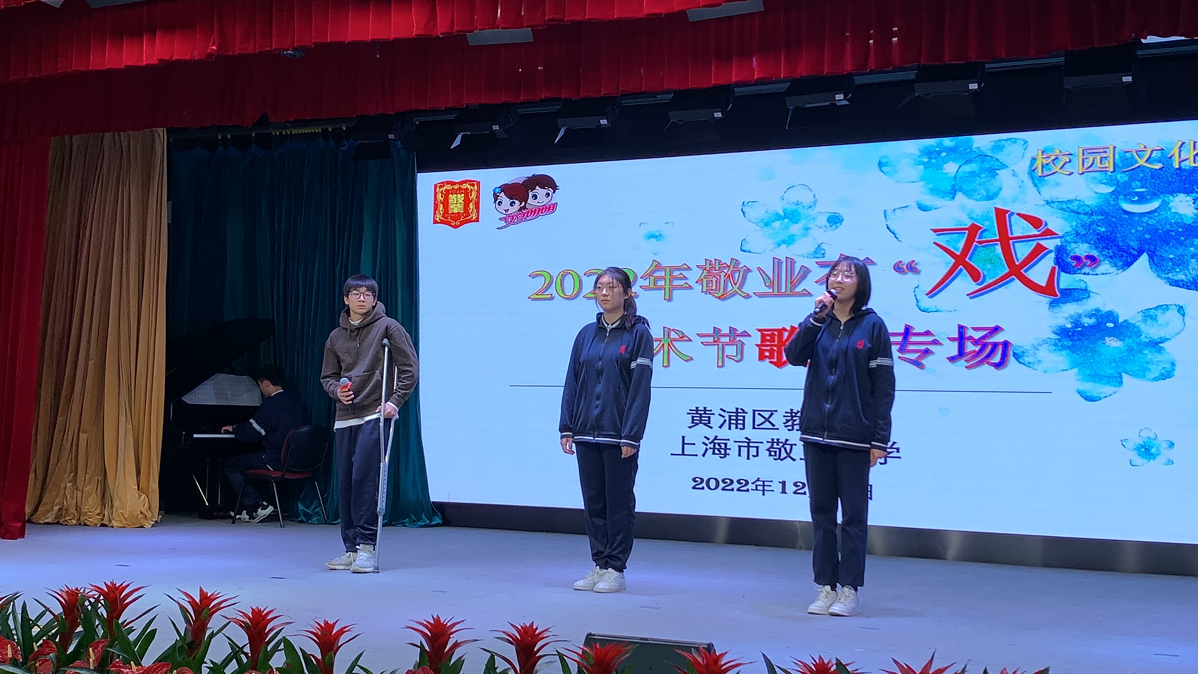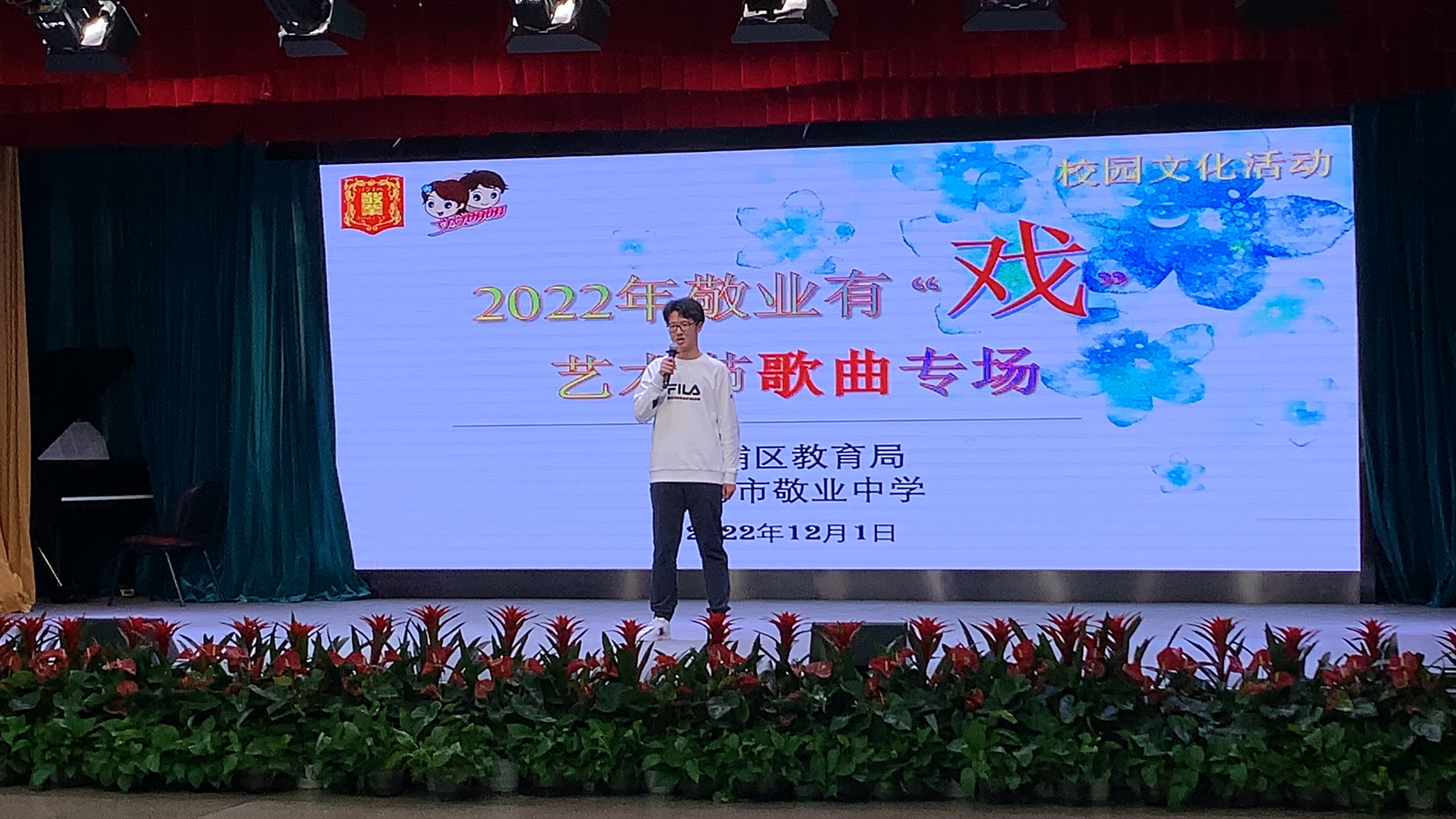 12月1日中午,2022年敬业有“戏”艺术节的歌曲类专场活动在敬业楼五楼多功能厅举行。到场嘉宾有彭本新副校长、金俐延老师、许韫亮老师、陆怿枫老师及王小雪老师。