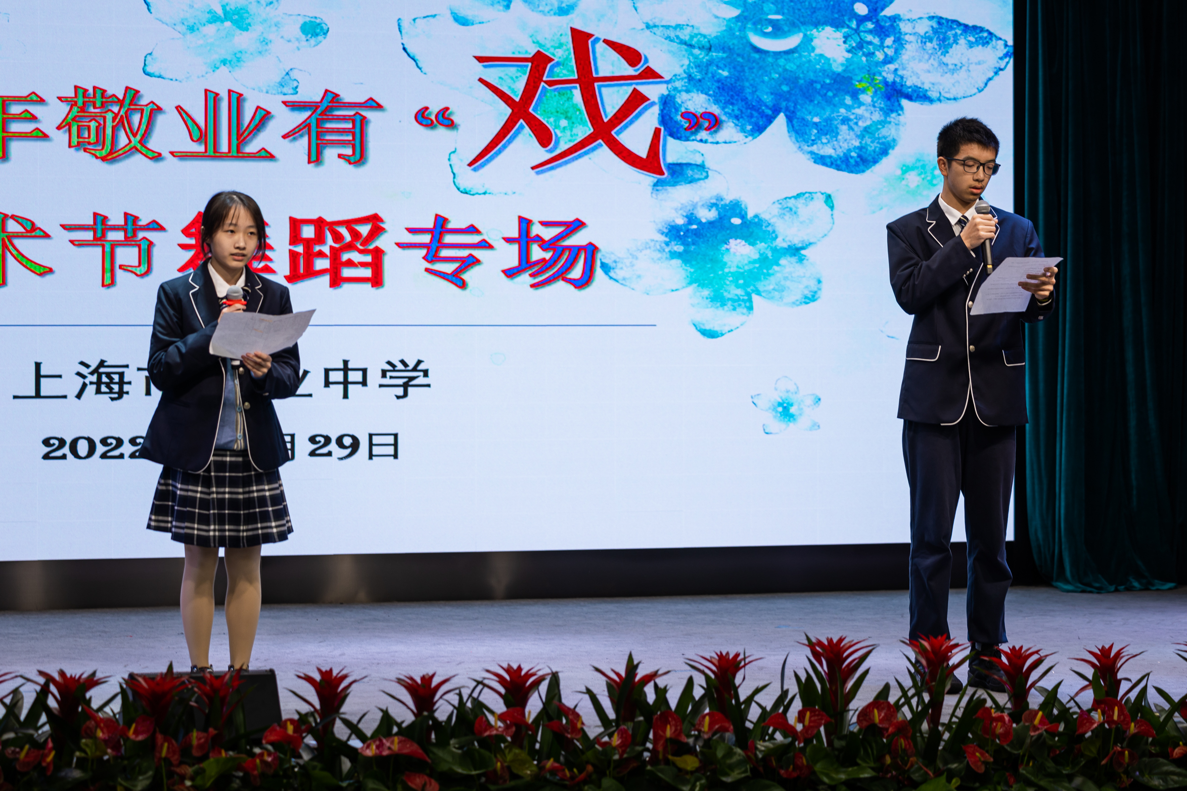 舞蹈专场的主持人是来自高一(1)班的朱歆琰和高一(8)班的滕德源。由高一(1)班的孙以墨同学负责拍摄。短短40分钟的午间时光,同学们在舞台上尽显光芒,灯光照亮着他们的梦想,舞台承载着他们的汗水。