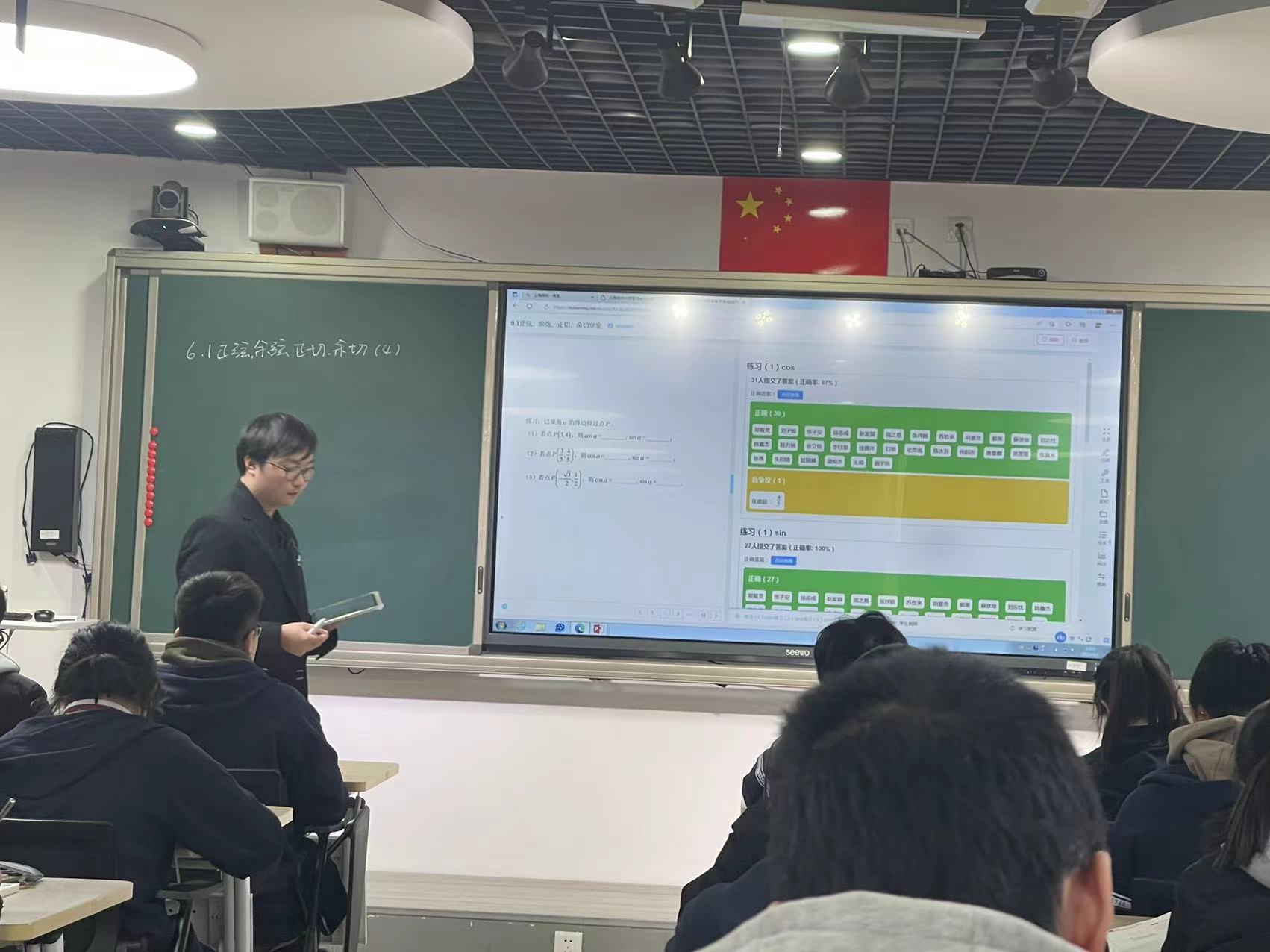 3月7日,高一数学教研组陆怿枫老师在区教研员徐庆惠老师的指导下,开展了以“6.1任意角的正弦,余弦,正切,余切(4)”为题的数字化转型展示课暨区级公开课。
