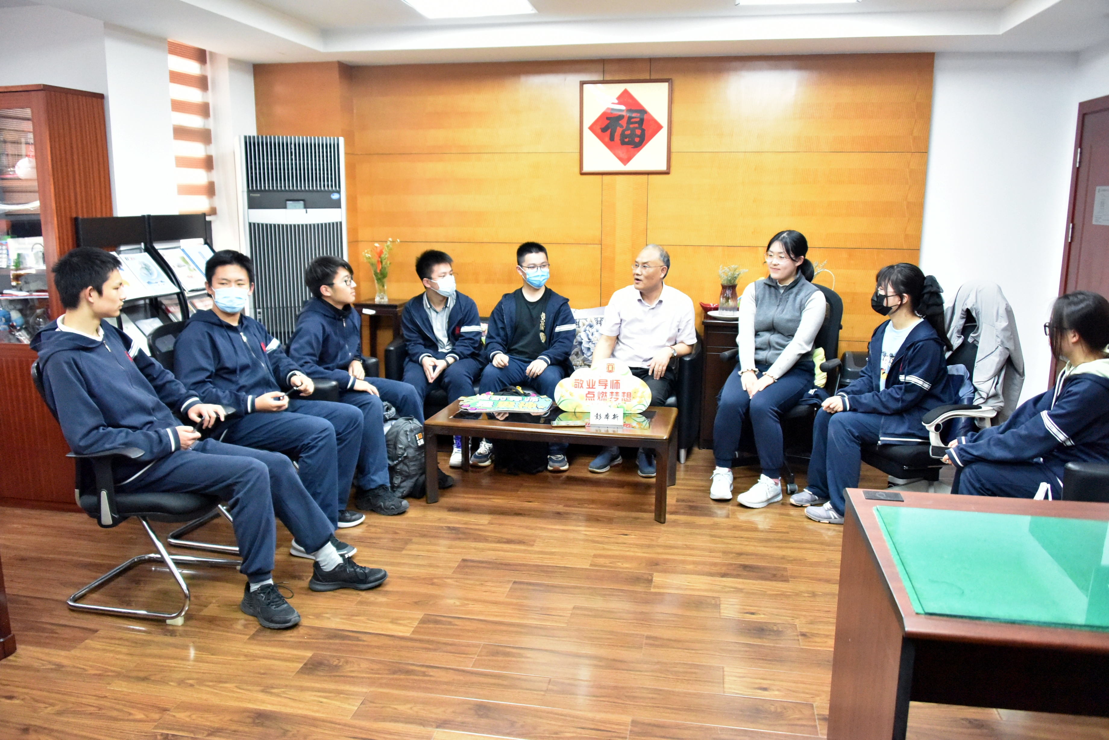 在结束关于食堂的讨论后,马书记与大家谈起了当下的高中生活。高中三年确实艰辛,不可避免会产生怨言和困扰,马书记认为他作为师长和导师,愿意接受这样的抱怨,同时也会努力帮助同学们缓解焦虑情绪。他还讲述起了自己的高中经历,生动的故事逗得大家哈哈大笑。