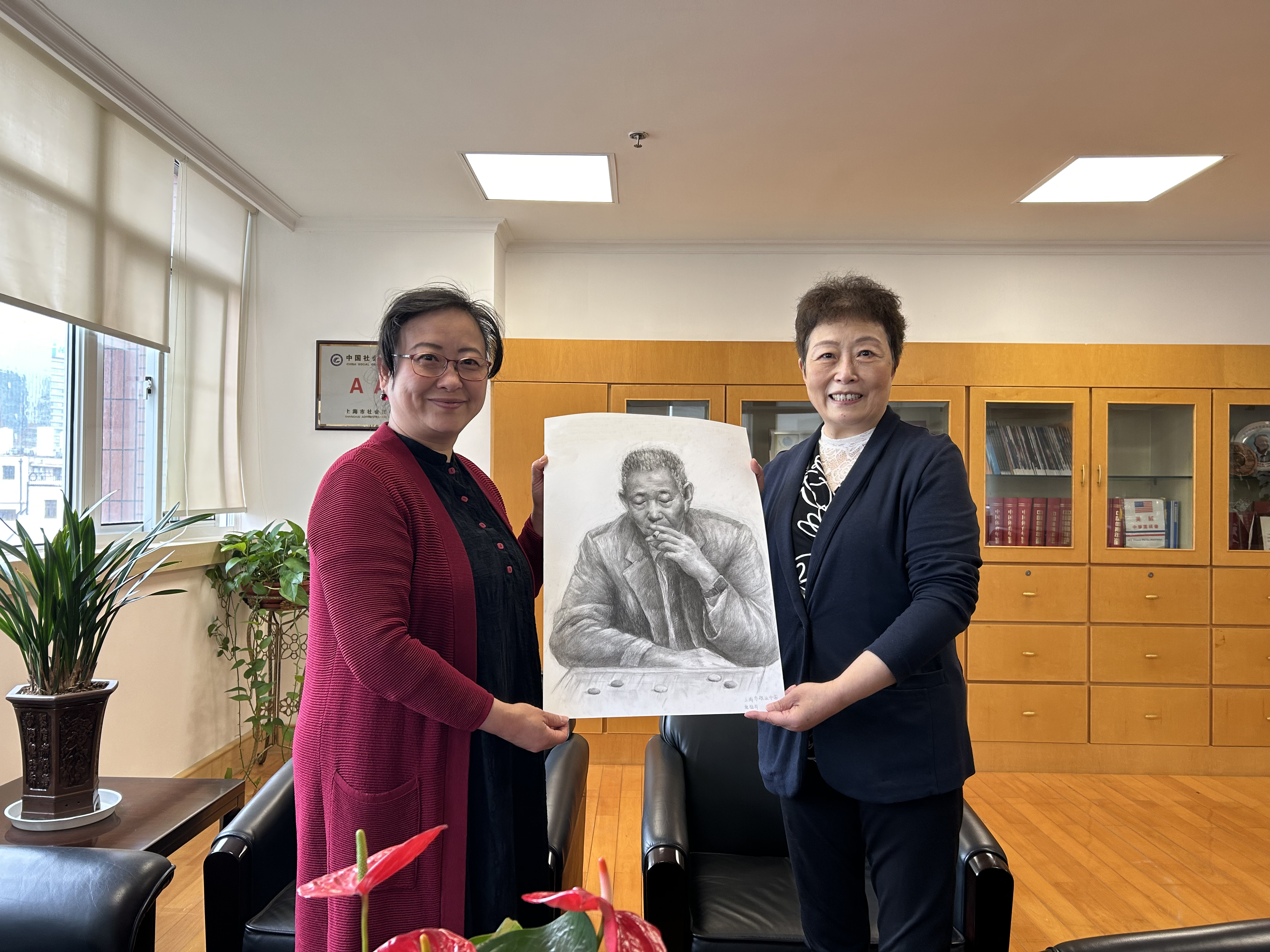 金校长代表敬业中学感谢基金会从2011年以来连续11年对学校开展围棋教育活动的帮助,并把我校高三张劭荷同学的一幅应昌期先生的素描画赠送给基金会。黄浒教练介绍了近年来敬业中学围棋活动开展的情况以及取得的成绩。