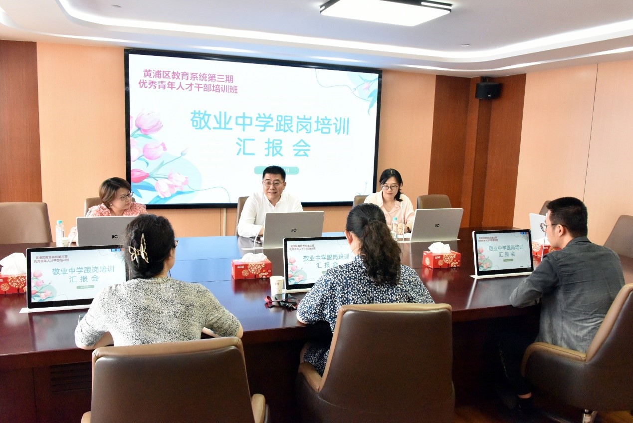 5月31日,区第三期优青班学员完成在敬业中学为期近两个月的跟岗培训,向学校进行了学习交流汇报。党总支书记马伟等学校领导以及三位跟岗学员共同出席汇报会汇报会。