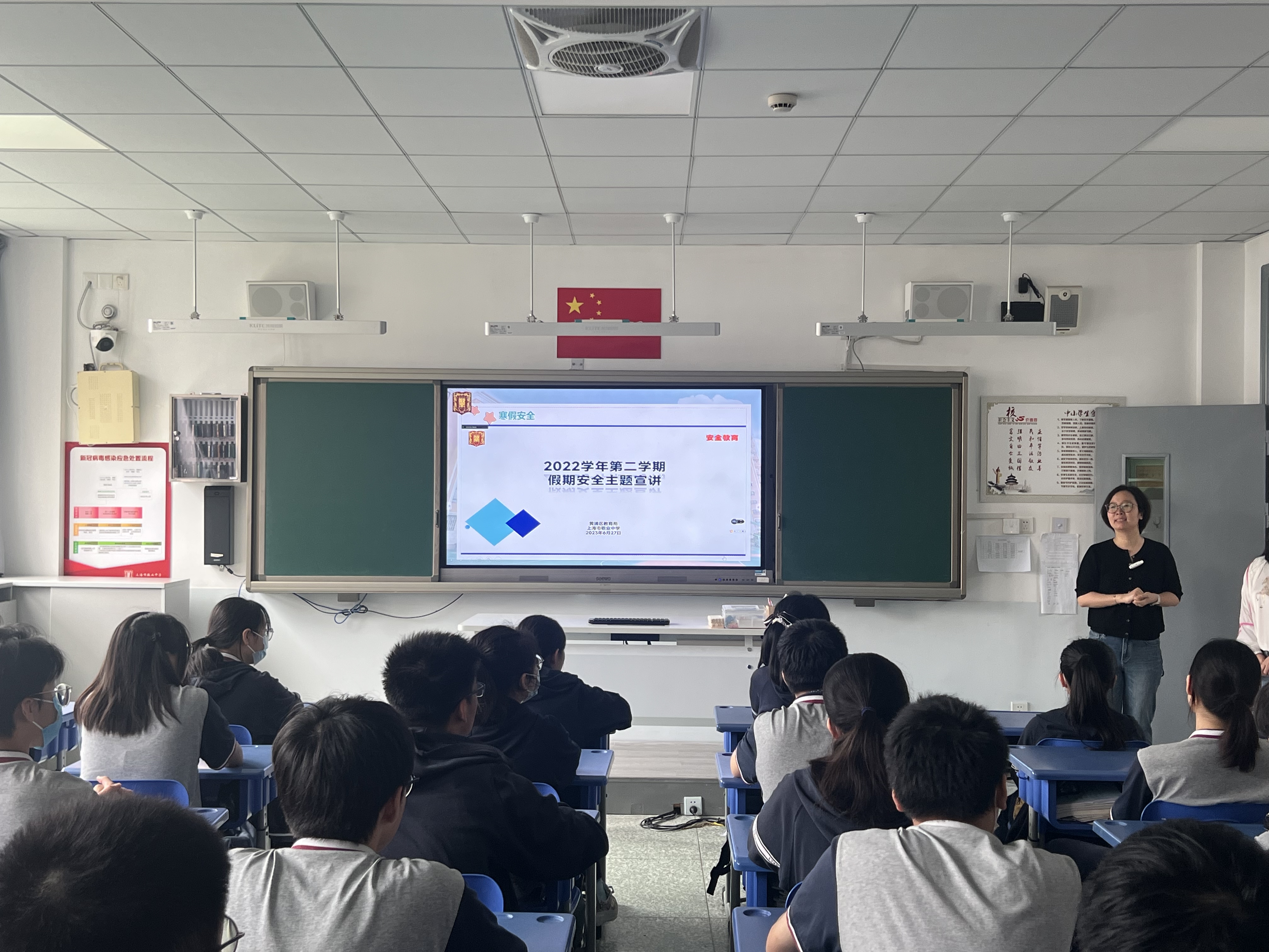 在结业仪式中,负责学校未成年人保护相关工作的廖品皓老师根据上海市教育委员会印发的《2023年中小学生暑期安全提示》所传达的内容,对全体学生进行了紧跟时事的暑期安全教育。