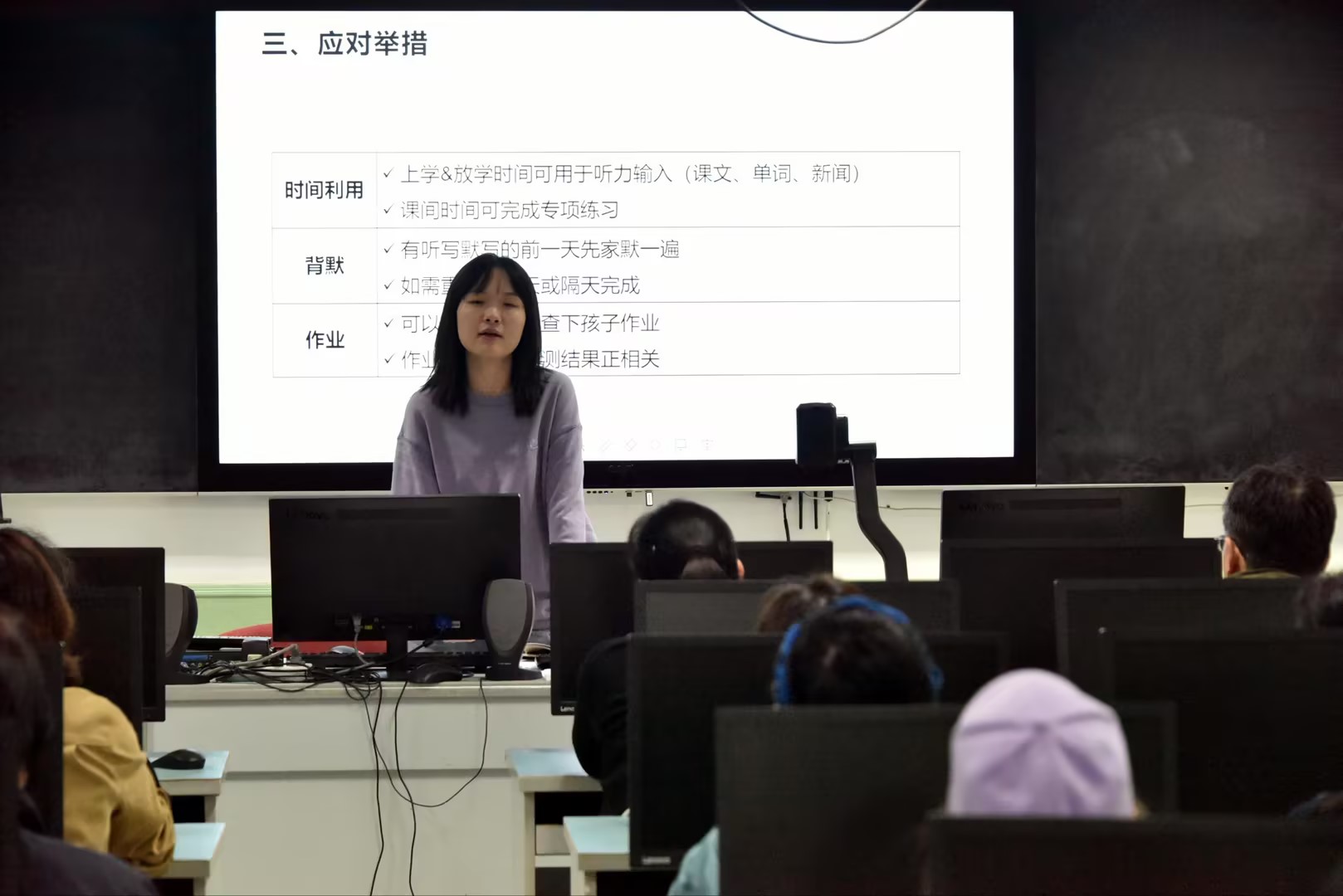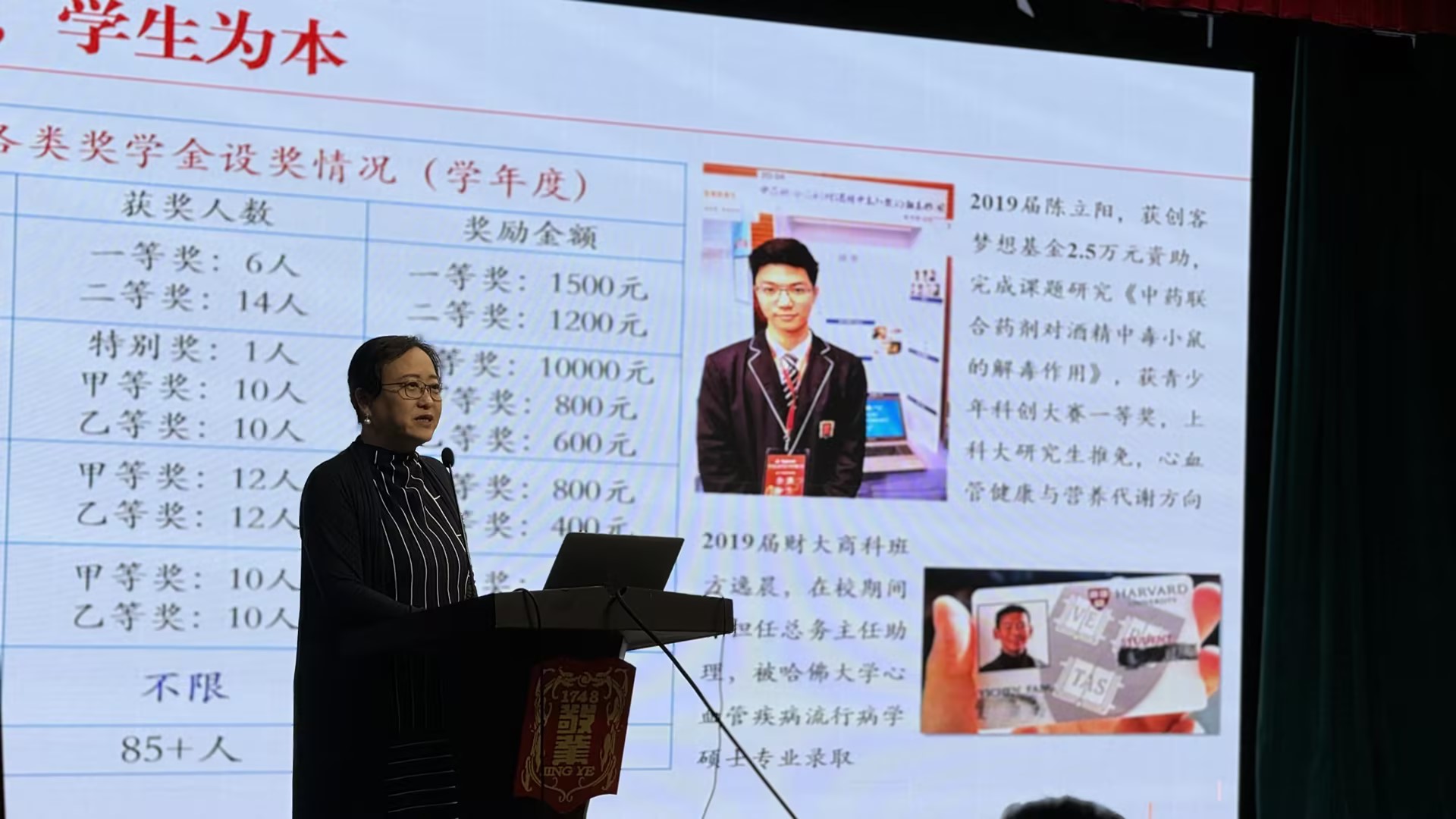 家长会伊始,金怡校长向家长们介绍了学校悠久的历史和富有内涵的校训。随后,她以详实的数据为基础,介绍了“3 3”高考新政策的特点和形势,并提醒同学们一定要好好抓紧高一的时间,在提升语数外三门学科的基础上,不放弃任何一门科目的学习。另外,选科对于新高考来说至关重要,她希望同学们理性选科,在高中阶段获得更高的学习效率,取得更好的学习成果。最后,金校长倡议学生、老师和家长牢牢地团结在一起,相互理解和支持,共同应对今后的挑战。
