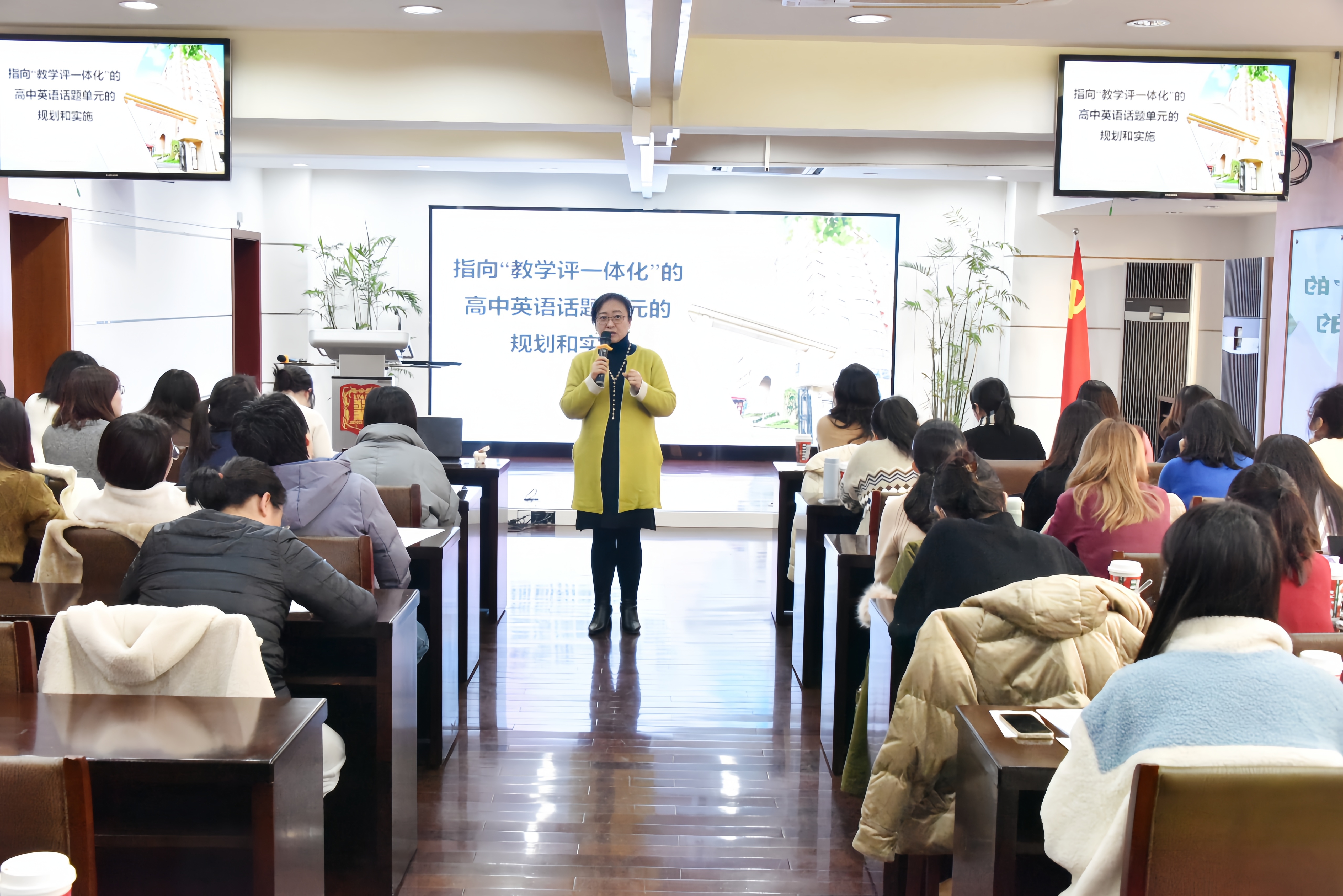 2024年1月3日下午,黄浦区外语教学专业委员会在我校开展“指向‘教学评一体化’的高中英语话题单元的规划和实施”专题讲座。参会的有黄浦区英语名师工作室的学员,豫园学区教师代表及我校外语组全体教师。