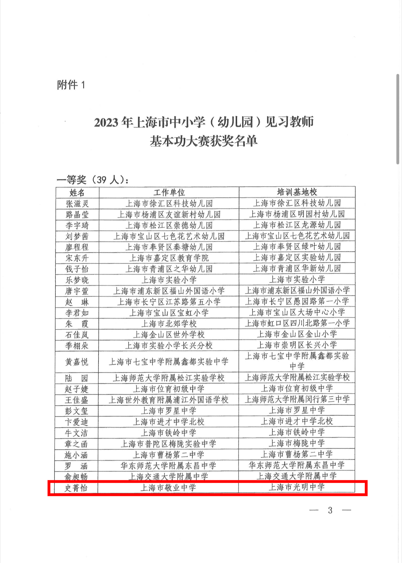 我校史菁怡老师作为黄浦区高中组代表,参加了2023年上海市中小学(幼儿园)见习教师基本功大赛,并荣获一等奖。