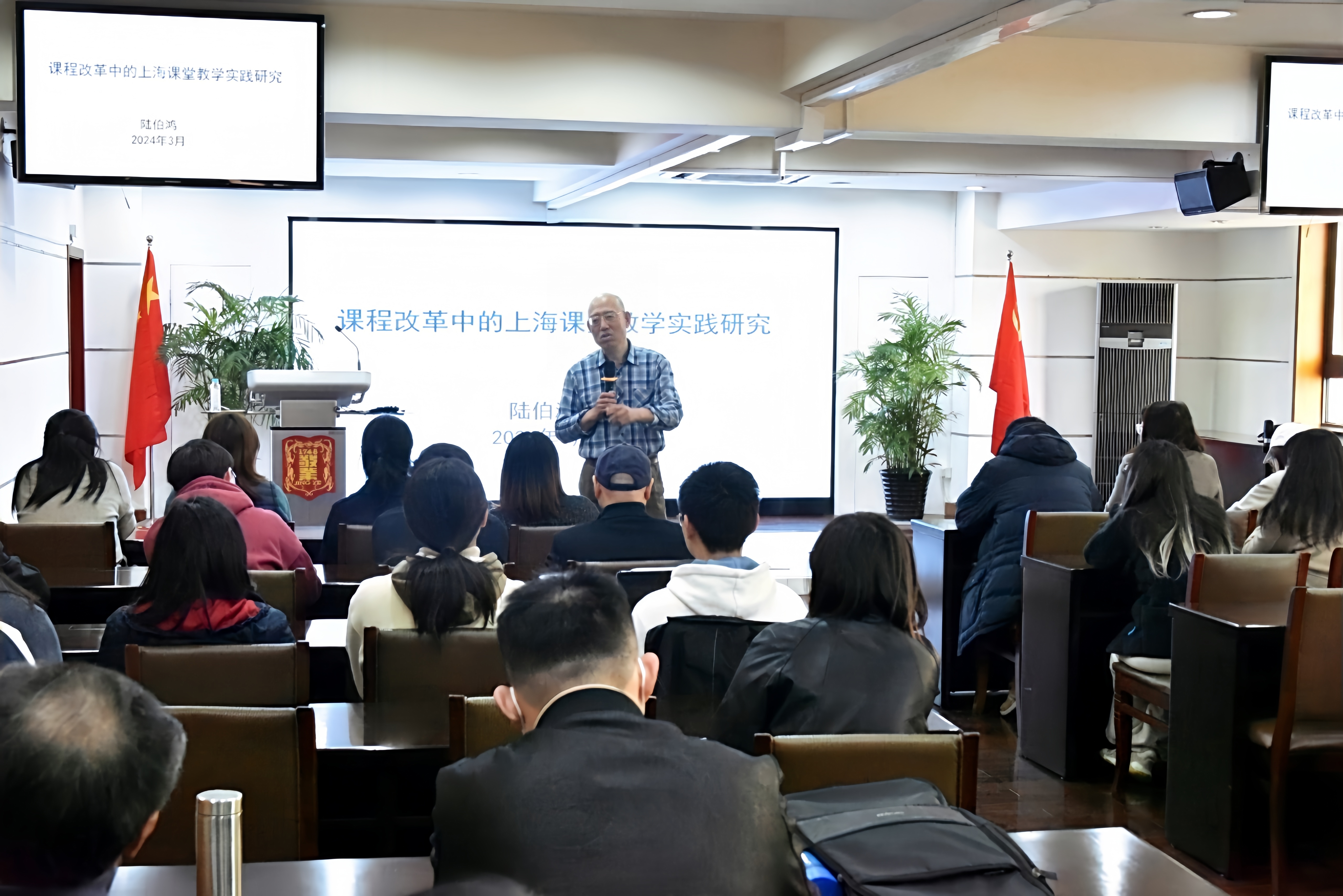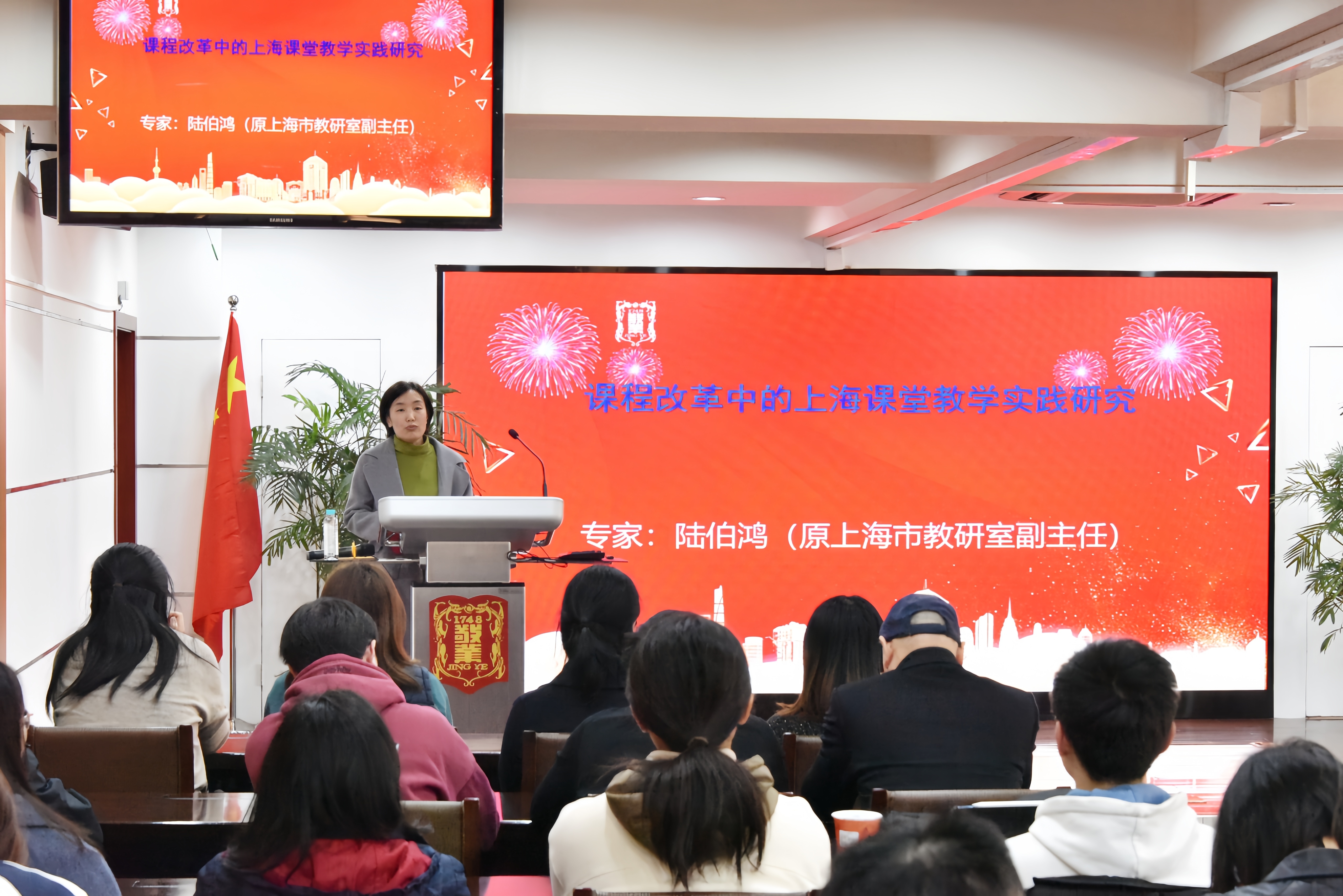 3月22日我校全体教师参加了单元教学设计模型专题讲座,培训活动特别邀请了上海市教委教研室原副主任、特级教师、正高级教师陆伯鸿老师,陆伯鸿老师用六个生活中的例子,表明课堂教学是让教师的教学、学生的学习达成共振,实现最优的学习效果。并结合上学期我校数学组陆怿枫老师执教的《用函数观点探究不等式有关的问题》公开课为例,以“股绳模型”比喻教学的若干环节,并结合本节课示范如何将教学线、问题线、活动线、知识线、评价线、技术线在教学的三个环节中实现有机地结合,为教师如何围绕单元核心任务基于深度学习组织课堂教学提供了新的模型。