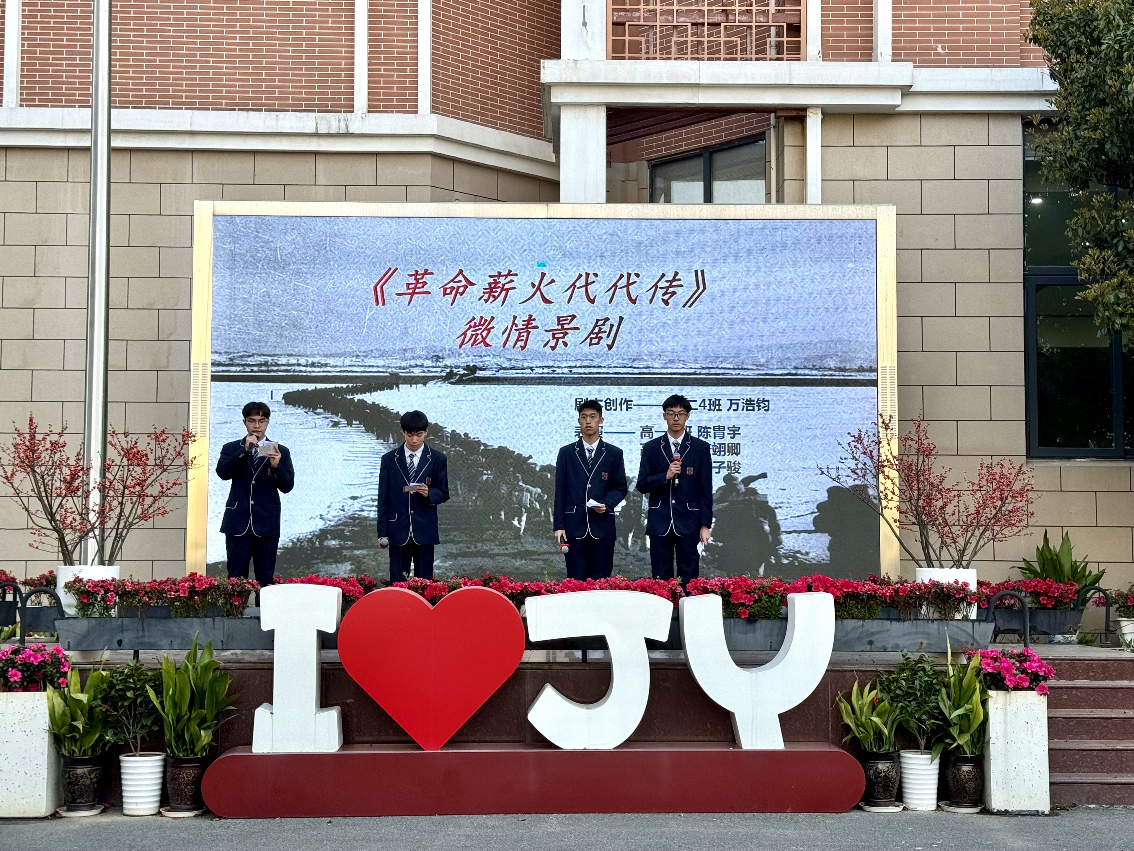 来自高一(1)班的陈胄宇、高二(4)班唐翊卿和高二(7)班的刘子骏通过一场别开生面的情境剧表演——《革命薪火代代传》敬业版,让同学们穿越时空,与抗美援朝的志愿军战士进行了一次心灵的对话。通过小王和小宇两位同学与志愿军战士们的交流,展现了战士们坚决不容辱国之土,丧国之疆的英雄气概。自然淳朴的表演让同学们深切地感受到了战士们的牺牲为我们今天的和平与繁荣奠定了基础。虽然他们不能亲眼见证如今的盛世繁华,但他们的精神将永远被我们铭记在心、发扬光大。