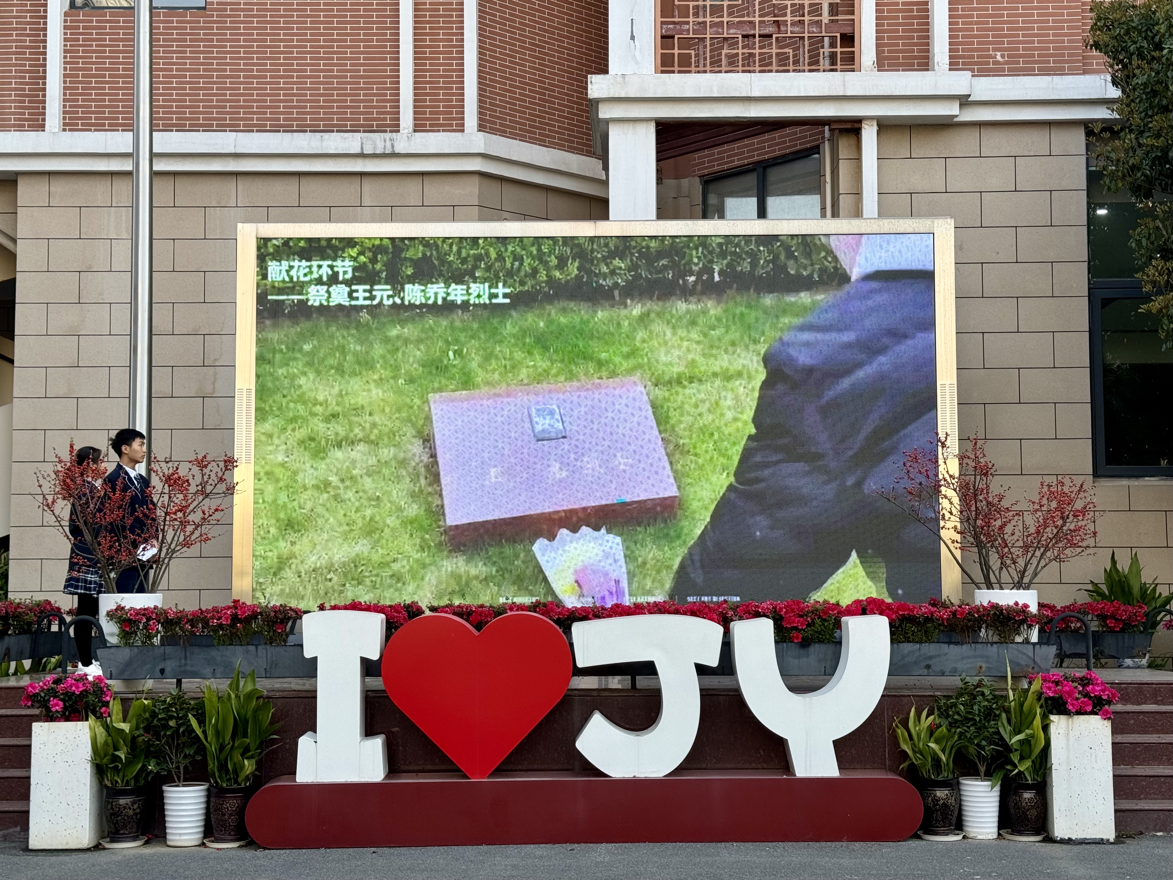 接着播放了一段来自高二(4)班的邹欣彦同学和高二(6)班的蔡文曦同学一同前往龙华烈士纪念馆缅怀英烈的视频,旨在铭记革命前辈的光荣事迹,坚定信仰,牢记使命,乘长风而破万浪,以英烈精神之光照亮人生的奋斗征途。