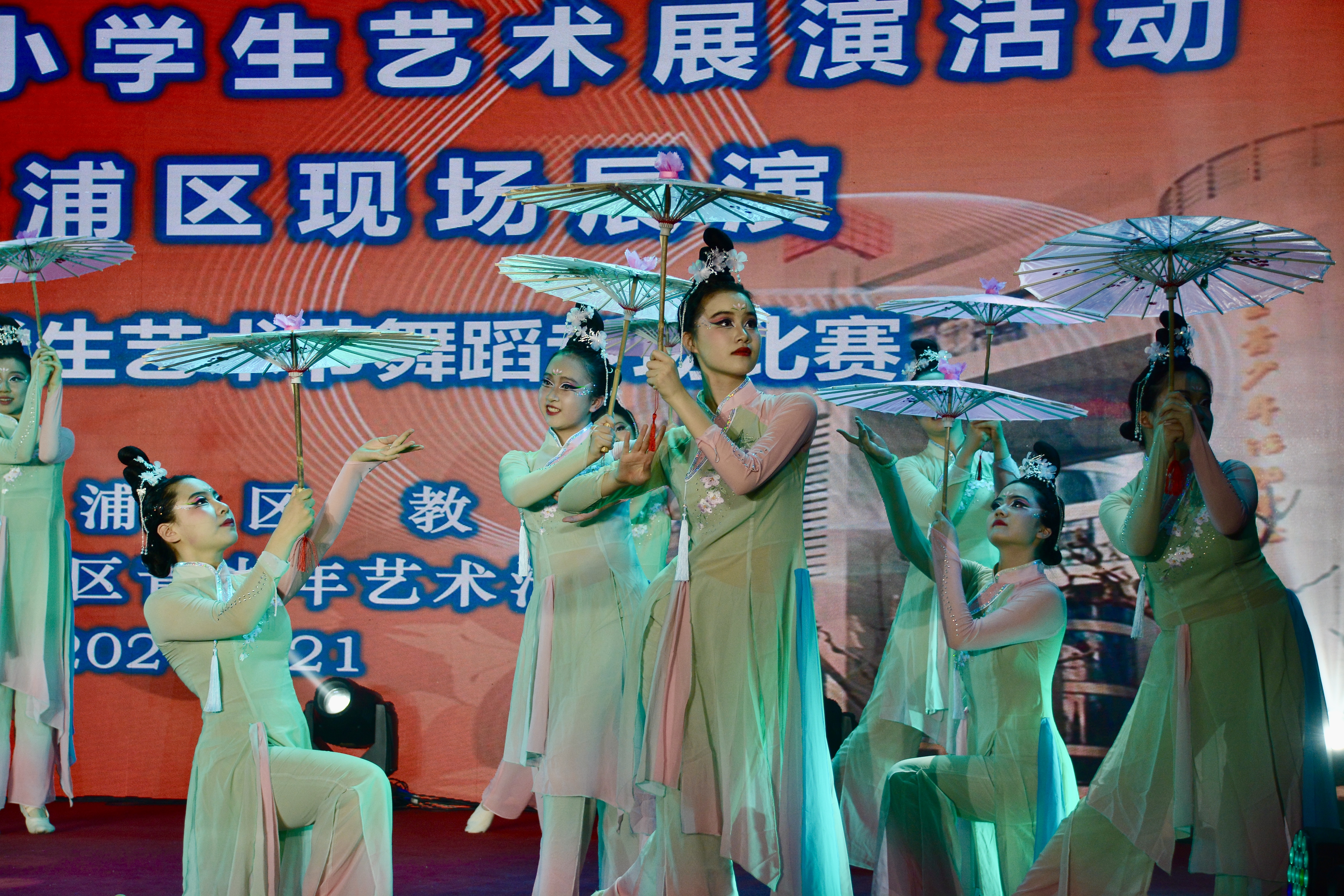 6月22日,我校舞蹈队参加了全国第八届中小学生艺术展演活动上海市黄浦区现场展演。带来的舞蹈是《西子湖初妆》。