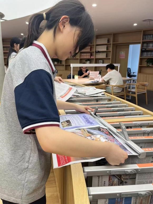 7月2日,由原2026届54班罗佳依(组长)、张奕轩、沈倪宸彦、苏燕琳、殷思怡、刘芷馨几位同学组成的志愿者小组来到黄浦图书馆开展志愿者活动。黄浦图书馆的的工作人员细心地教授大家如何按照分类来寻找并排放报刊,同学们纷纷动手体验了各项图书馆管理工作。经过充实而快乐的志愿工作,大家齐心协力把黄浦图书馆的七楼报刊区整理的井井有序。