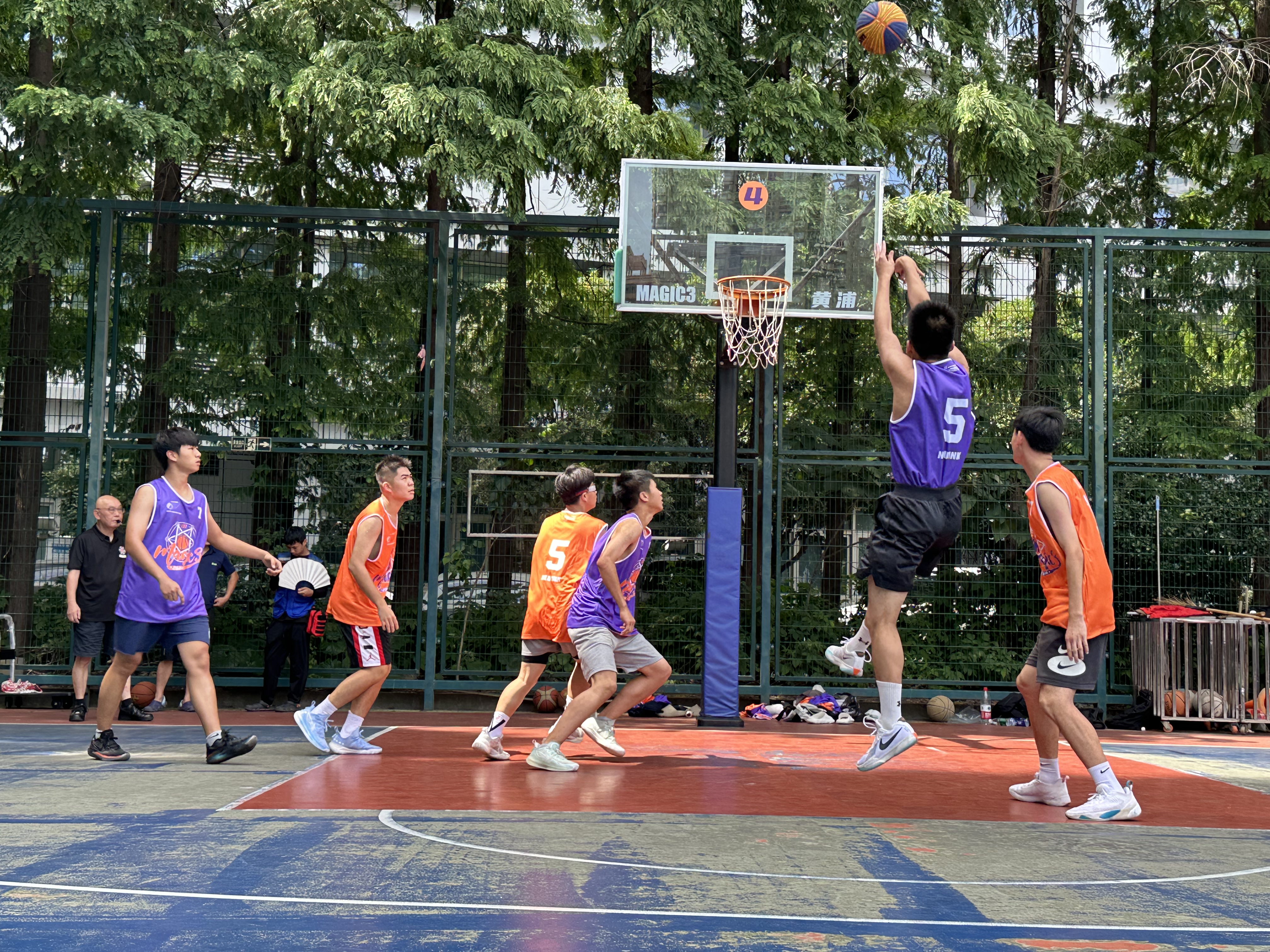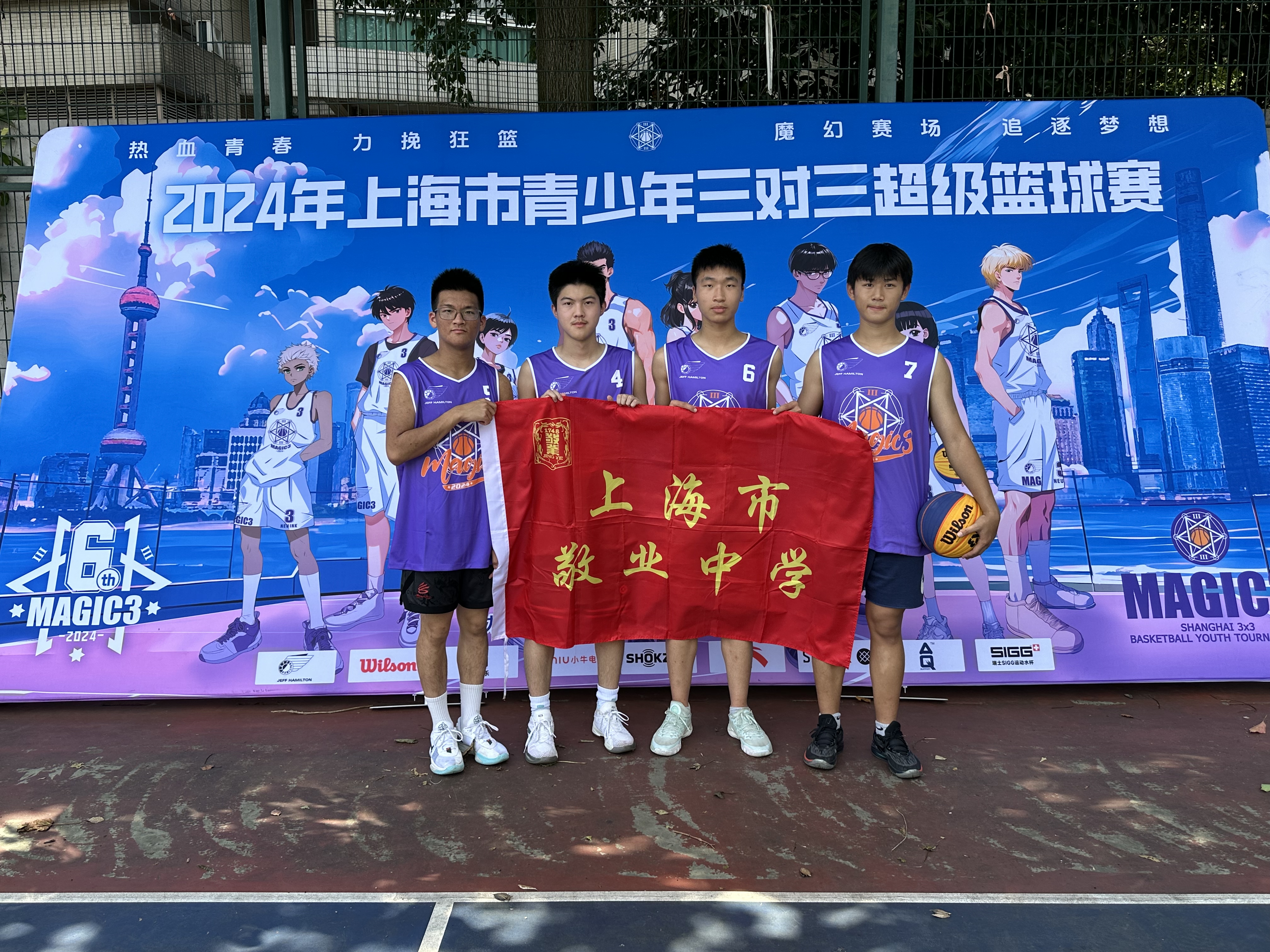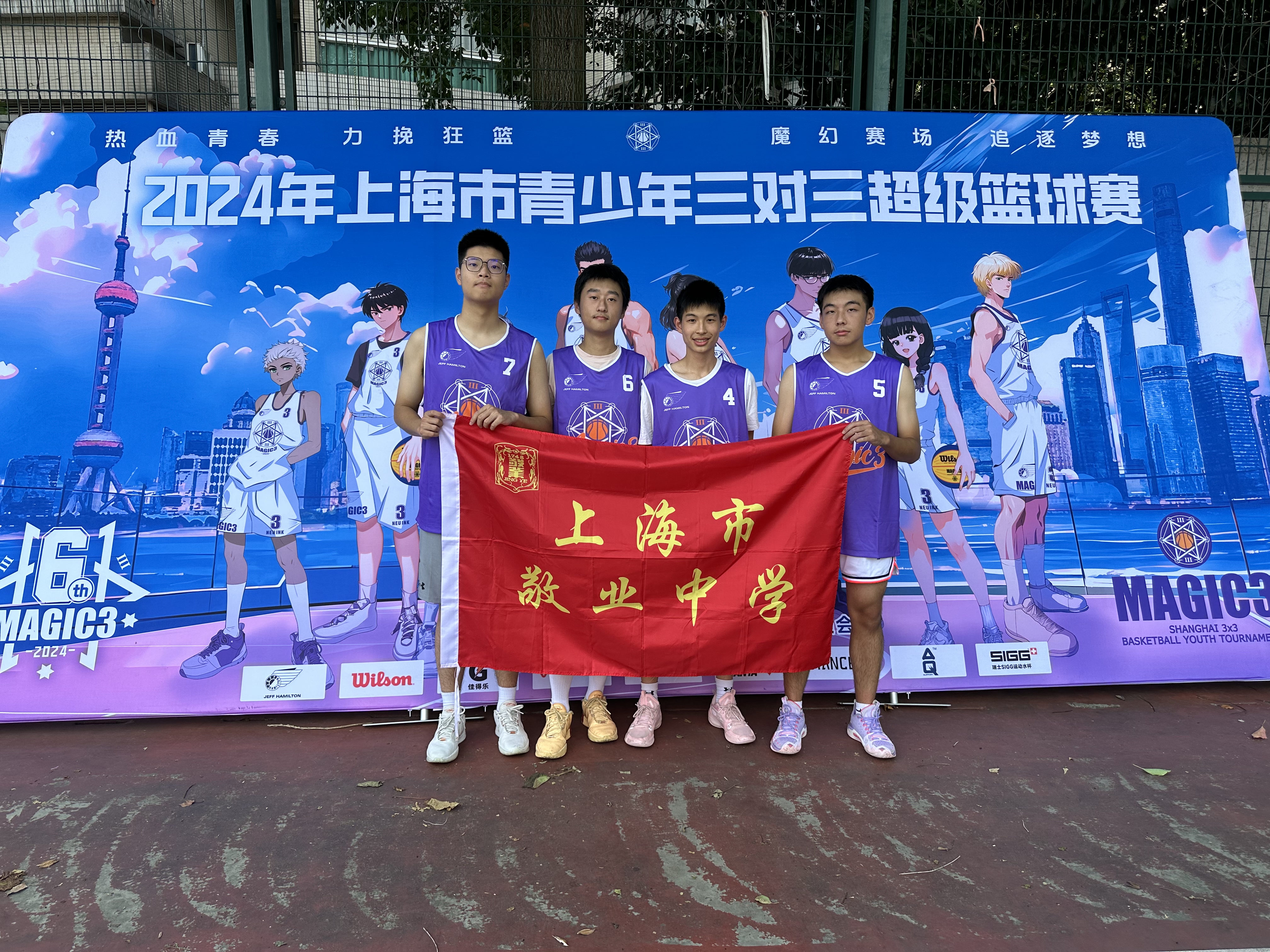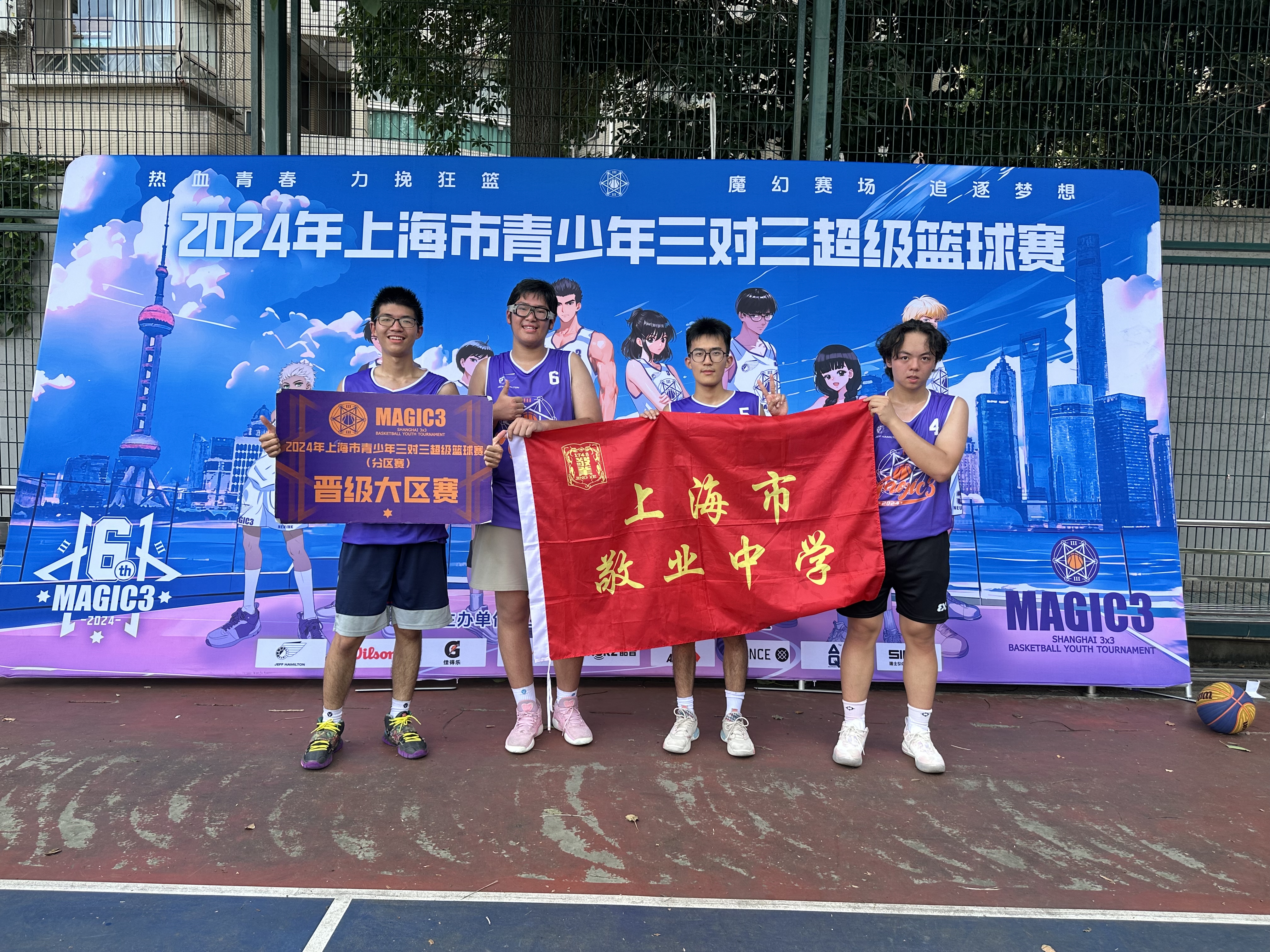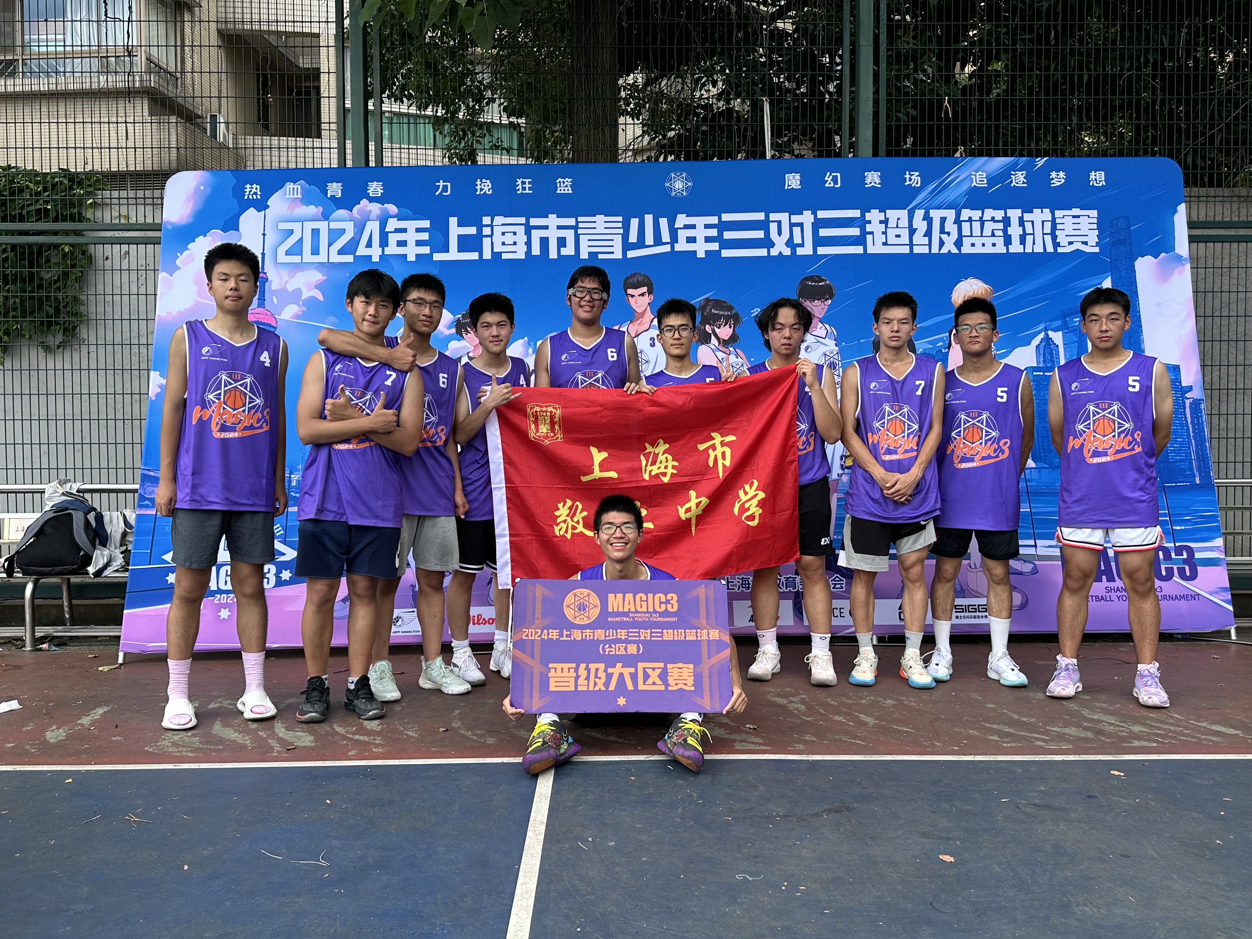 7月,我校篮球队组织了三支男子球队和一支女子球队参加2024年magic3上海市青少年三对三超级篮球赛黄浦赛区的比赛。本次比赛黄浦赛区总共有256支队伍,采用单轮淘汰赛的形式,分时段角逐出8个队伍进入大区赛。其中由一位高一队员、两位高二队员和一位高三队员组成的“敬业乐群”队,淘汰多位强敌、克服重重困难,拿到了敬业中学篮球队参与该项赛事五年第四个冠军。
