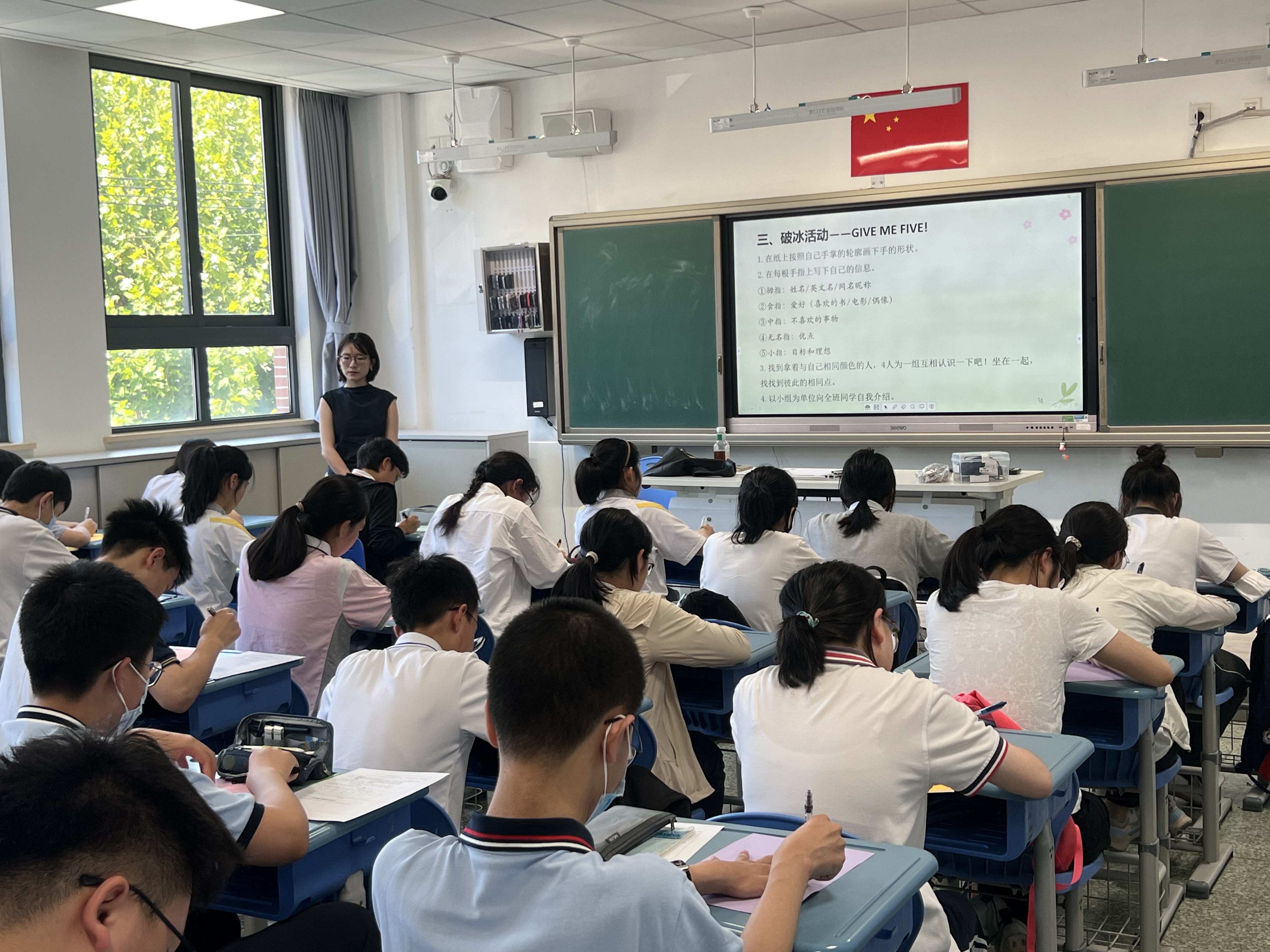 高一1班通过“九宫格游戏”迅速破冰,根据同学们随机同号组成一组,讨论并展示小组名字并介绍小组成员,快速互相认识;2班则是通过“昵称挑战”,帮助同学们更快地相互熟悉;3班先是通过“名字接龙”游戏热身,初识身边同学,再运用“破冰之盾”,分组介绍自己 特点,两轮游戏下来已经初步熟悉新伙伴;4班先是“加字游戏”热身和活跃气氛,又进一步完成自我初印象展示,加深彼此了解;5班别具一格地使用give me five游戏,在彩纸上写下自己的信息,找到持有相同颜色彩纸的伙伴,再分组介绍彼此认识;6班从本班特色出发,设计“破解博雅”破冰活动,以增进对博雅班的了解,接下来自我介绍环节用一首歌唱出此刻心情,气氛热烈;7班展现班级商科特色,自行发挥版自我介绍,凸显个人特长,通过初步认领连队职位,展望高中生活,初步培养班级凝聚力;8班科创班的“五毛与一块”游戏气氛热烈,同学们根据自己的“面值”和老师指令组合,分组交流后派代表介绍自己和小组成员,尽快熟悉彼此。