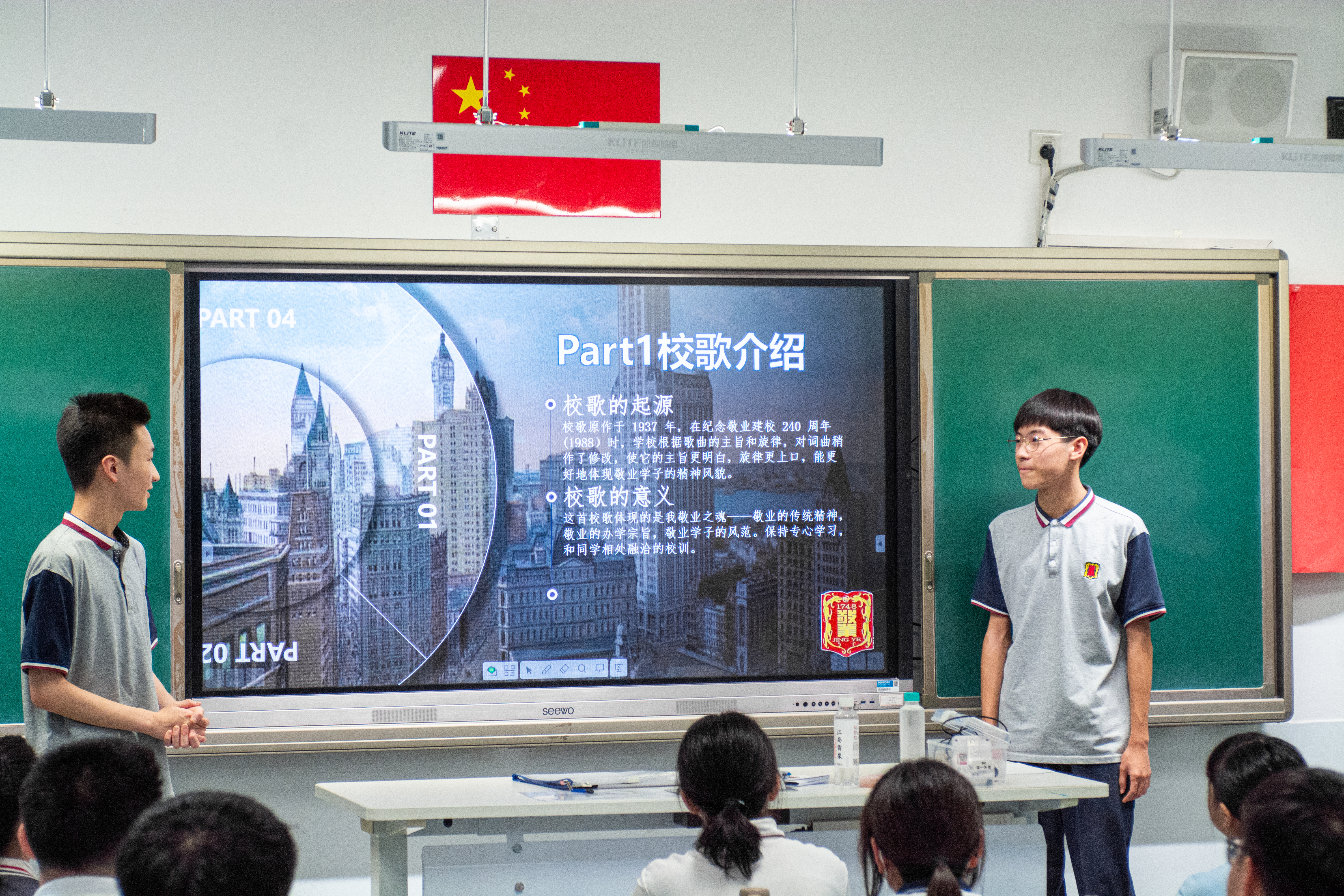2024年是敬业办学的第276个年头,教唱校歌是学校艺术类社团“大手牵小手”的传统项目。校歌是一个学校精神风貌的体现,也是对最年轻的敬业人来到敬业最热烈的欢迎,更是对敬业学子们前途未来的殷切期盼和大力鼓舞。在学会校歌之后,希望2027届每一位敬业新生也能跟进学长学姐的脚步,秉持敬业乐群的信念和态度,崇实求真,勤勉奋进,无畏前行,迎接全新的高中三年!