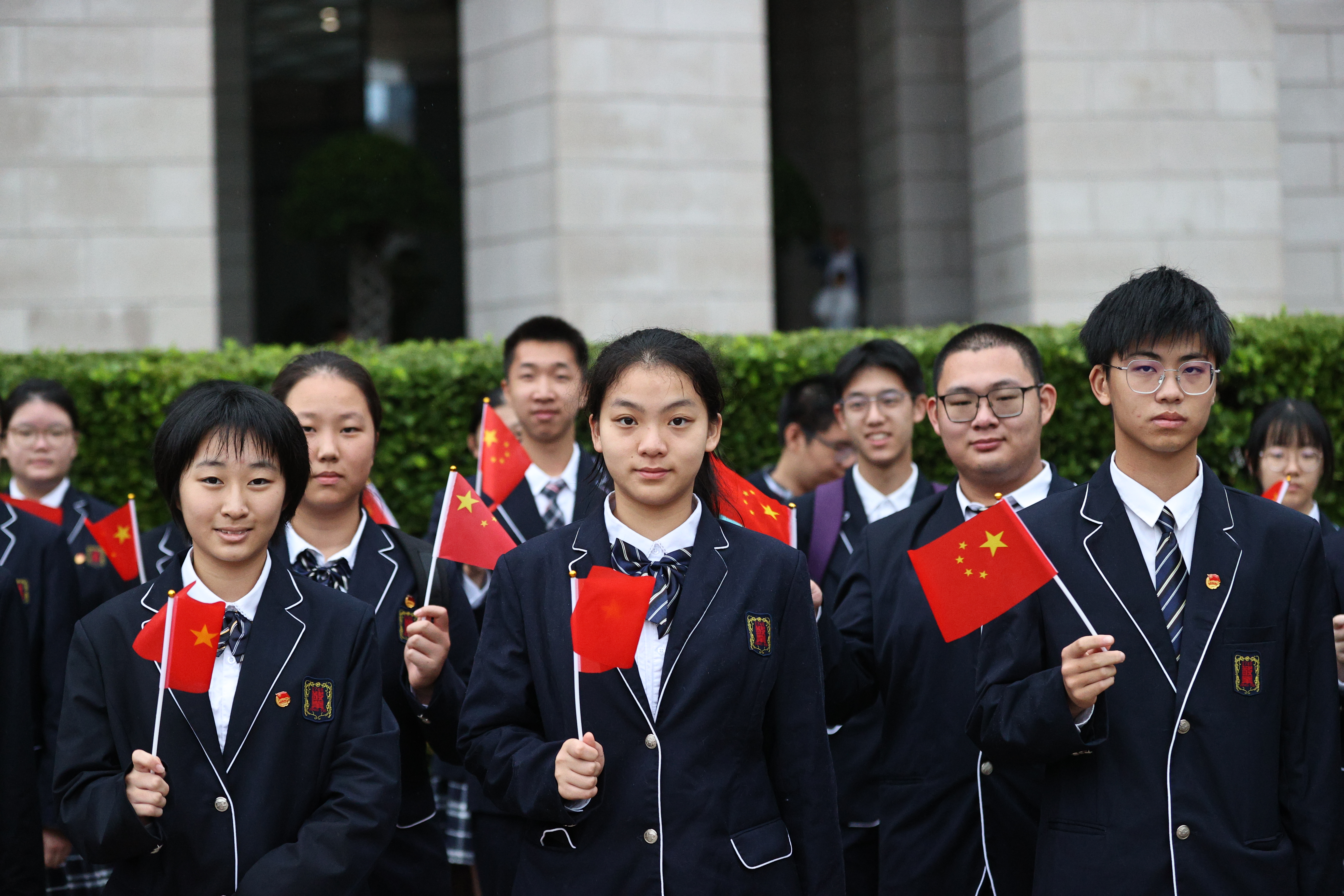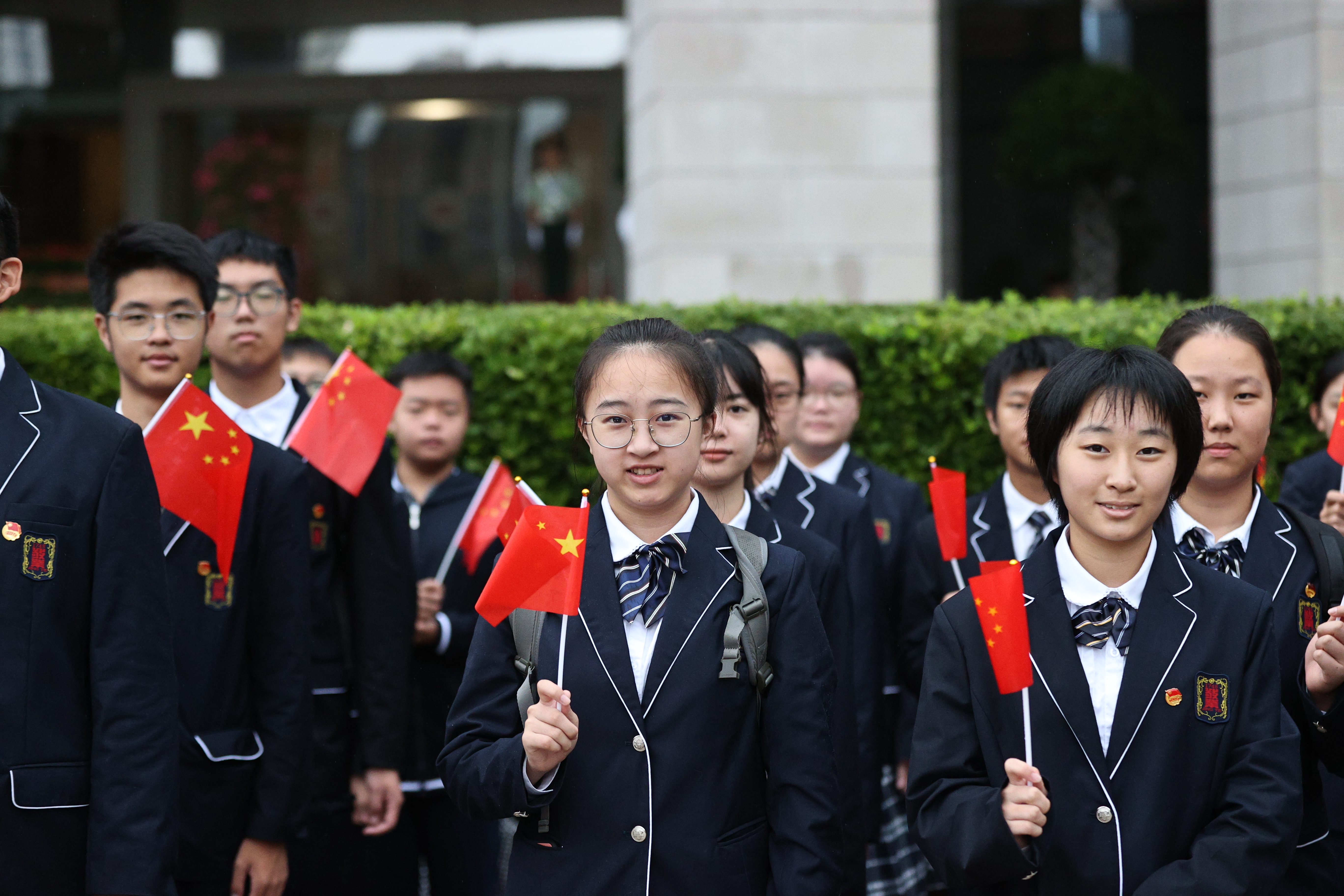 清晨5:30,尽管一场倾盆大雨不期而至,却丝毫没有浇灭同学们的热情与期待。他们早早地来到市政府指定地点,身着整齐校服,手中挥舞着鲜艳的五星红旗,怀着无比崇敬的心情等待仪式的开始。