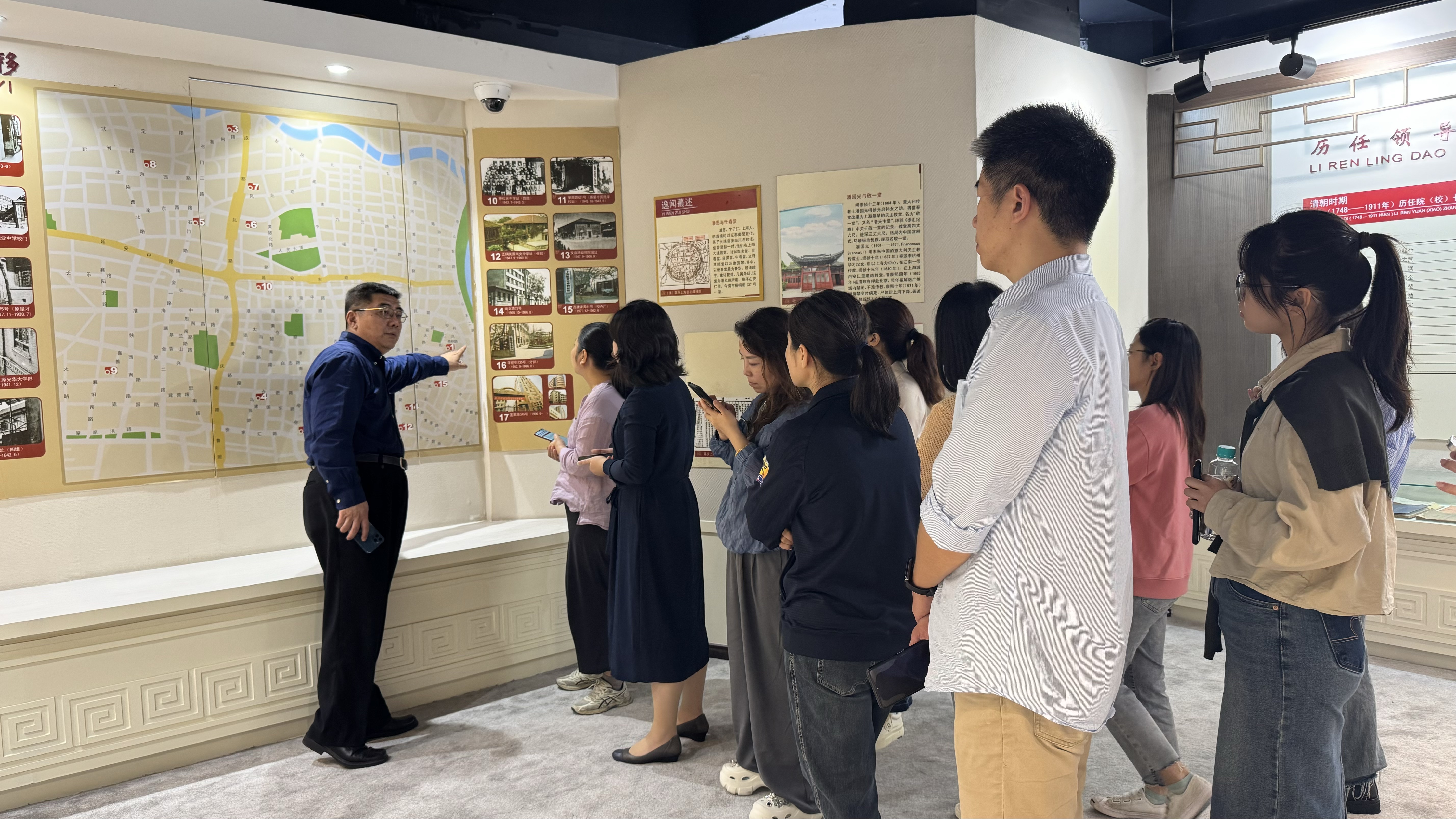 10月15日下午,上海市中小学第六期班主任工作室,朱蘅工作室的学员们在朱蘅老师的带领下,来到了创建于1748年的沪上名校——上海市敬业中学。敬业中学党总支书记马伟亲自带领学员们参观校史馆。步入校史馆,仿佛打开了一部教育的历史画卷,学校的悠久历史、风雨沧桑和辉煌成就让学员们深刻感受到了敬业中学的深厚积淀。
