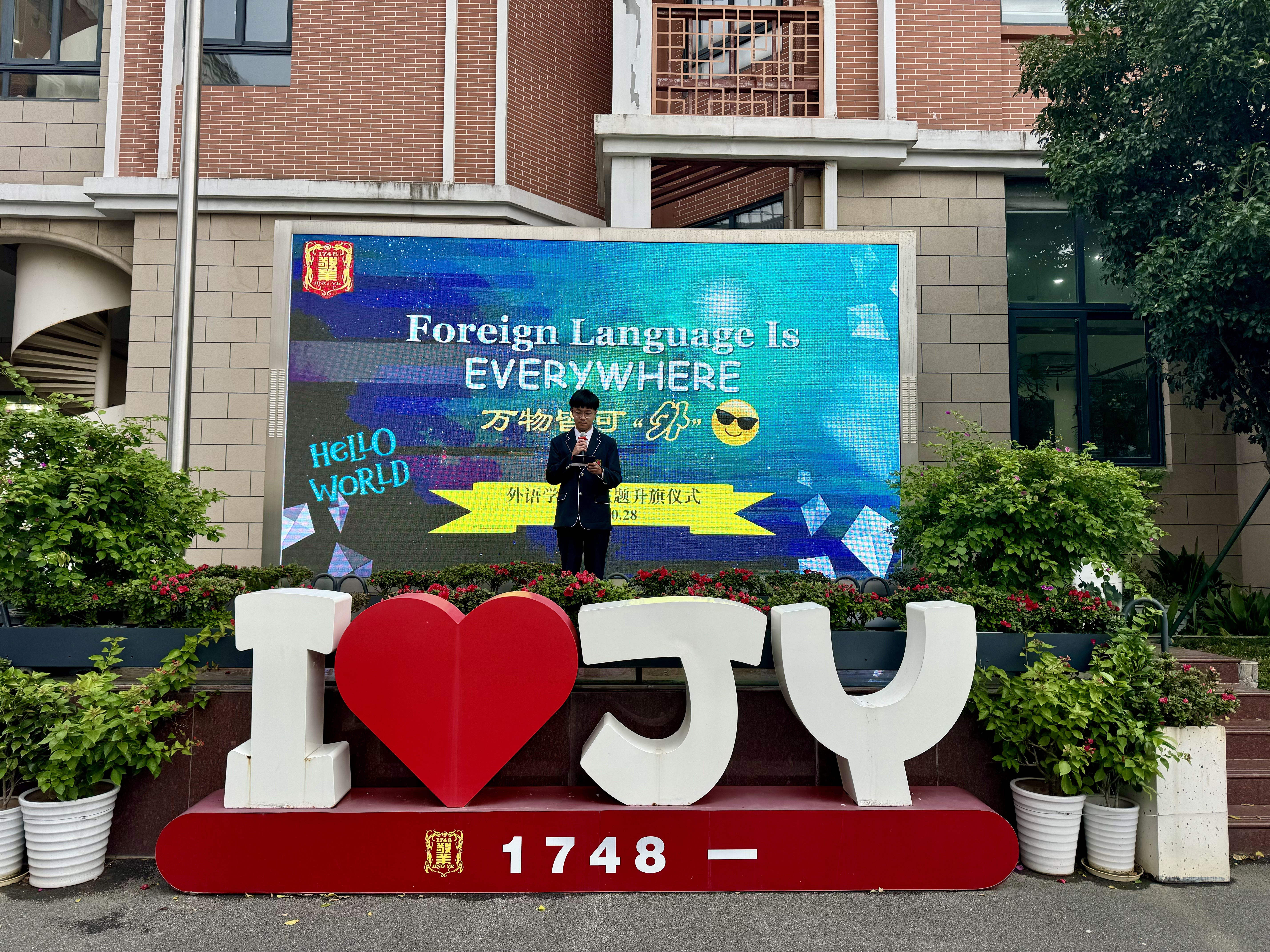 我校开展“万物皆可'外'”外语学科主题月升旗仪式