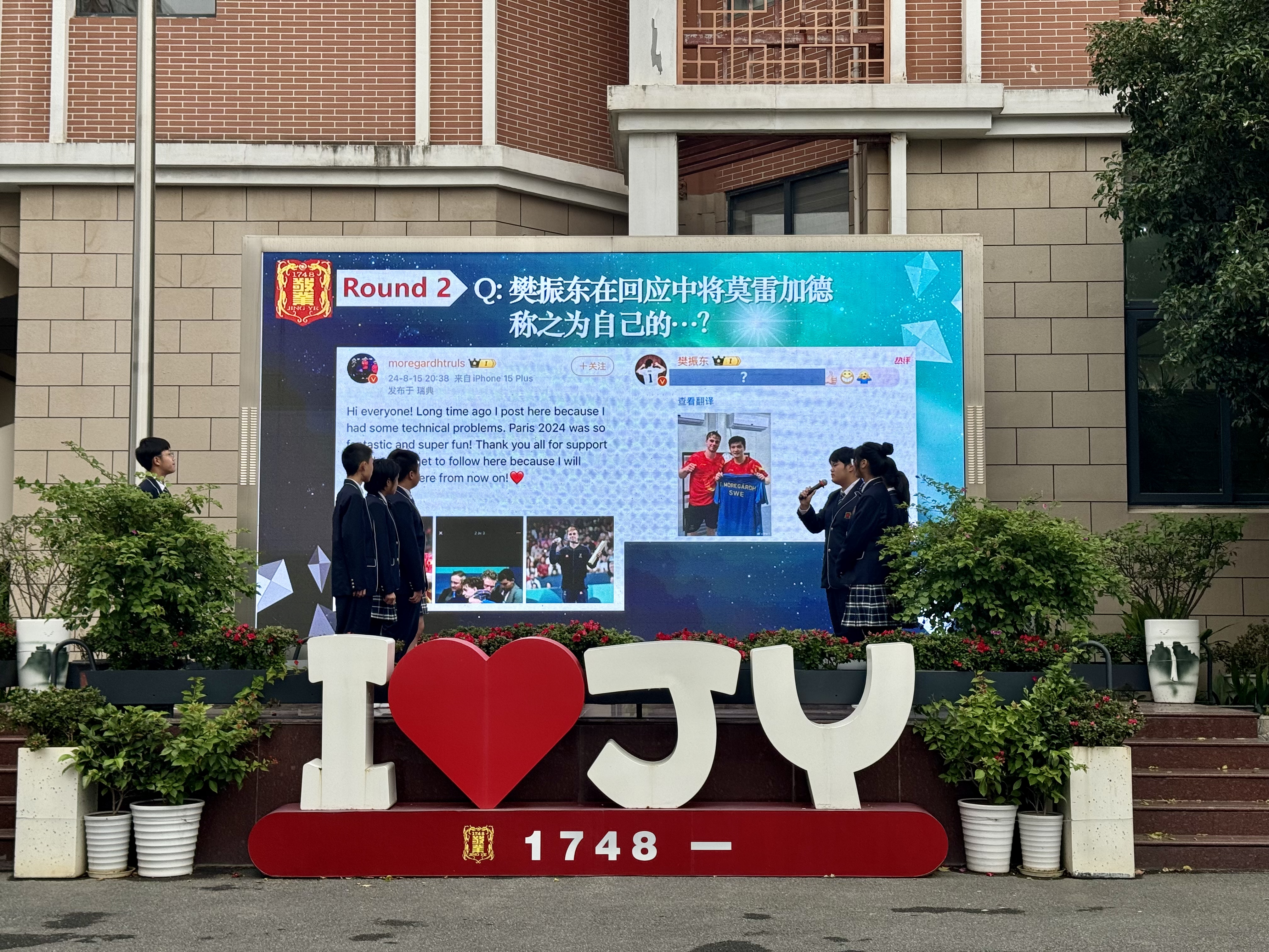 此次升旗仪式主题为“万物皆可'外'”,由外语组与2027届学生携手完成。升旗仪式伊始通过视频介绍了英语暑假作业的要求和目的,强调了通过奥运主题的视频制作来提升英语表达能力和跨文化交流能力的重要性。随后展示了学生们制作的奥运主题优秀视频,台下的同学们也积极互动,提升了敬业学子的积极参与和批判性思维。