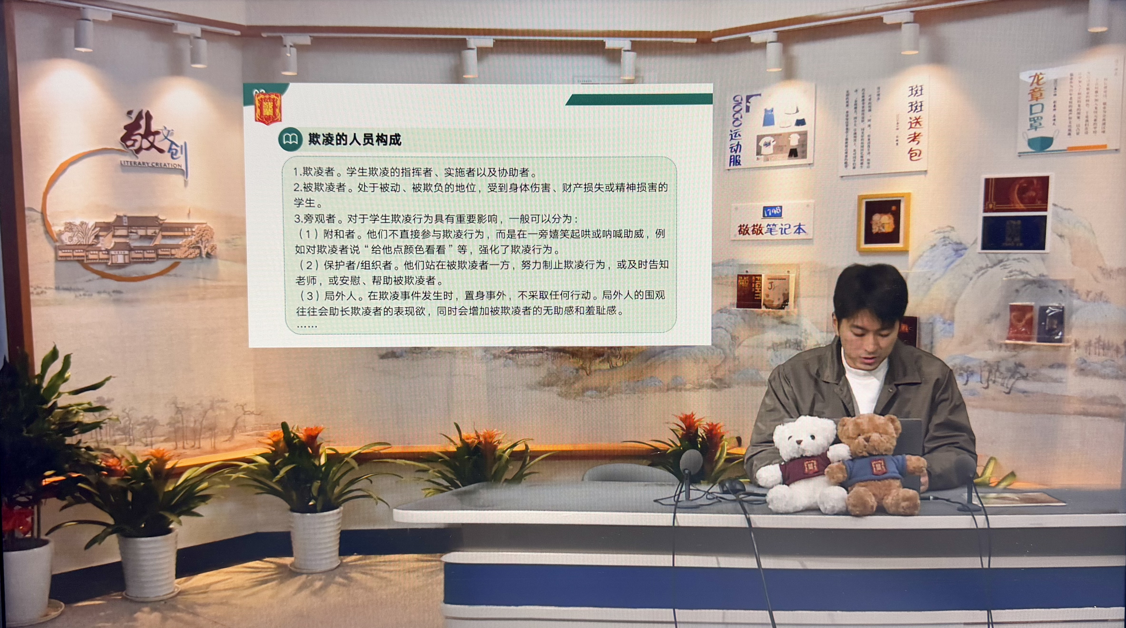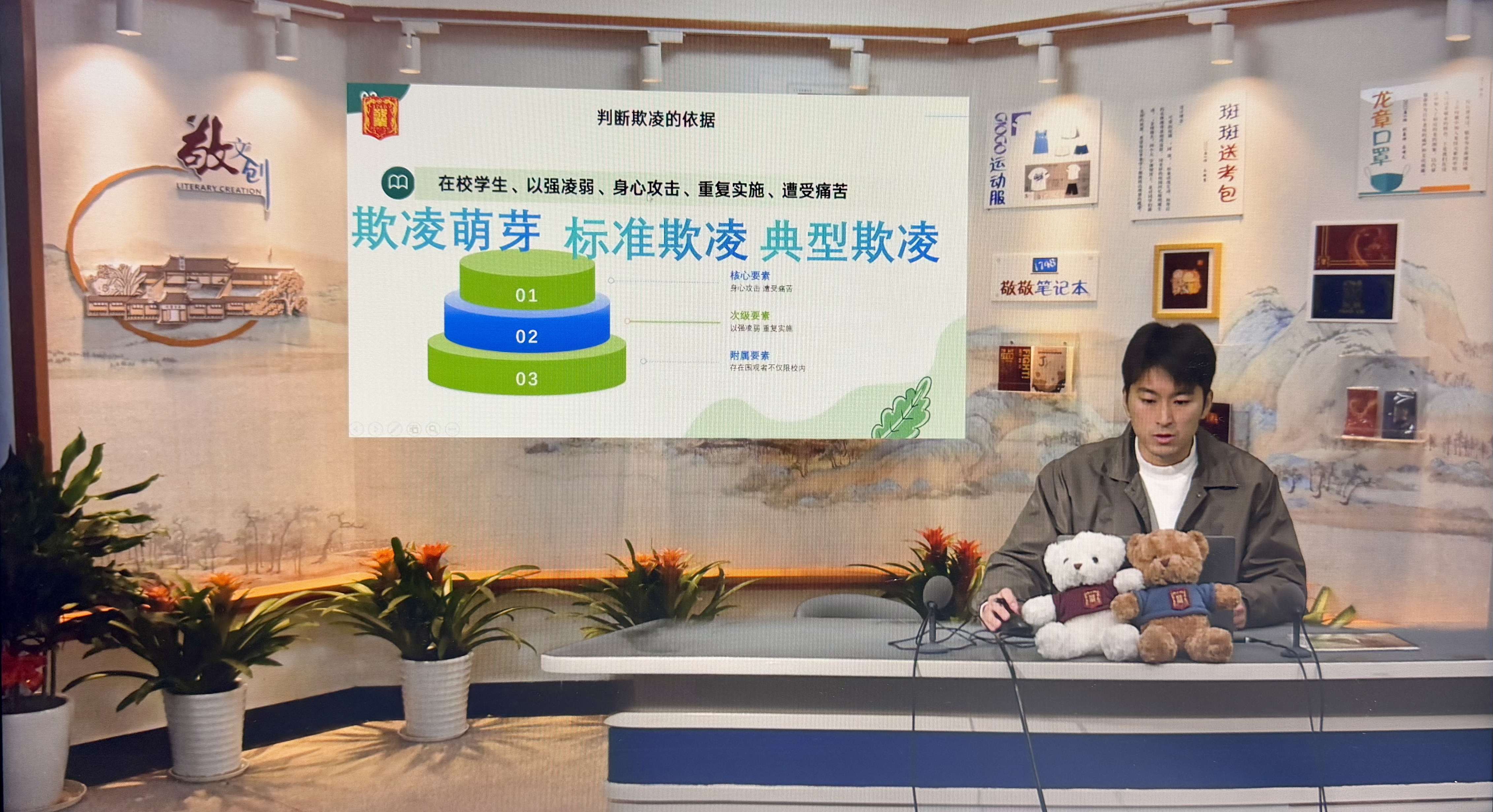 本次升旗仪式,廖老师从欺凌的定义、欺凌的相关要素、欺凌的人员构成、网络欺凌和预防不安全网络游戏几个方面,加强对同学们防止欺凌内容的教育,提升对防欺凌内容的学习。接下来,廖老师通过对欺凌认定要素的讲解,帮助同学们理解欺凌的含义,并且通过几个案例帮助大家认识欺凌,鼓励同学们如果发现身边有欺凌萌芽事件,及时与老师学校沟通,利于早期发现并迅速妥善解决欺凌事件于“萌芽”状态。随后,廖老师介绍了欺凌事件中的主要构成人员,详细讲述了围观者对于欺凌事件不同的看办法和影响。在网络欺凌板块中,鼓励同学保护个人隐私:避免在网络上随意泄露个人信息,如家庭住址、电话号码等,谨慎发布内容,在社交媒体上发布信息时,要注意言辞,避免发表可能引起争议的言论。同时,倡导网络文明,积极传播正能量。在网络上分享积极、健康的内容,抵制负面信息,为营造一个良好的网络环境贡献力量。最后,针对近期发生的网络不安全游戏情况,教育同学们敬畏生命、尊重生命、热爱生命。