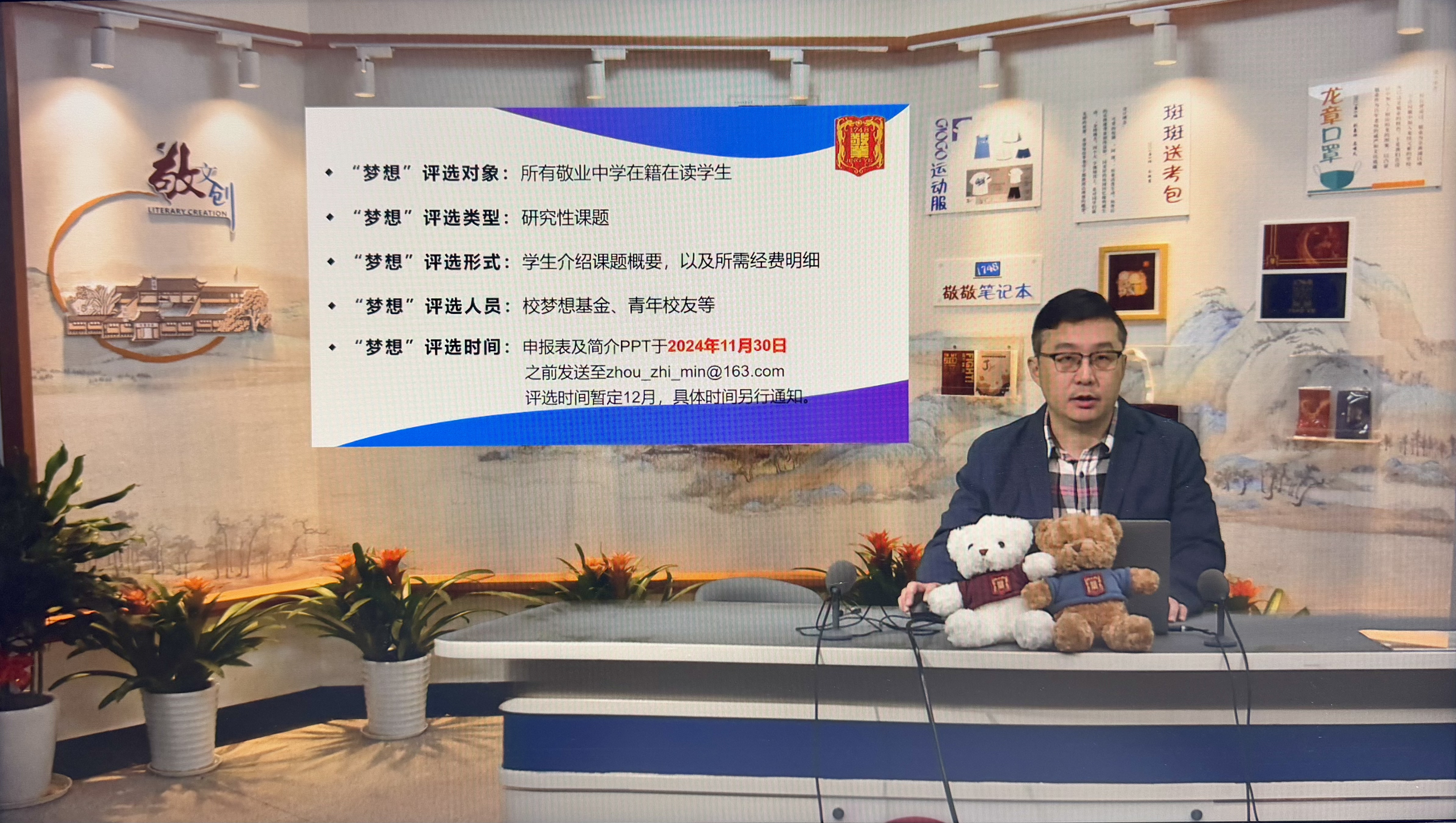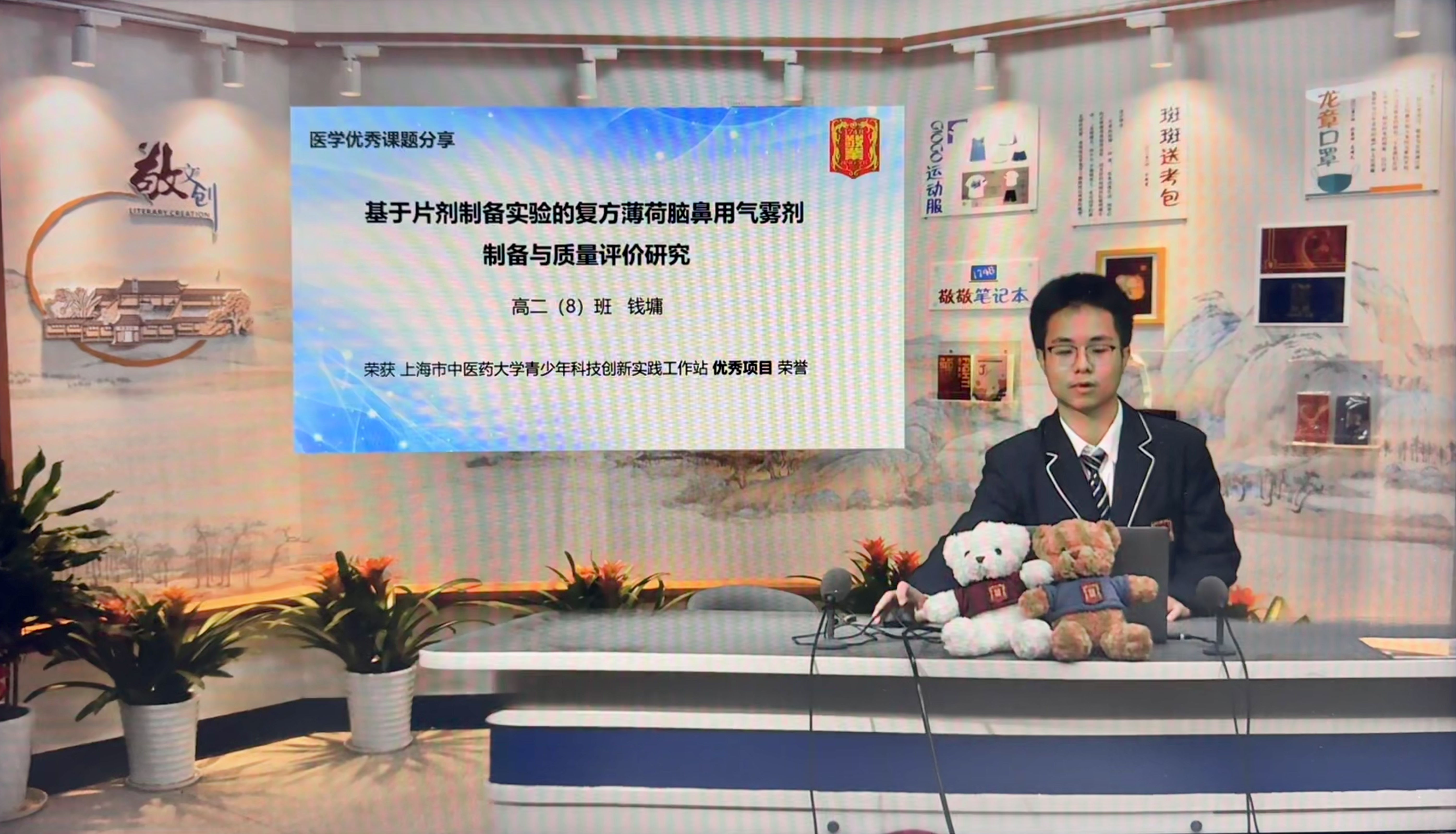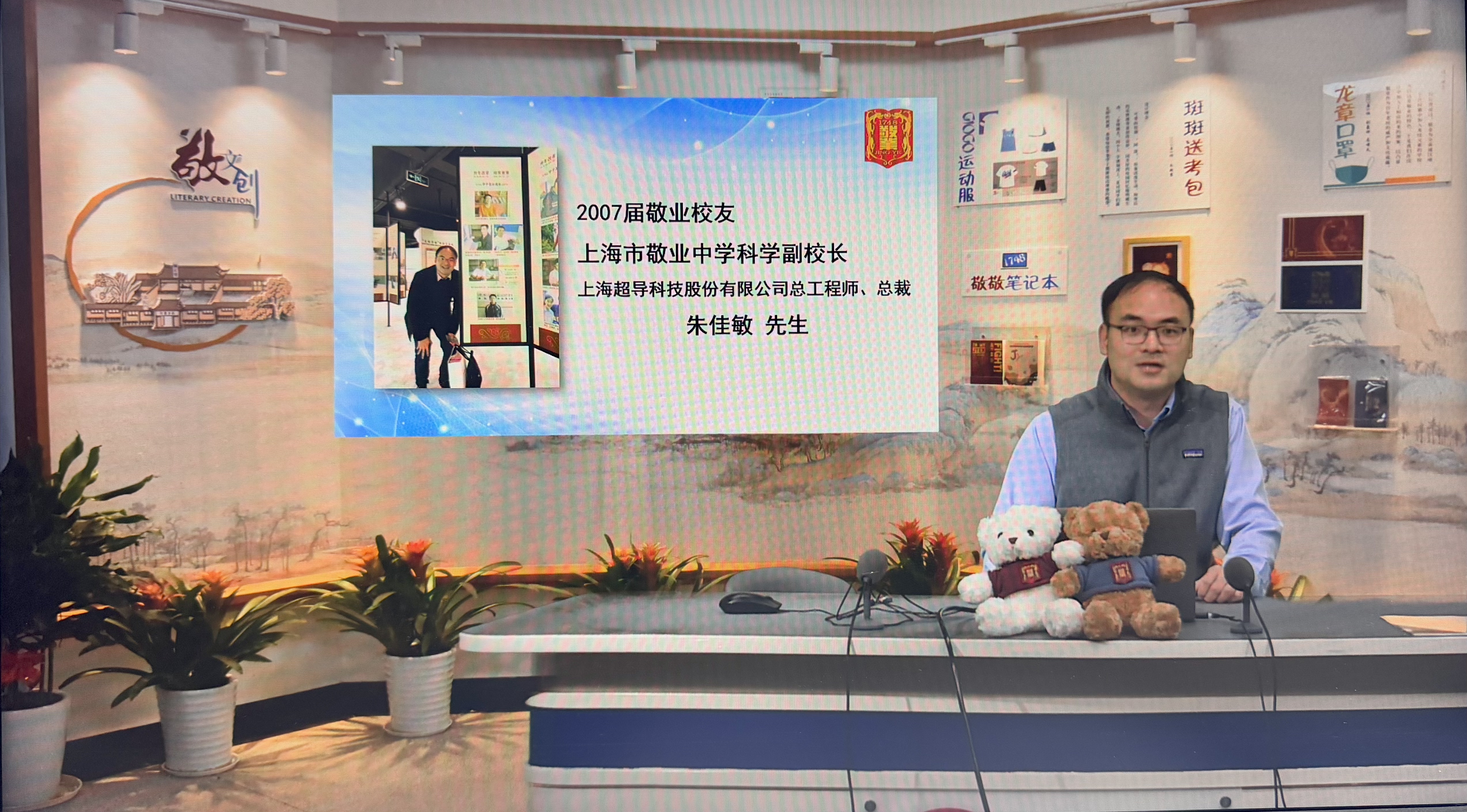 首先由高二8班的钱墉同学分享了自己在上海中医药大学实践工作站完成创新课题的感想与收获。他的课题经过层层挑选,最终被评为“优秀项目”,展现了敬业学子在科技创新方面的卓越才华。之后2007届高中校友、现任敬业中学科学副校长、上海超导科技股份有限公司总工程师、总裁的朱佳敏副校长为同学们分享他在学生时代完成课题研究的经验。朱佳敏副校长结合自己的成长经历,向同学们提出了宝贵的建议,并鼓励他们积极参与科技创新活动,不断提升自己的综合素质。随后,高二8班的崔涵喆同学介绍了自己目前正在推进的人工智能课题。他详细介绍了课题的研究背景、目的、方法以及预期成果,展现了敬业学子在人工智能领域的探索精神和创新能力。