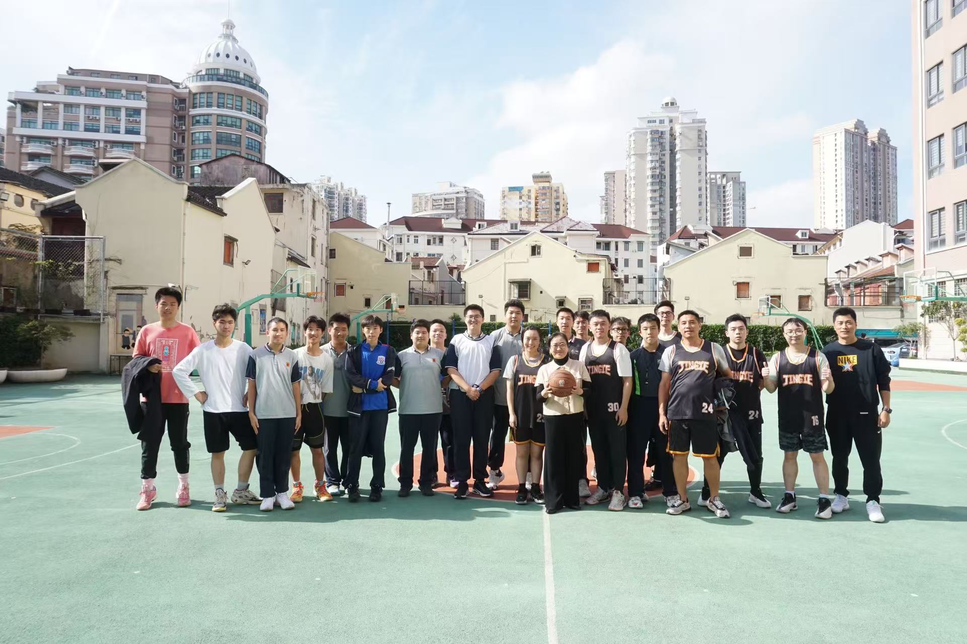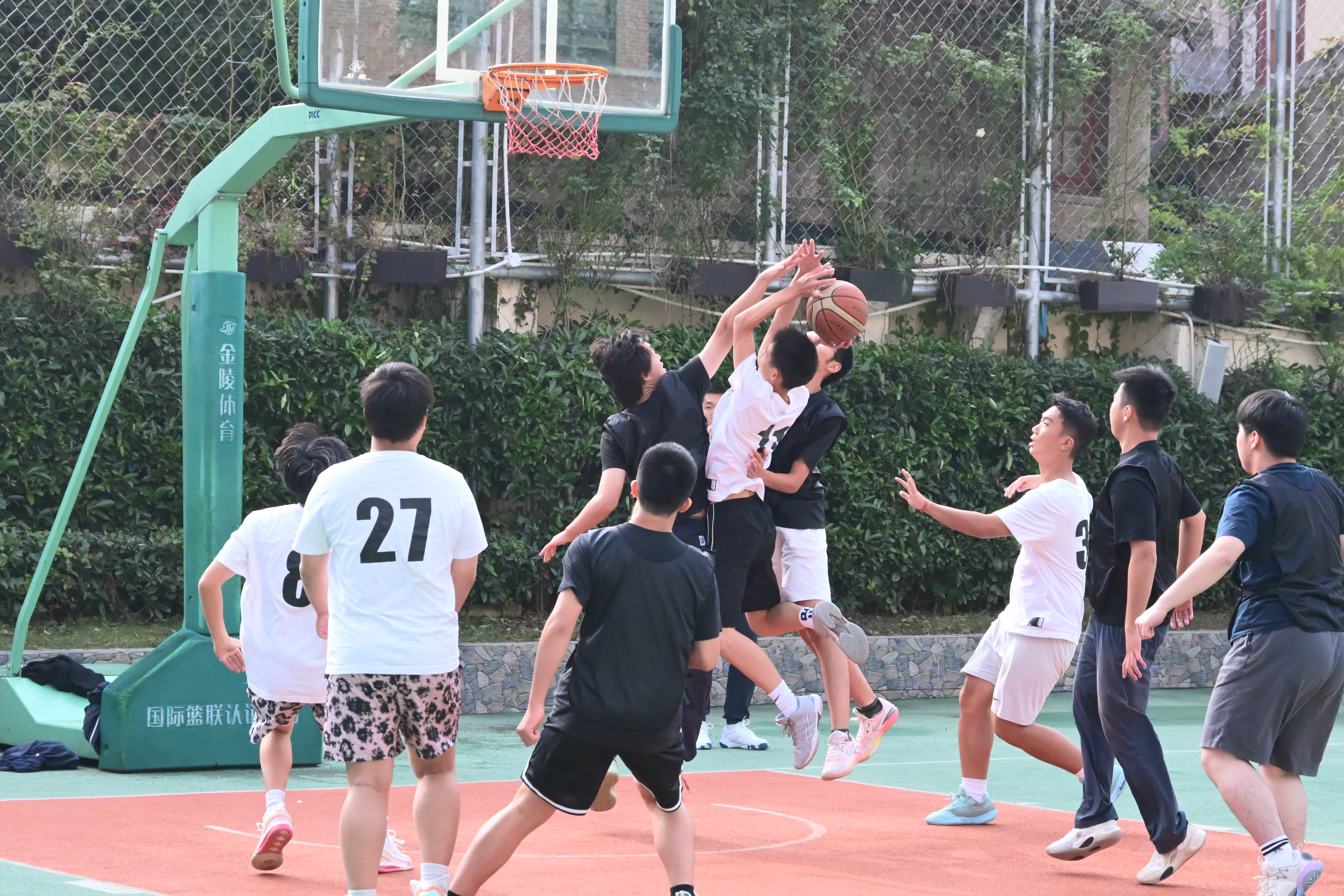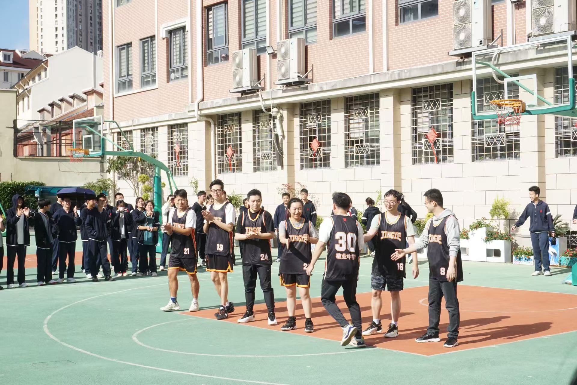 在系列赛结束后,我校特色教工篮球课的老师们与学生联队来了一场师生友谊赛,为本次“敬业杯”篮球赛完美谢幕。最终双方队员都展现出高超的球技和良好的比赛风采,进一步拉近了老师与学生之间的情谊。