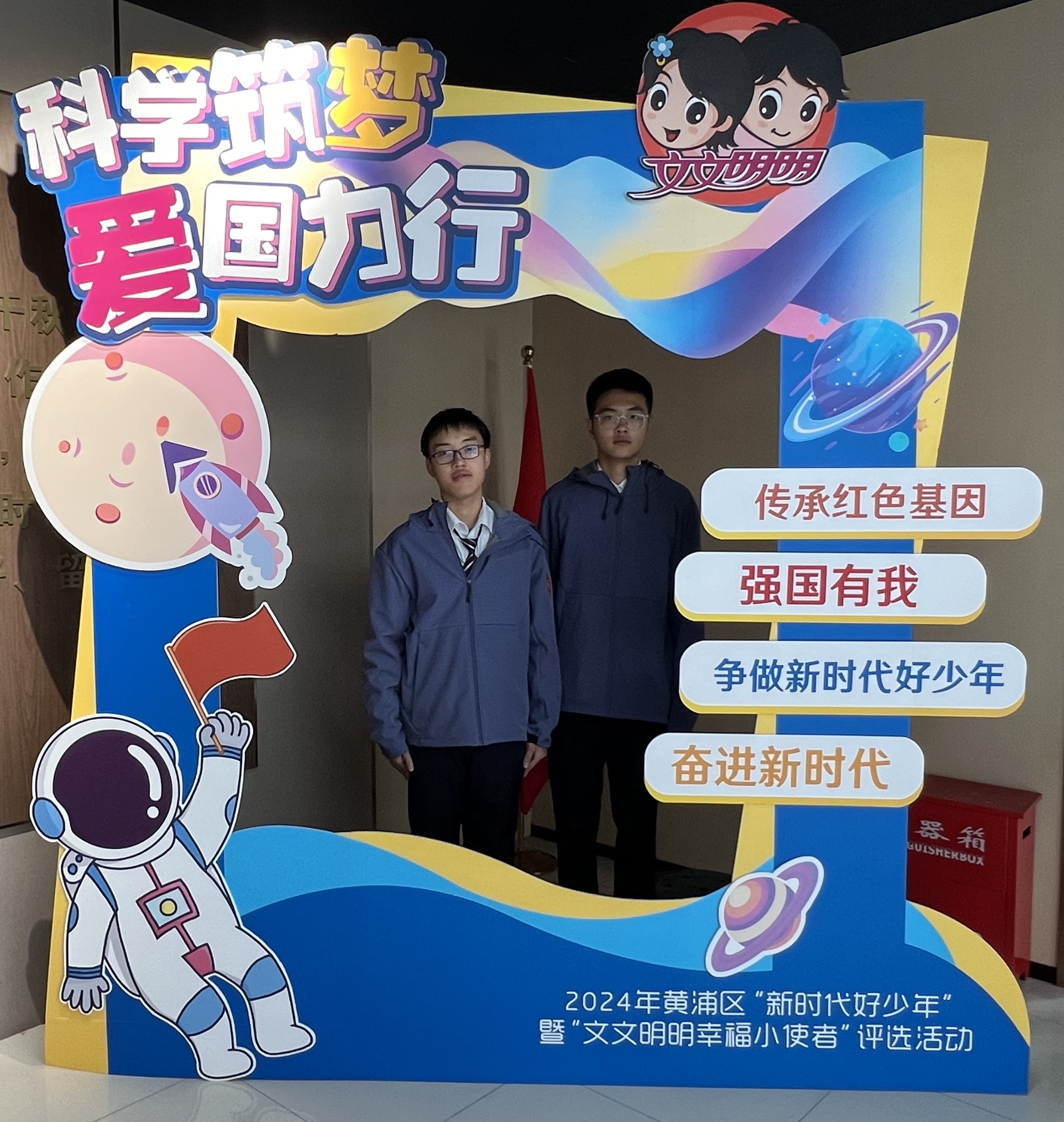 2024年黄浦区“新时代好少年”暨“文文明明幸福小使者”评选活动于11月22日落下帷幕。经班级推荐、年级推选、学校评议,我校高二(7)班徐铭哲、高三(8)班俞卓臻两位同学参加了区级复赛评选活动。两位同学在复赛评选过程中参加了劳动实践体验类活动--核心舱模型制作、自我介绍、现场答辩。他们在行规、团队合作等方面表现优异,获得评委好评。