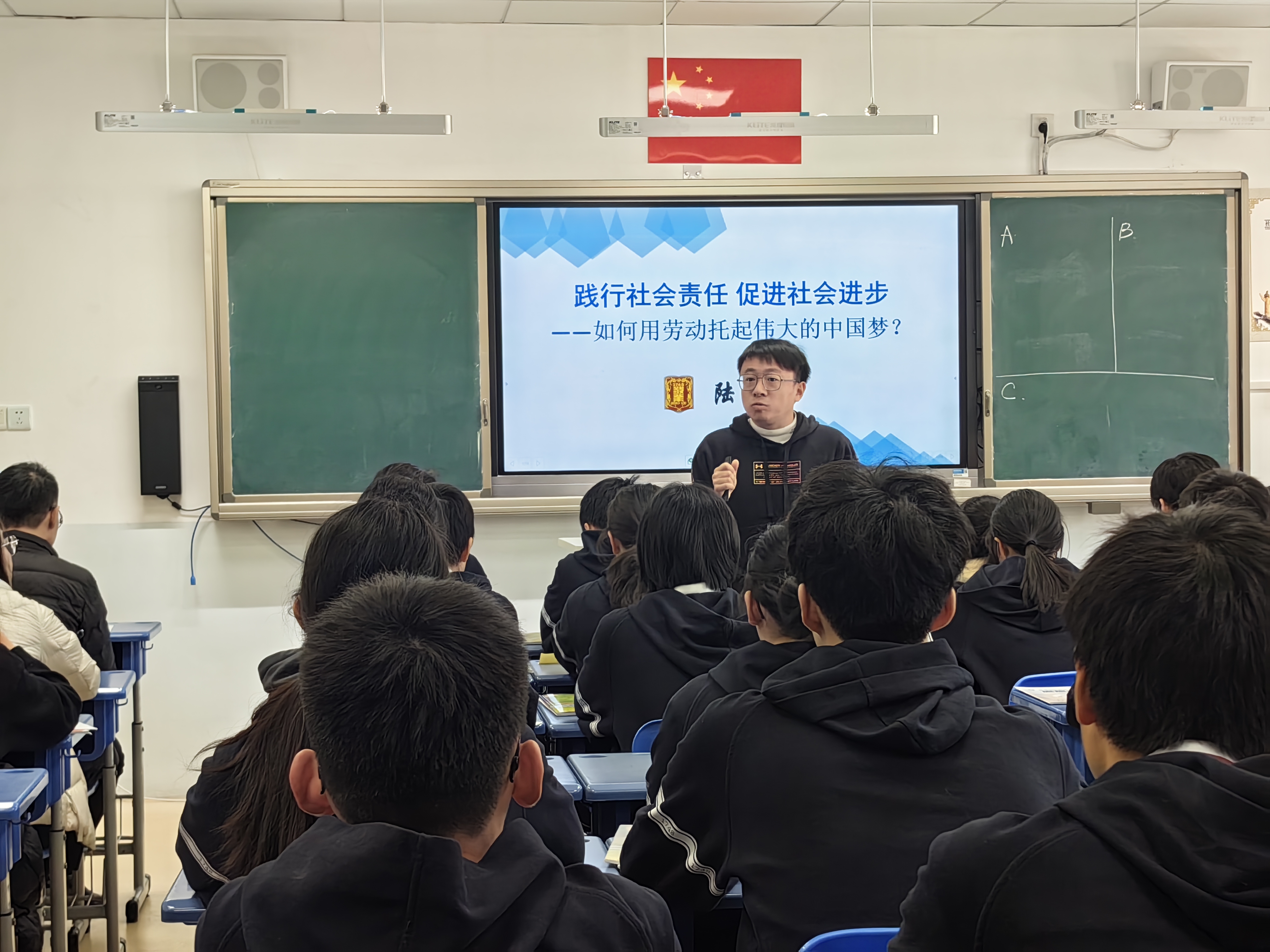 政治组陆俊杰老师开设了《如何用劳动托起伟大的中国梦》的公开展示课,从课前问卷调查中了解到学生的劳动思想观念出发,引导学生思考自己未来的职业。再通过模拟招聘会、采访互动、致敬劳动者、创新劳动等环节,能够鼓励学生全面提升自身素养,提高为他人和社会服务的能力,培养劳动精神;体认劳动不分贵贱,树立劳动最光荣、劳动最崇高、劳动最伟大、劳动最美丽的观念。