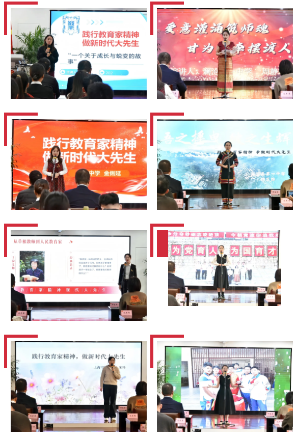 来自敬业中学与澜沧一中的8位青年教师围绕“践行教育家精神 做新时代大先生”的主题进行了演讲。他们用实际行动诠释了教育家精神的内涵,展现了新时代教师的风采和担当。