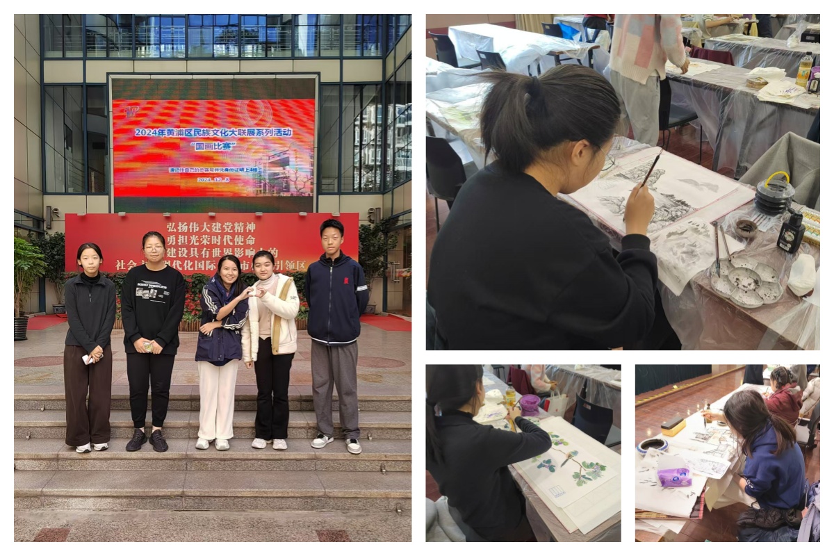 2024年12月8日下午,我校高一年级郭若霖、刘芸嘉、费子媛、马毓阳、朱嘉乐五位同学代表学校参加了2024年黄浦区民族文化大联展系列活动——国画比赛。此次活动聚集了不同年龄段的国画热爱者们,旨在交流和分享国画心得。同学们各施所长,最大程度地发挥出了自己应有的水平,希望他们都能取得佳绩,为学校争光。国画的创作与学习也让同学们对中国传统文化有了更深的理解和感悟,相信他们能将这份热爱继续坚守下去。