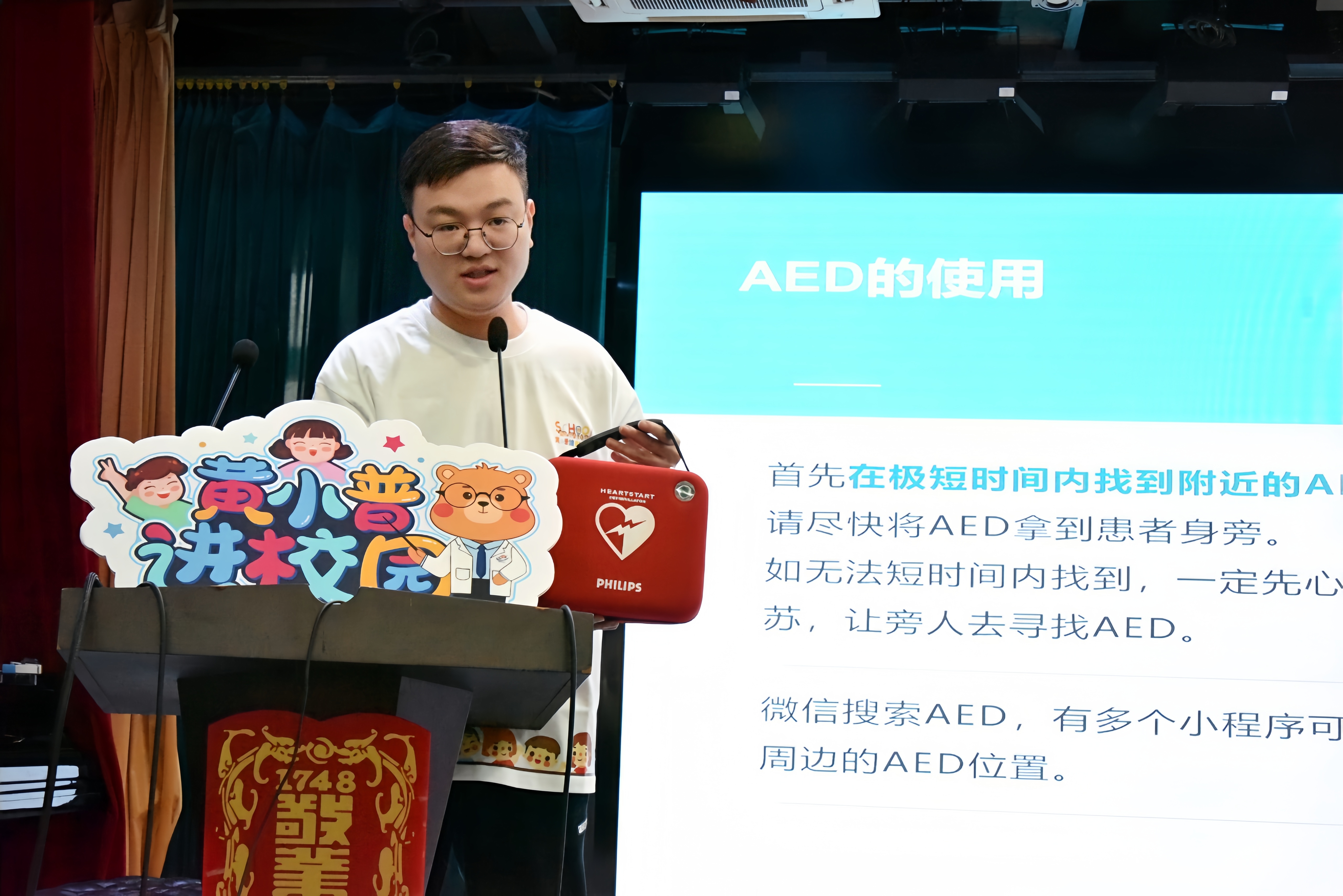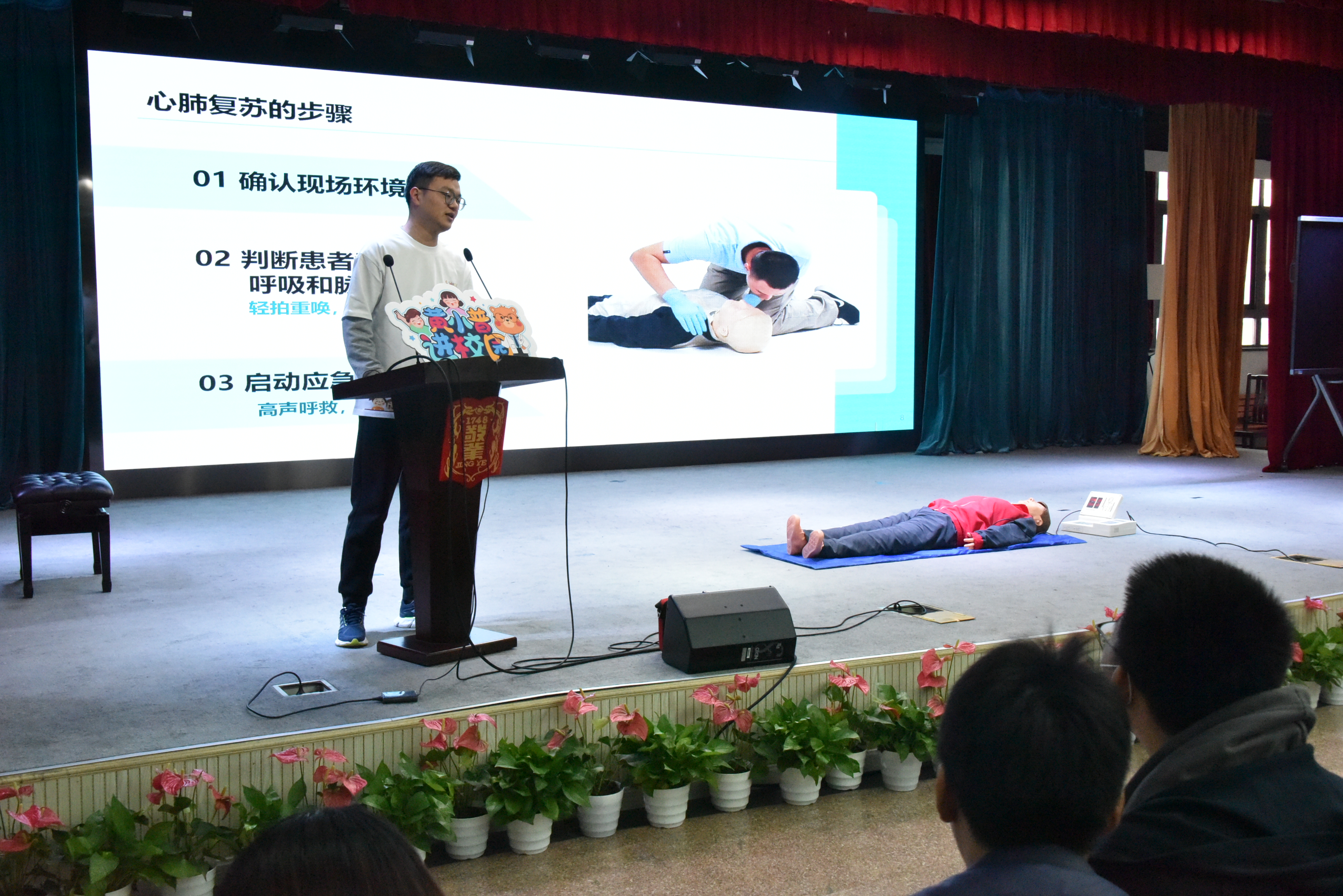 接着,心脑血管与糖尿病防制科邹亚伟医师讲解了心肺复苏、aed的操作步骤。邹医师详细讲解了心肺复苏的正确操作方法,包括胸外按压的位置、力度、频率以及人工呼吸的技巧等并进行了示范。最后,邹医师邀请同学们上台进行心肺复苏的实操演练,同学们积极踊跃参与,通过亲身体验,让同学们在实践中加深印象,巩固所学。