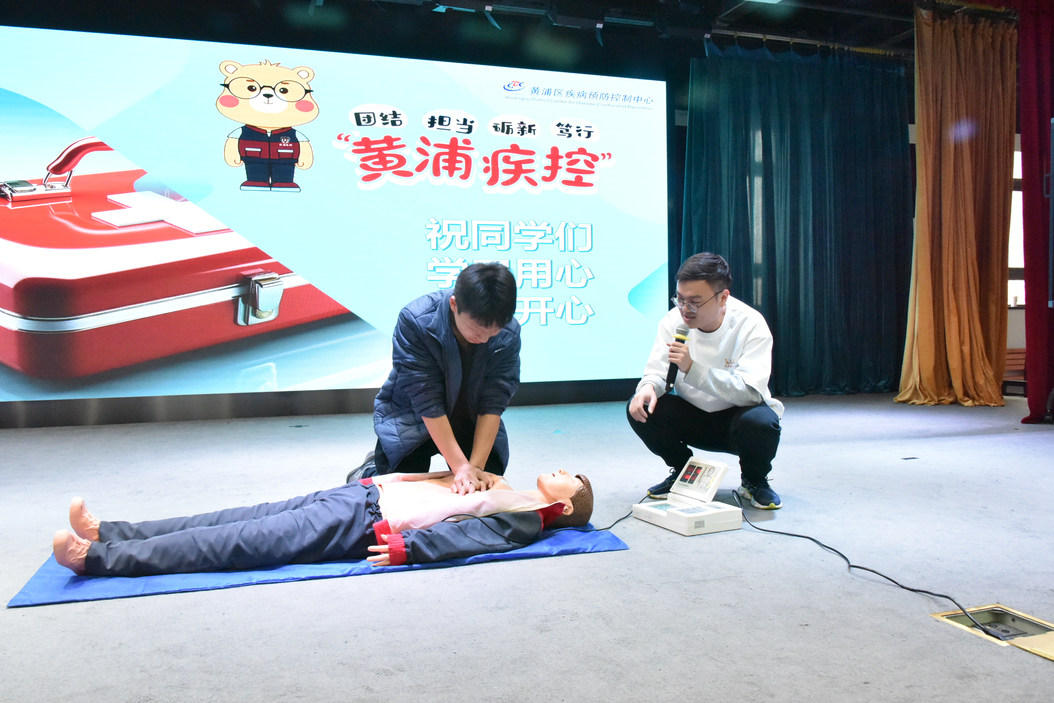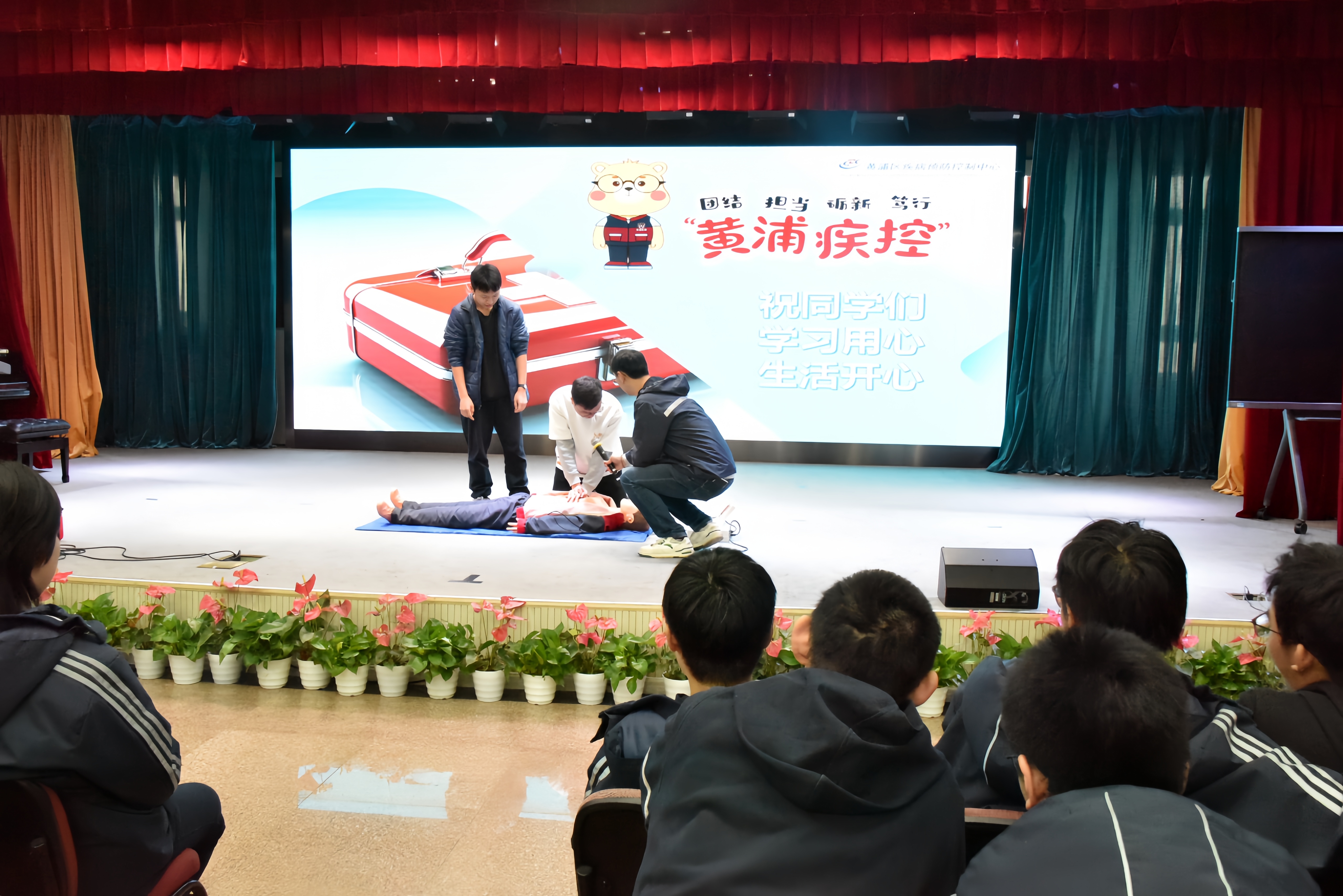 12月6日,为提高中学生对心梗的认识和应对突发心梗的急救能力,上海市黄浦区疾控中心(上海市黄浦区卫生健康监督所)“黄小普健康科普”团队的心脑血管与糖尿病防制科的副科长殷良副主任医师和邹亚伟医师等人来校以知识宣讲、互动答题、实操演练等形式,为同学们带来了一堂生动的心梗预防科普课程。