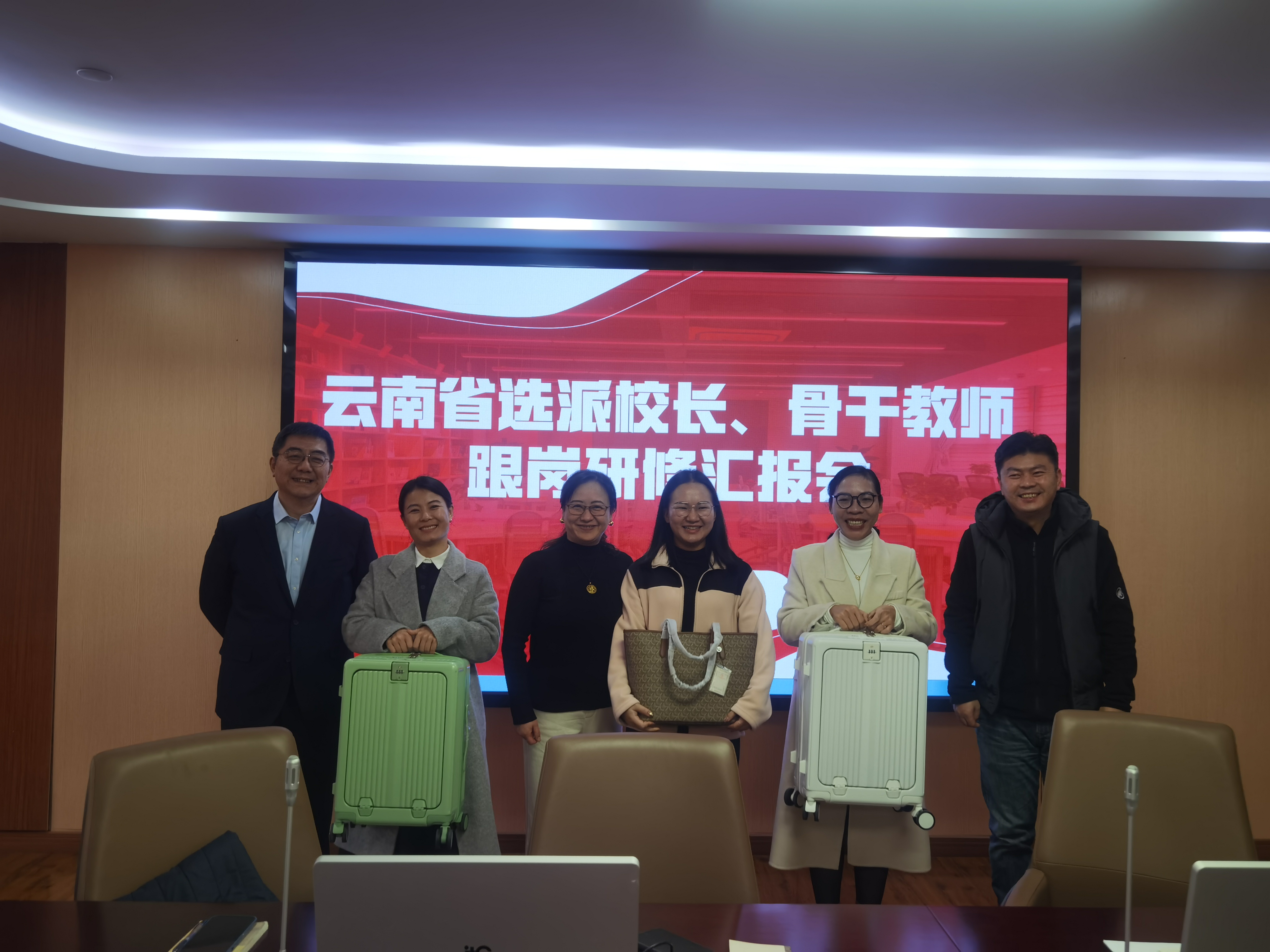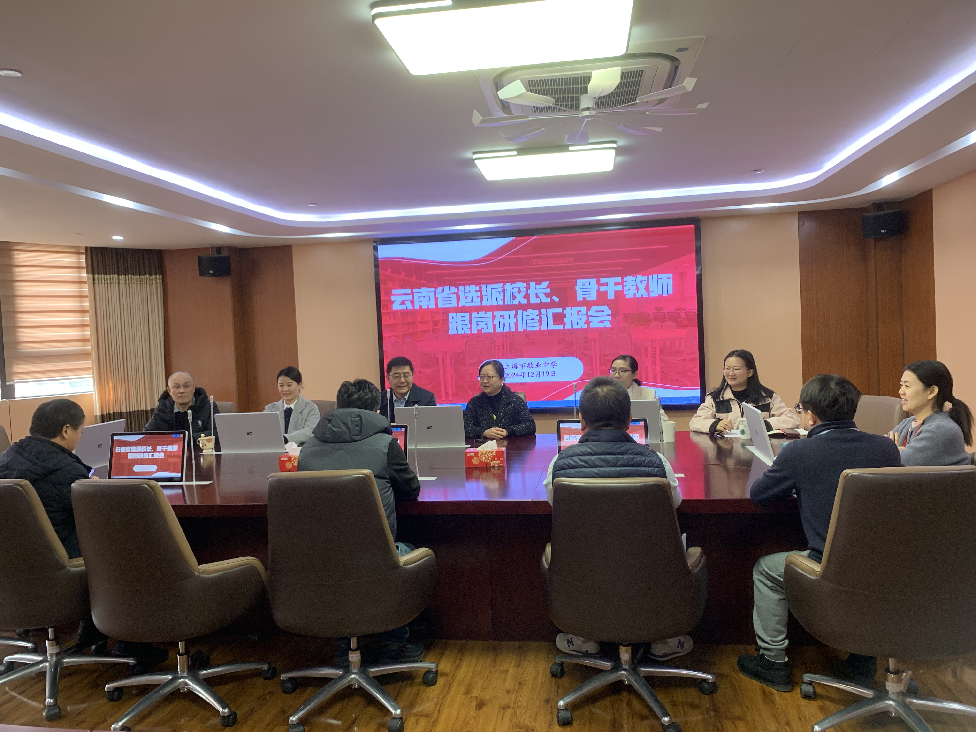 12月19日,云南省选派校长、骨干教师敬业中学跟岗培训汇报会在敬业中学召开。敬业中学党总支书记马伟、敬业中学校长金怡、以及敬业中学部分行政领导出席,来自云南的三位跟岗教师与会,教导处主任耿令华主持。汇报会分学员分享、领导寄语和礼物赠送三个环节。