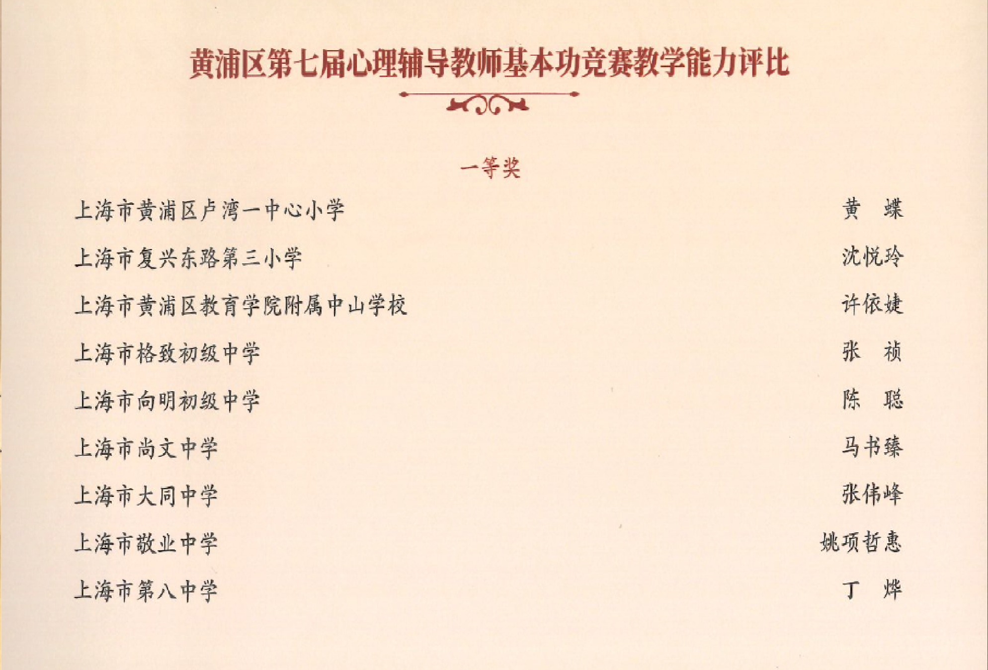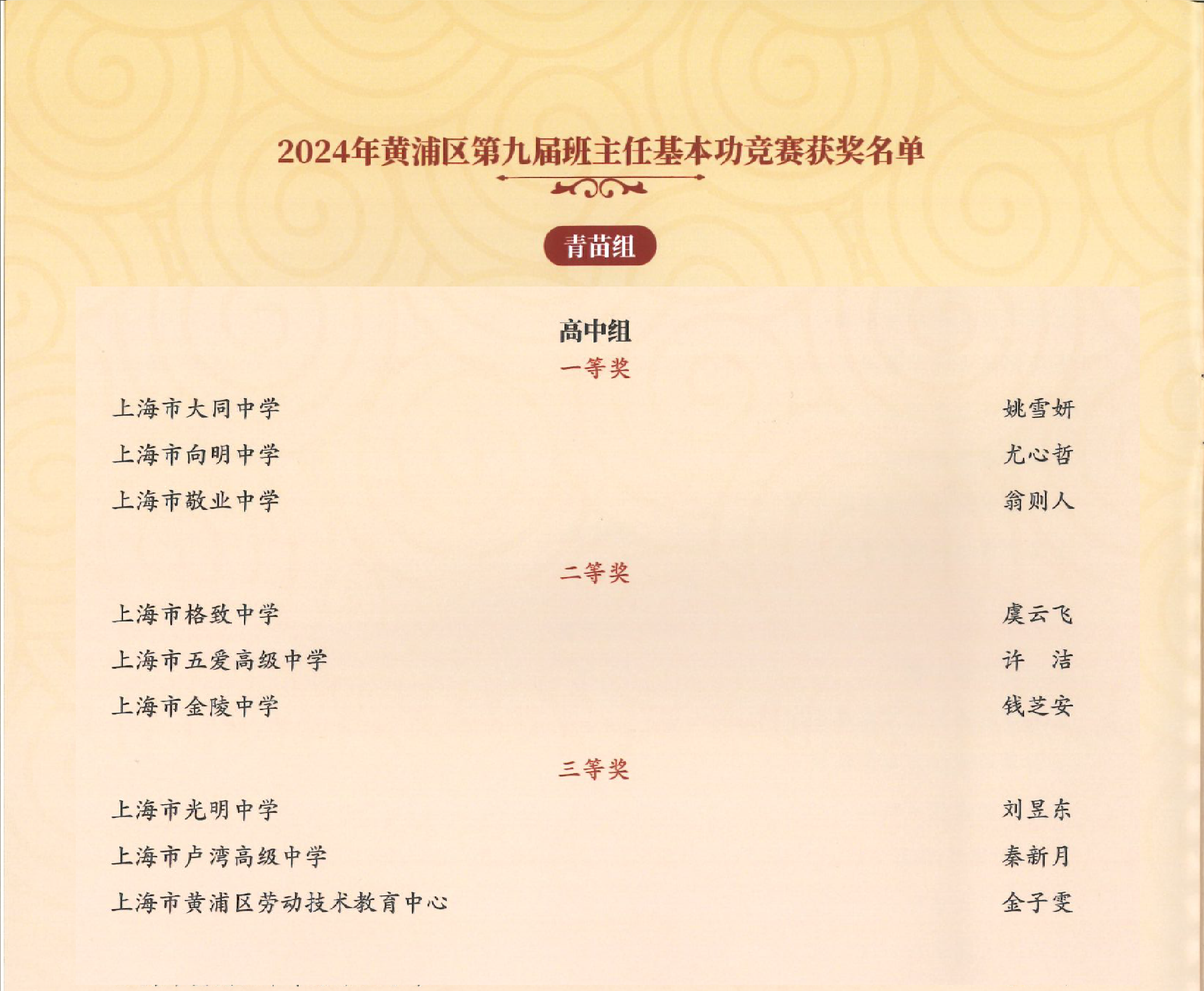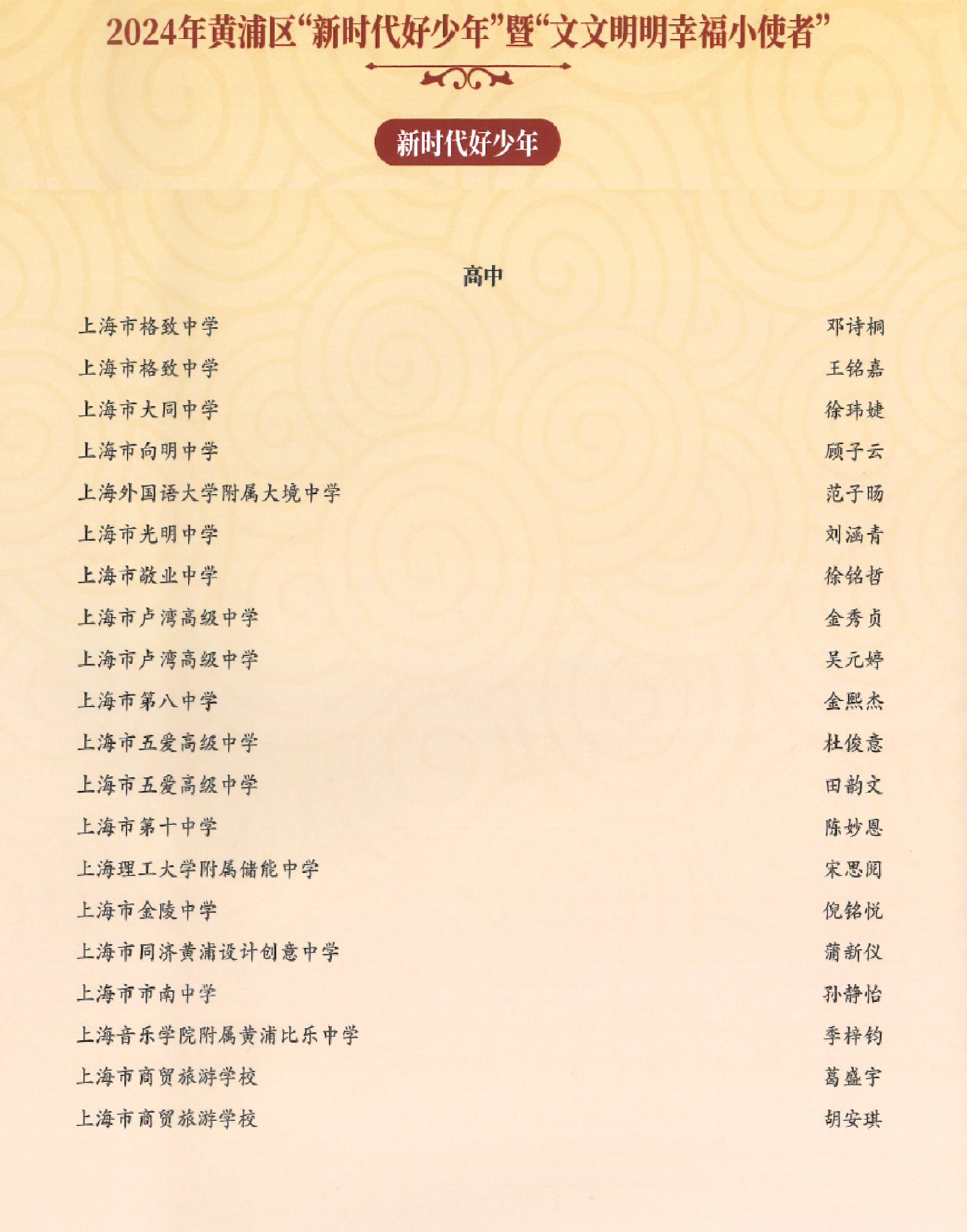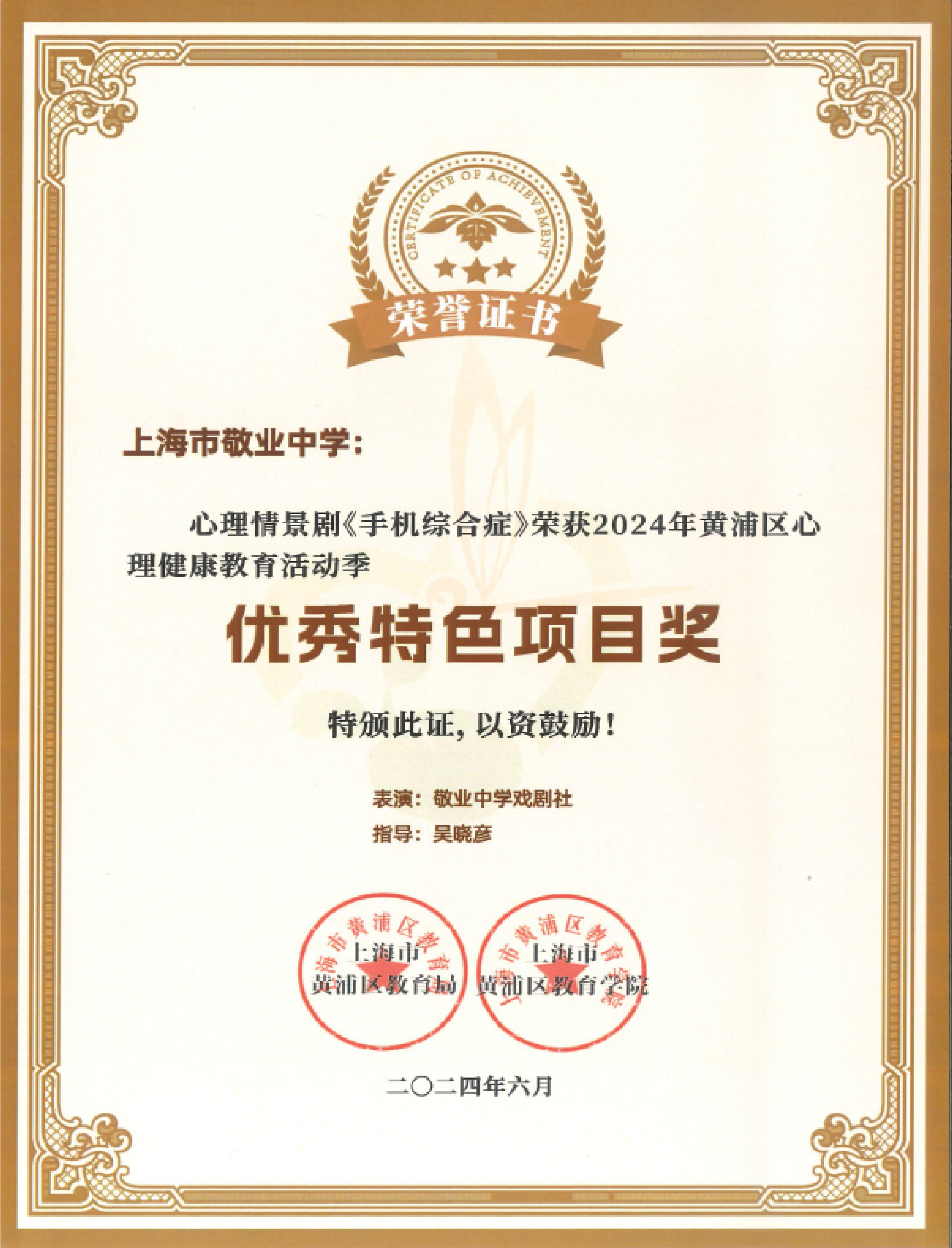 》获黄浦区心理健康教育活动季优秀特色项目奖;吴晓彦老师荣获黄浦区优秀导师荣誉称号;袁凌蓉老师受聘成为黄浦区家庭教育指导讲师团成员;2025届8班俞卓臻同学荣获黄浦区新时代好少年金奖;2026届7班徐铭哲荣获黄浦区新时代好少年“文文明明幸福小使者”称号。
