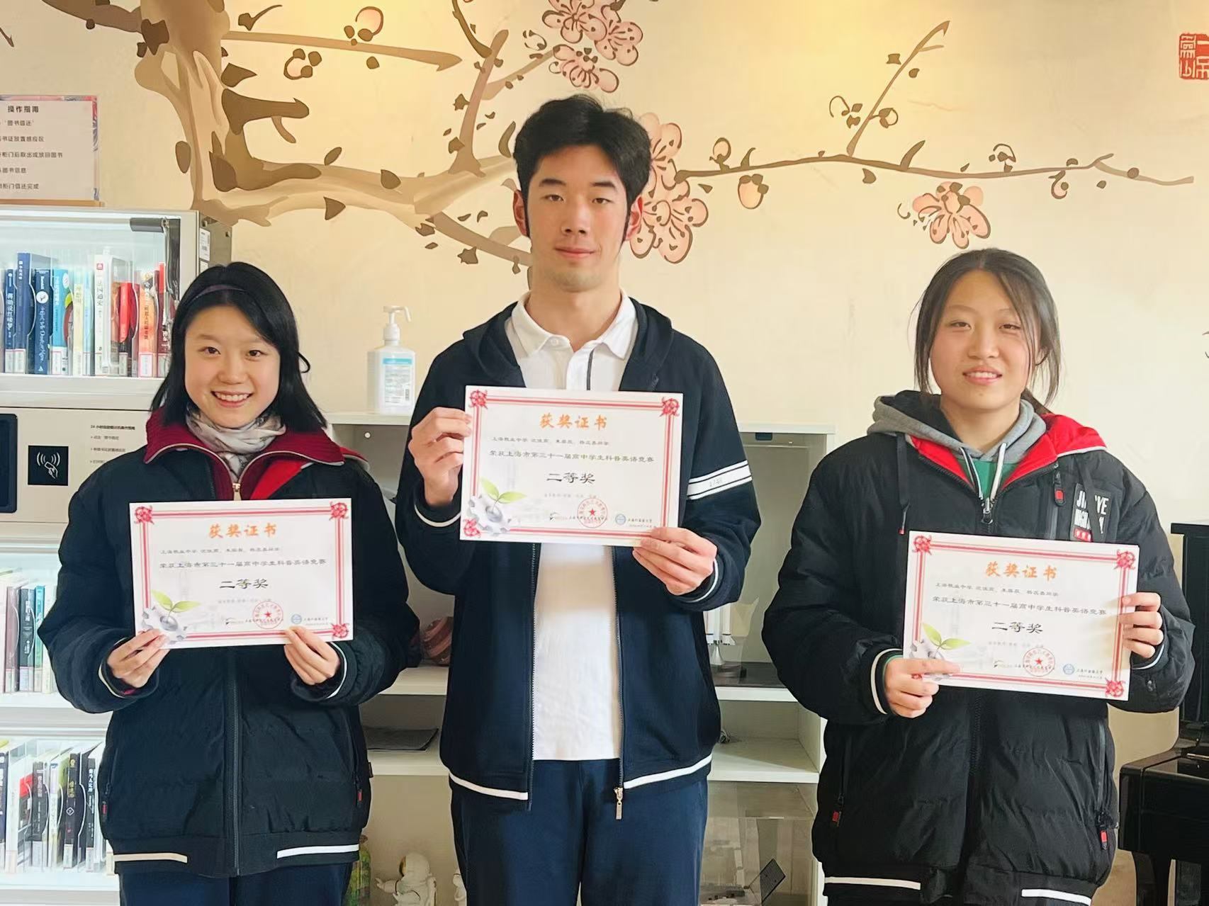 在刚刚结束的上海市高中学生科普英语竞赛中,我校学子:沈佳高、朱奕辰和杨蕊嘉三位同学组成的团队,在激烈的竞争中脱颖而出,荣获市级团体二等奖。