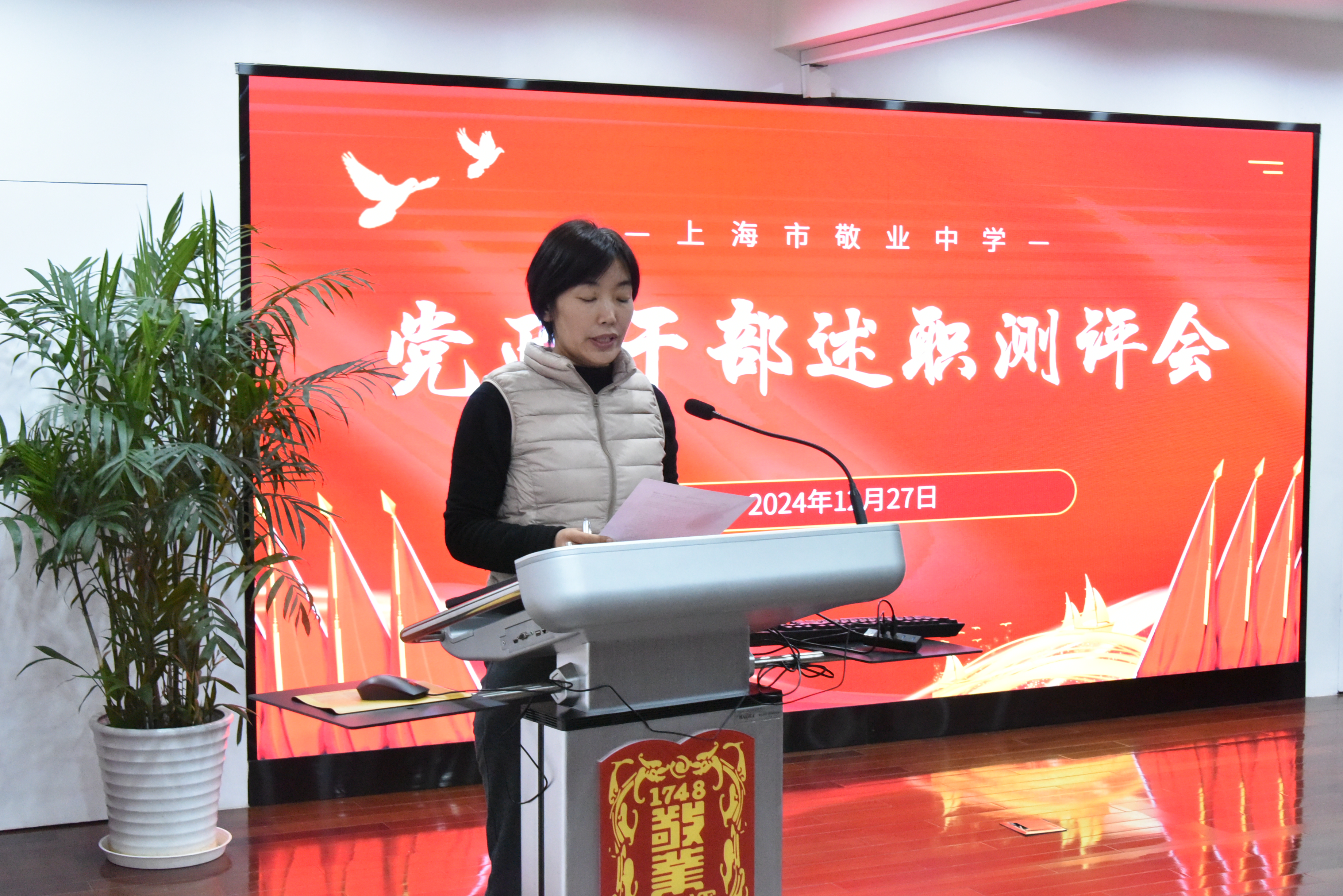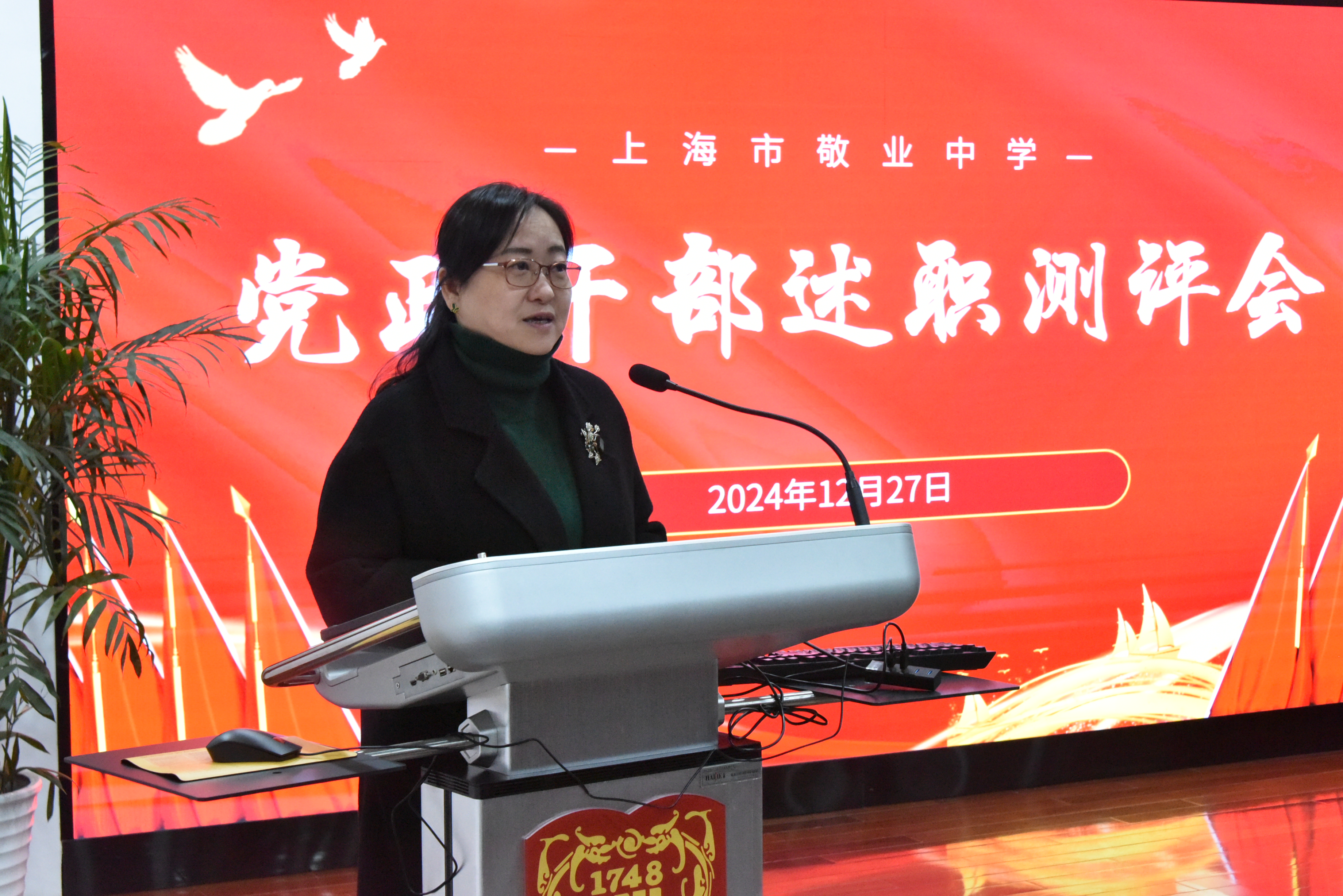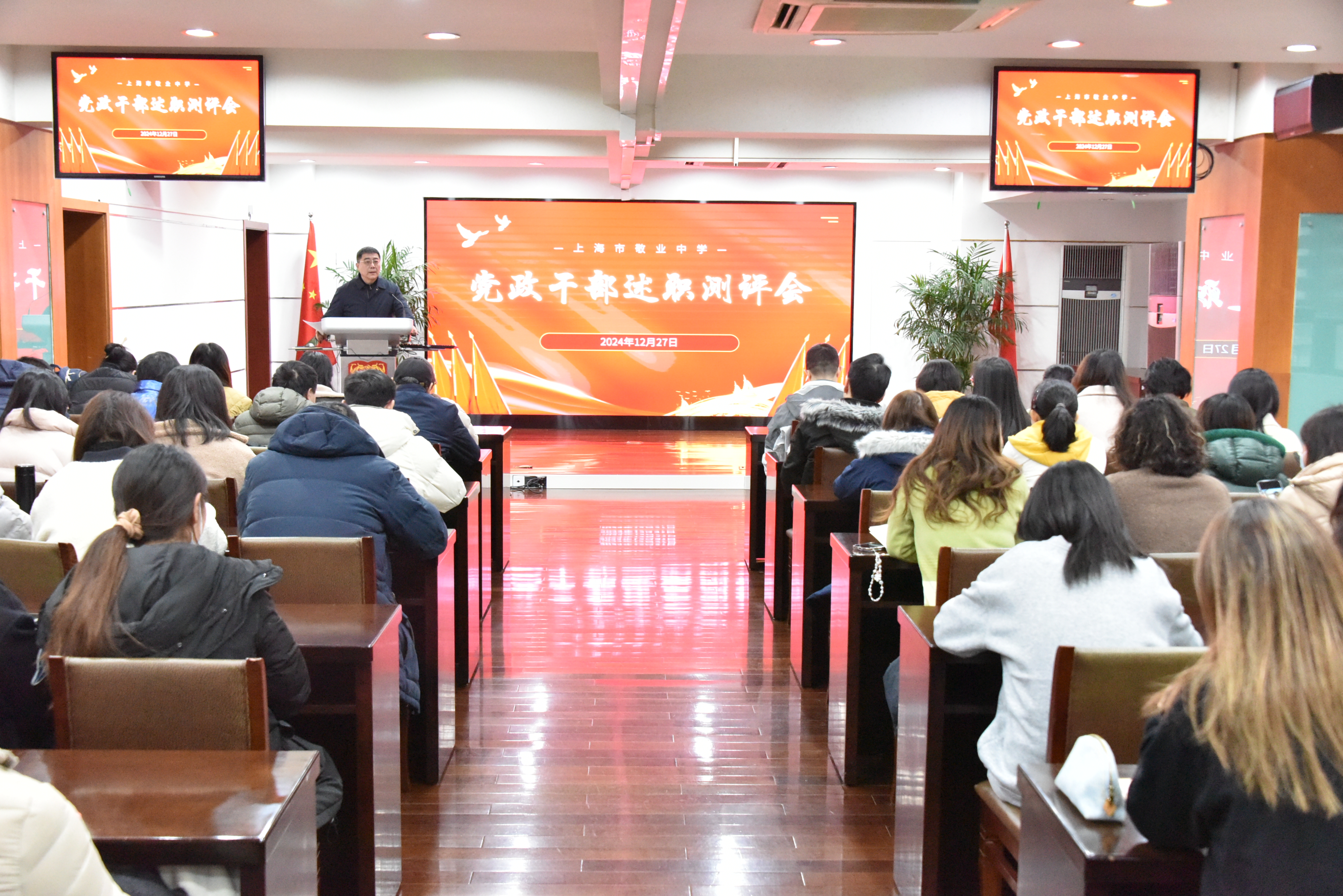 根据《关于做好2024年度黄浦区教育系统党政干部年度考核工作的通知》的要求,我校于12月27日下午召开党政干部述职测试会。领导班子围绕本年度深入贯彻落实习近平新时代中国特色社会主义思想,全面贯彻党的二十大精神,完成年度工作目标和上级布置工作任务等情况,先由党总支书记马伟代表班子述职年度支部工作和行政工作,随后党政正副职领导干部依次述职个人工作。