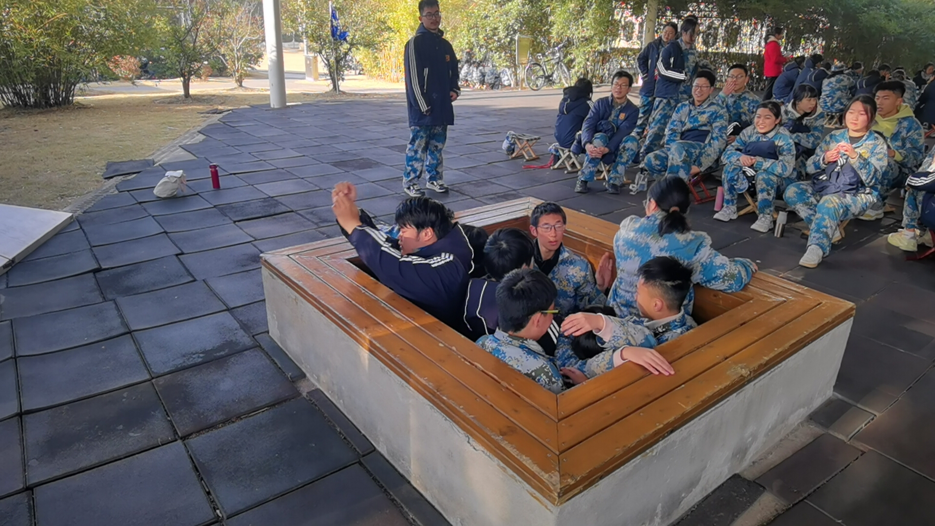 12月31日,是军政训练的最后一天,早餐后同学们来到了户外,开展了最后的军事拓展体验,这项活动考验的是团队合作能力。我们每个班级分为了10至11人的小组,顺势跳入约一米55的深坑,依靠组内成员的相互配合搭建人墙,帮助所有人在一分钟之内逃生。经过热身运动后,同学们都跃跃欲试,我所在的是第一小组,随着老师的一声令下,我们按照组长安排有序跳入深坑,待人都进洞后依靠自己跳出的同学先出坑,其余的同学在大家的帮助下,也顺利离开,最后用时42秒,大家欢呼鼓掌,对自己和同伴表示了肯定与赞扬。短暂的休息之后,第二节课是高达两米的爬墙训练,比前一次的训练更加艰难,这次我们需要翻越的是两米的高墙,以班级为单位,两名安全员,两名托举员,一人拽腰带。哨声令下,我们立马行动起来。我是第一名女生,托举的男生抓住我的脚踝向上抬,同时上方两名安全员抓住我的手腕,只觉得脚下一轻。转眼我已在墙上的边缘,爬上去之后立马转身帮助承担了之后的拉人任务。最后,来自黄浦区的12所学校再次齐聚未来广场,开展了结营仪式。特别自豪的我们班级获得了先进连队的称号,这是高一3班每位同学努力拼搏的成果,作为其中的一员我感到特别自豪。