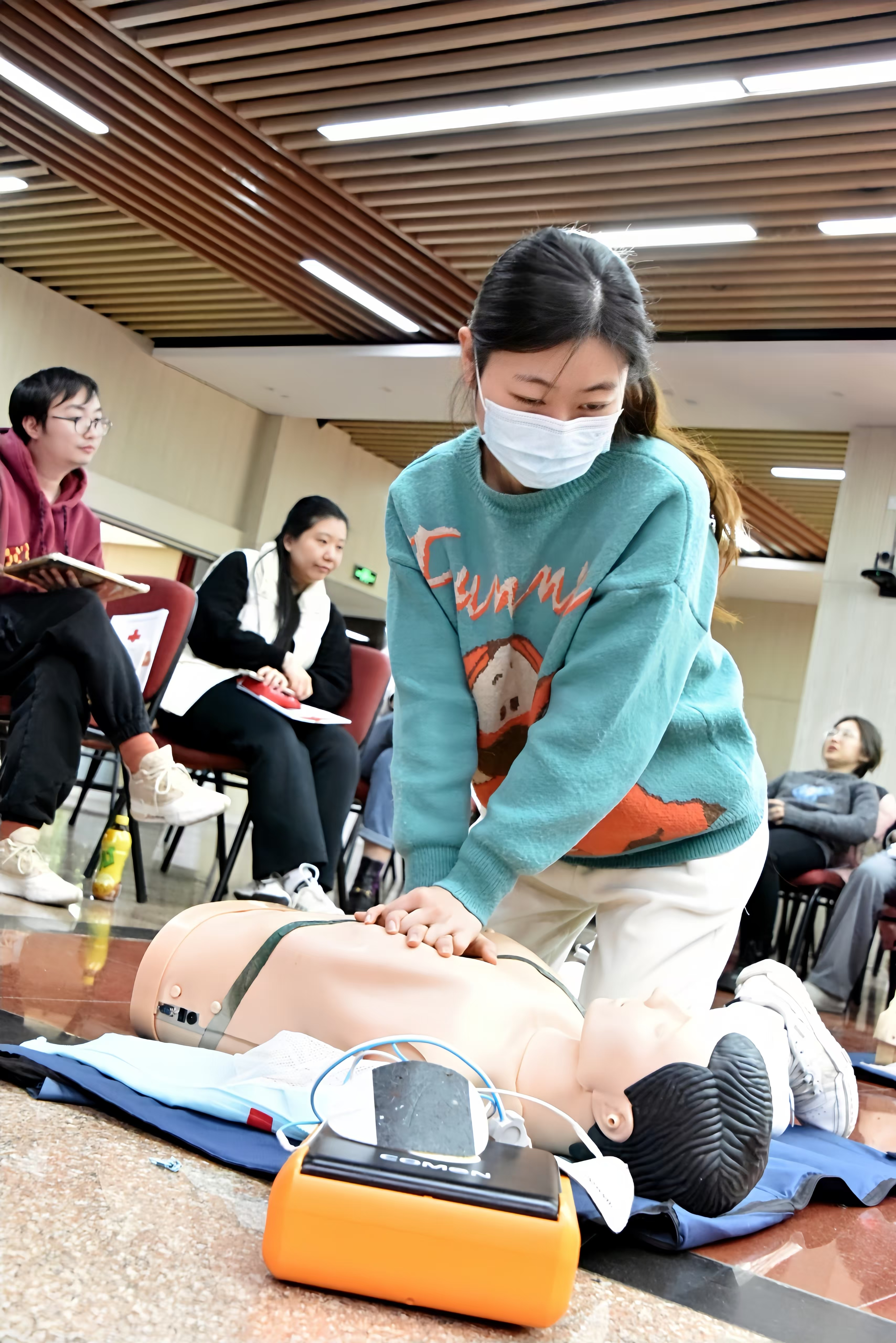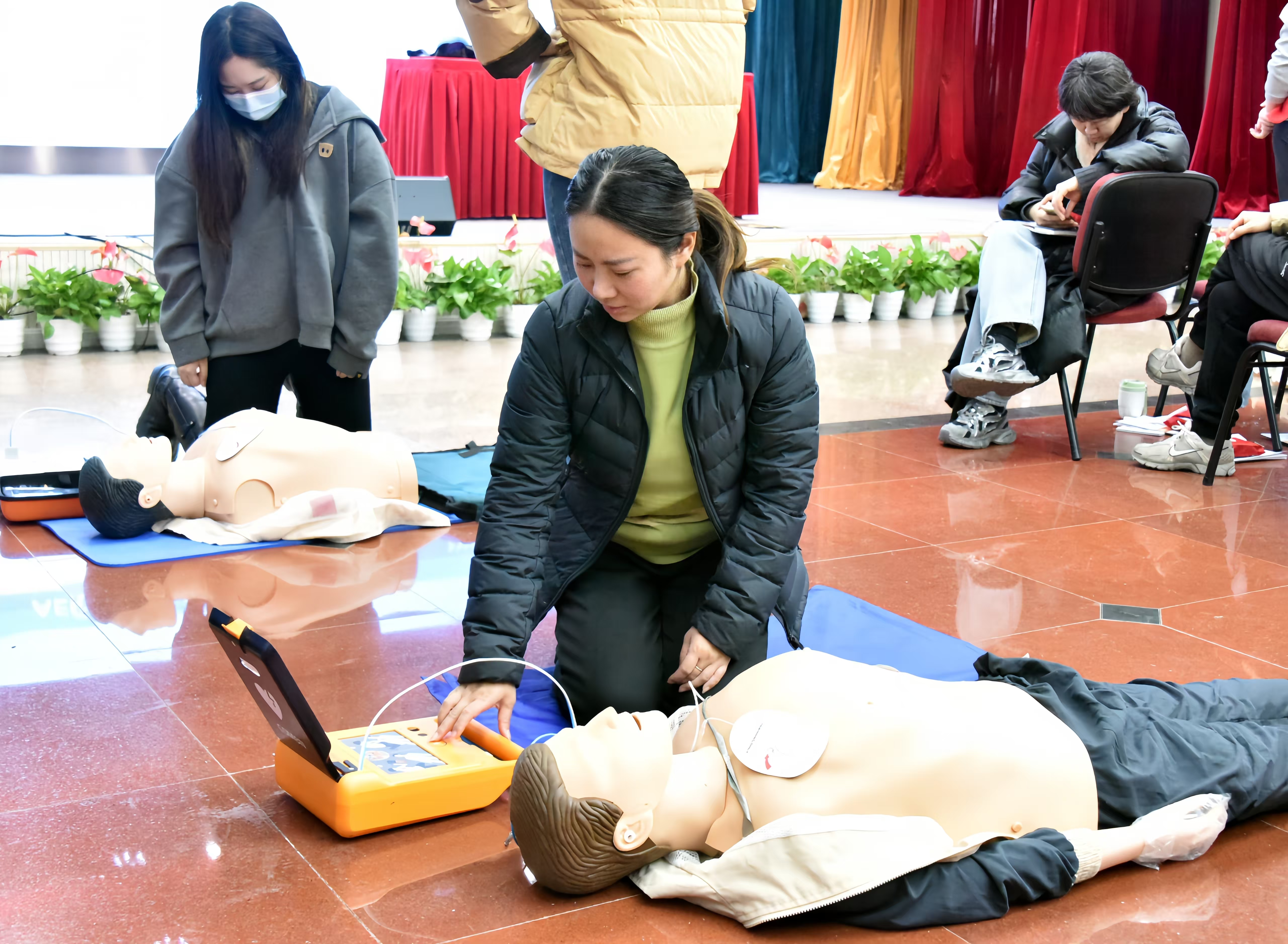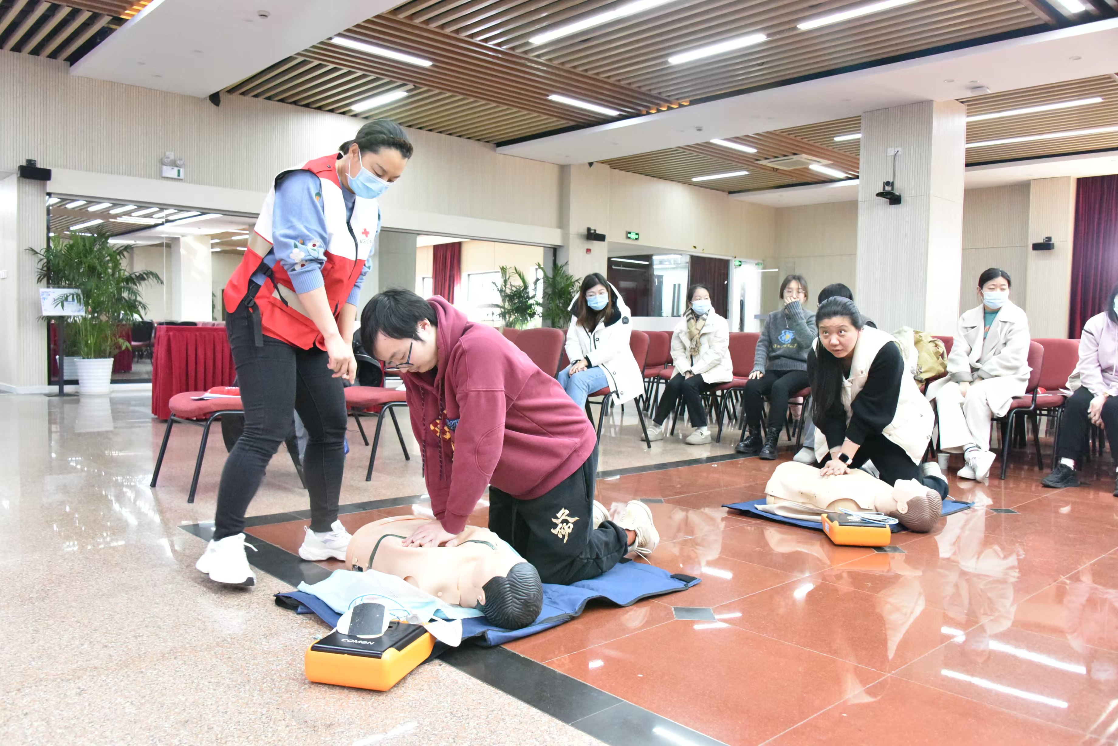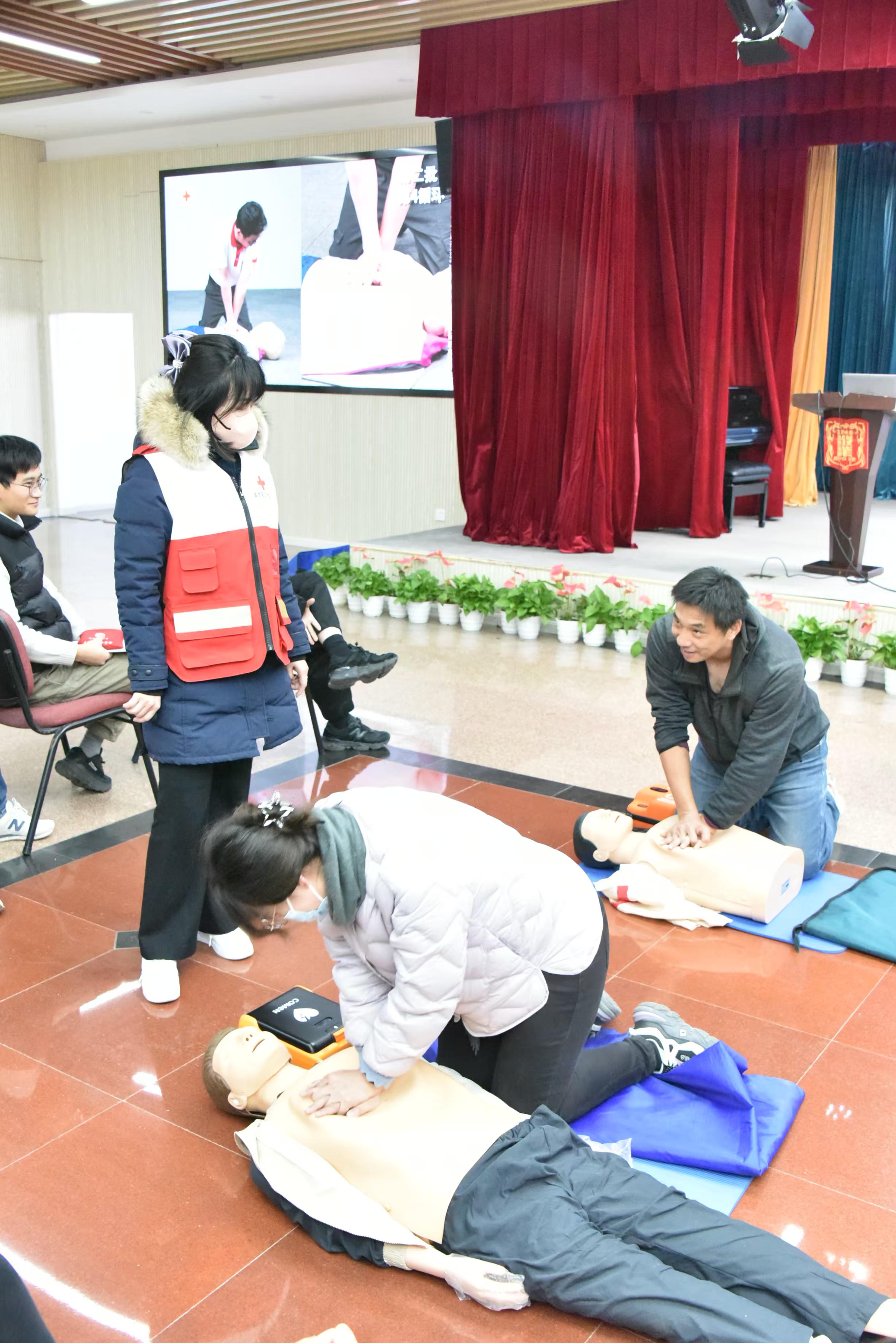 此次培训采用了“线上 4 课时理论学习 线下 4 课时实操培训”的模式进行。在线上理论学习阶段,老师们利用课余时间,通过网络平台深入学习急救基础理论,从急救原则到各类救护方法的适用范围,为后续实操培训筑牢了坚实的理论根基。线下实操培训环节,老师们在区红十字会授课讲师的指导下学习了心肺复苏、aed使用、气道异物梗阻处理、止血包扎等重要的急救技能。实操演练环节,老师们热情高涨,积极练习,力求每个动作做到位、做到标准。