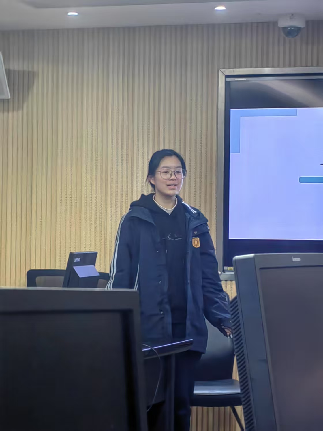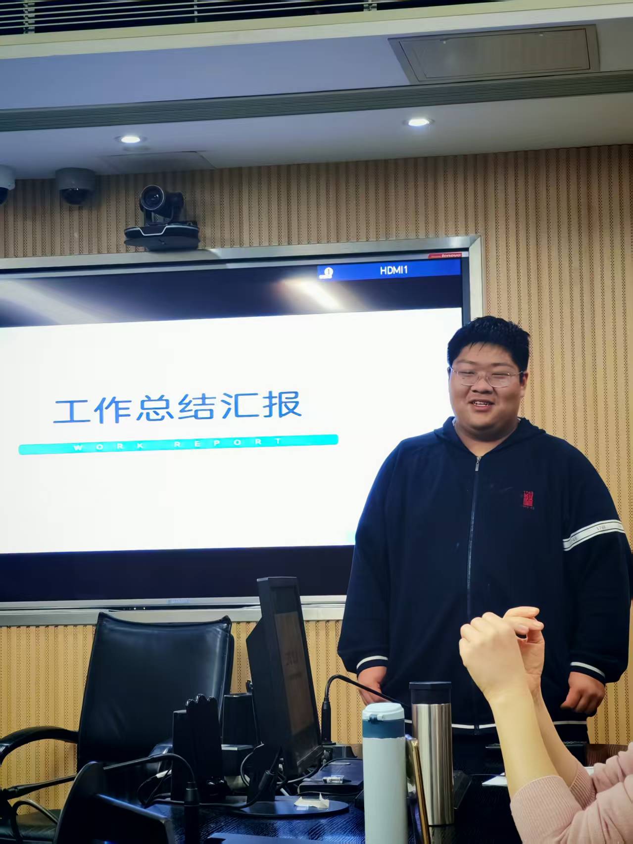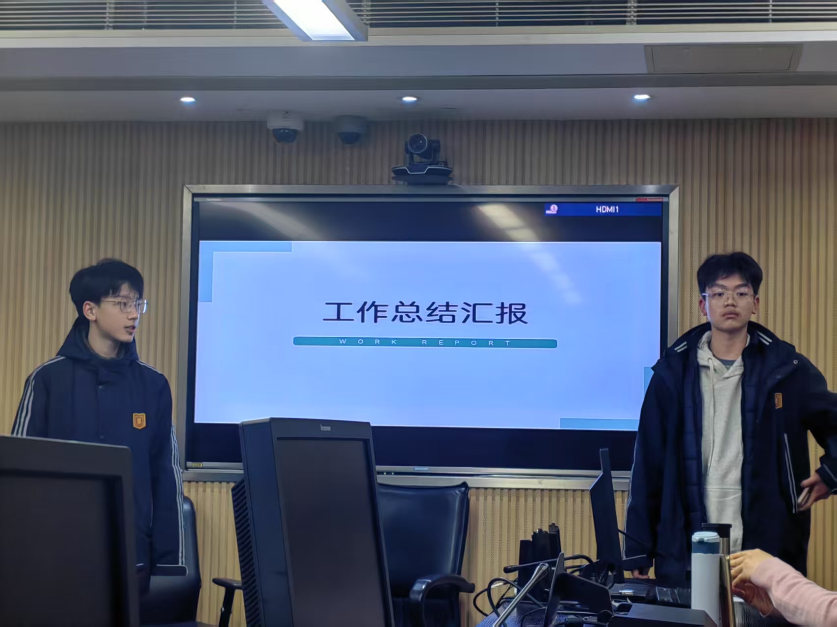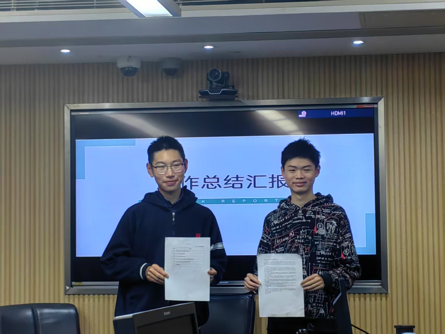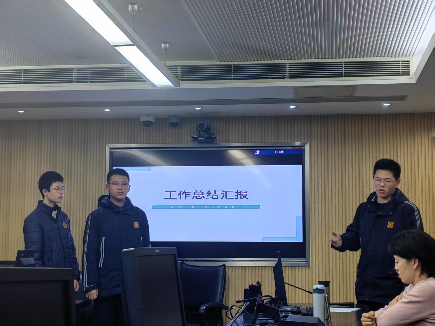 第一组同学丁逸宸和徐子耀汇报了在公司金融业务部的工作,他们观察并详细记录了公司金融业务的办理流程,主动帮助工作人员整理、修订、装叠了两百多份业务资料,发挥了敬业学子勤奋务实的敬业精神,沉浸感受到金融行业的办公氛围,度过了充实的社会实践。