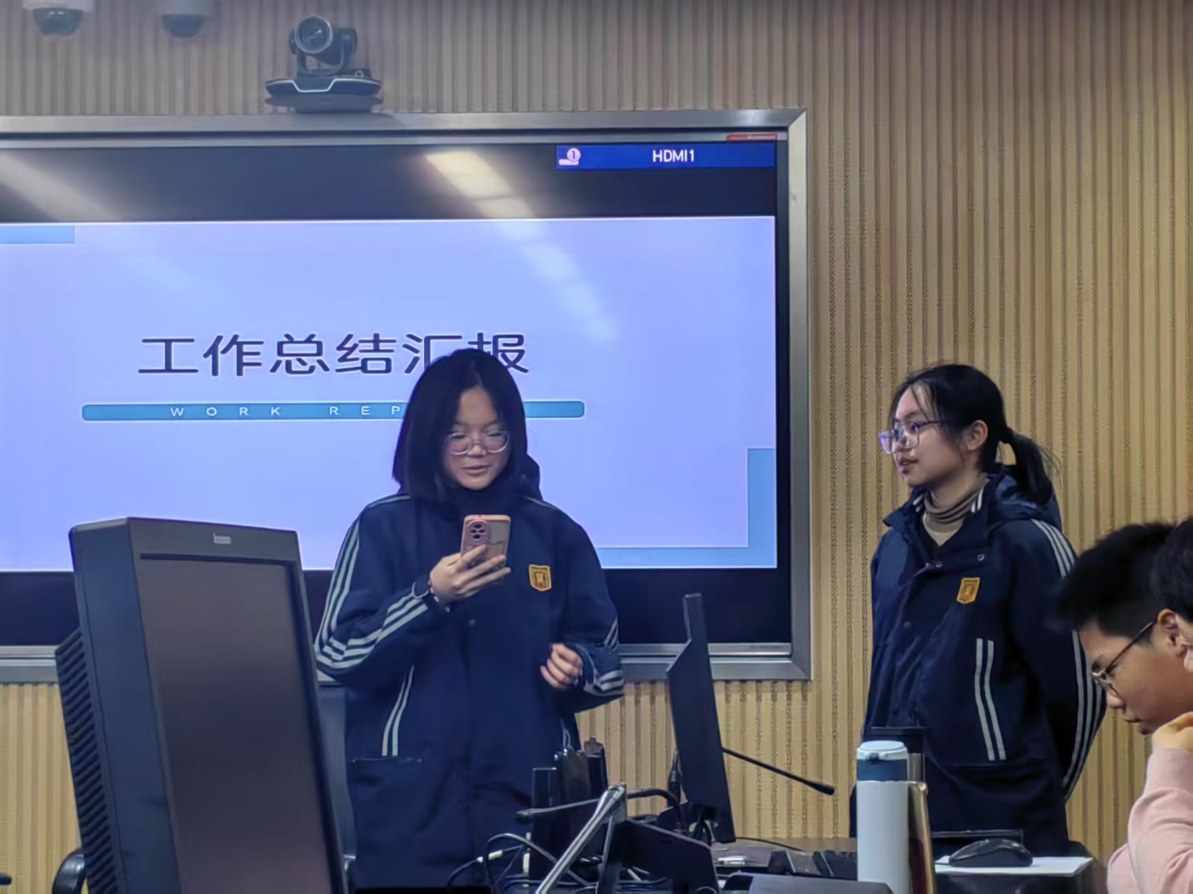 1月21日,2027届商科班为期5天的工商银行卢湾支行社会实践完成了总结汇报,17位同学共聚一堂,充分交流了一周以来的工作经历和心得。德育处袁凌蓉老师观摩了本次总结,并代表学校向金钟支行总部表示了感谢。