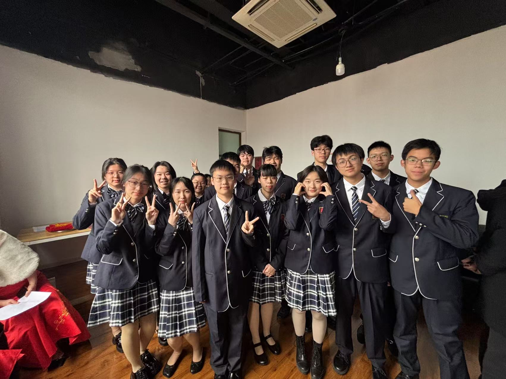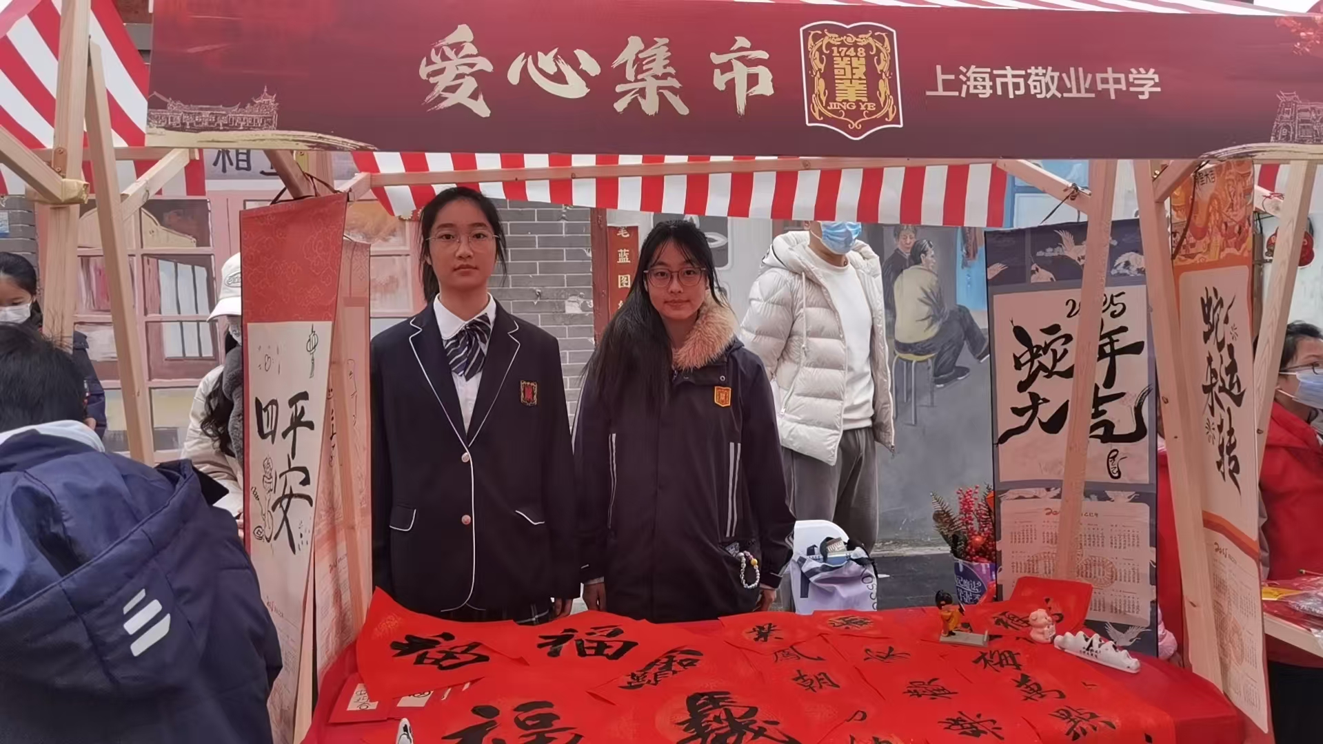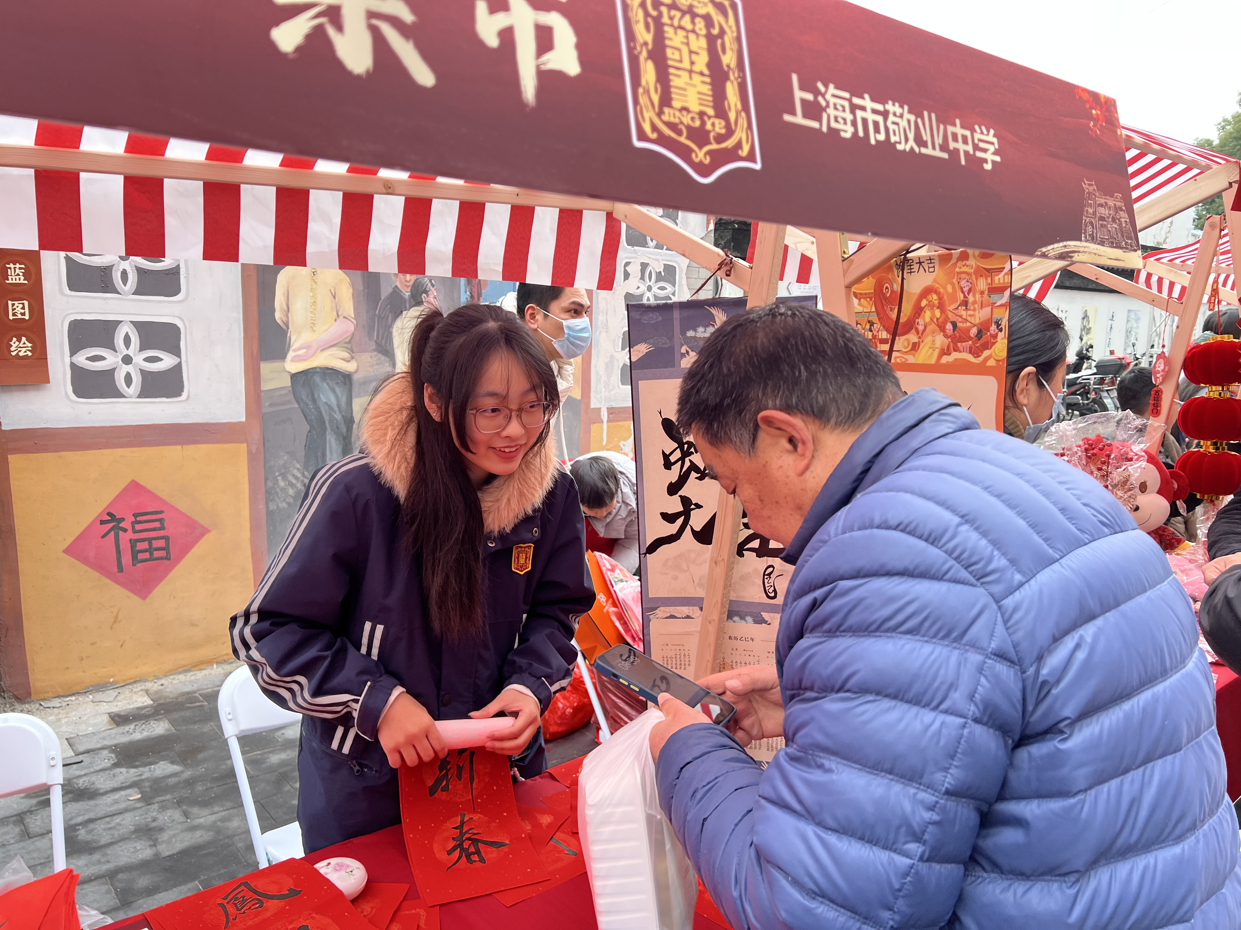在喜迎寒假的同时,黄浦区老西门街道也迎来了第二十届春联大会,我校艺苑沙龙、合唱队和戏剧社的同学参与了本次活动,艺苑沙龙的同学们用笔墨书写对于新春的祝福,戏剧社、合唱队的同学们则以情景合唱的形式,再次演绎了生动感人的《我爱你中国》。在喜庆的农历蛇年即将到来的日子里,敬业人用书画、歌声和演绎,表达了对祖国的深切热爱和与老西门街道共迎佳节的喜悦。歌唱声把我们最深切的祝福传达至万家,而春联、福字的撰写更直接地表达了敬业人的祝愿。
