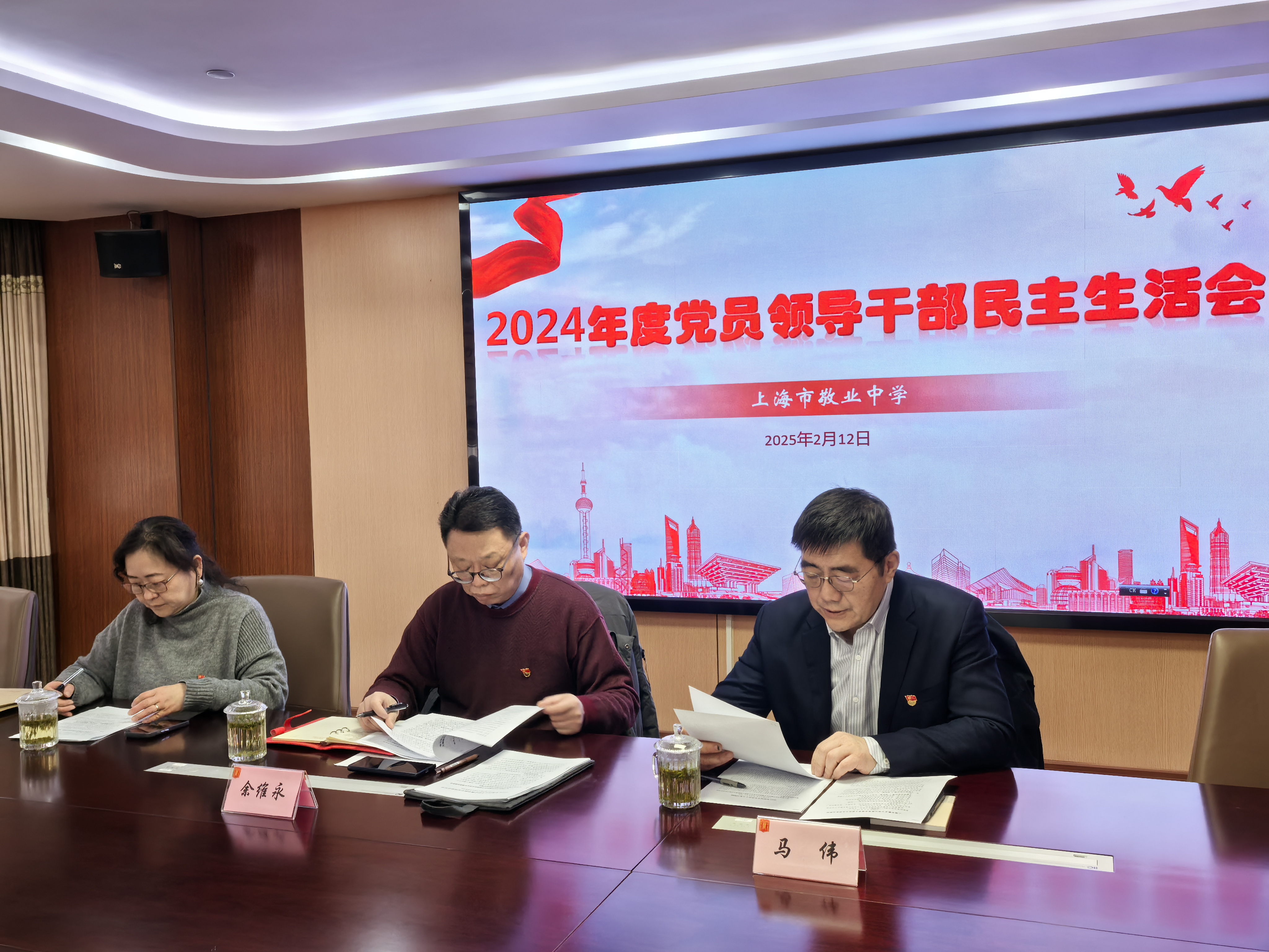 会议上,党总支书记马伟首先代表领导班子作对照检查材料汇报;随后,马书记和金校长依次进行对照检查,两位同志自我批评后,班子其他同志对其进行批评。余局长在讲话中指出这次生活会感觉会前准备充分,班子成员都以诚恳的态度进行了批评和自我批评,勇于正视缺点和不足,敢于触及思想、正视矛盾,从世界观、人生观、价值观深刻检查剖析问题根源,并提出切合实际的改进措施。并要求大家要把思想成效转化为工作动力,把敬业中学党政班子建成一个上级满意、群众认可、成员信赖的坚强集体,能真正担负起敬业教育改革发展的重任。