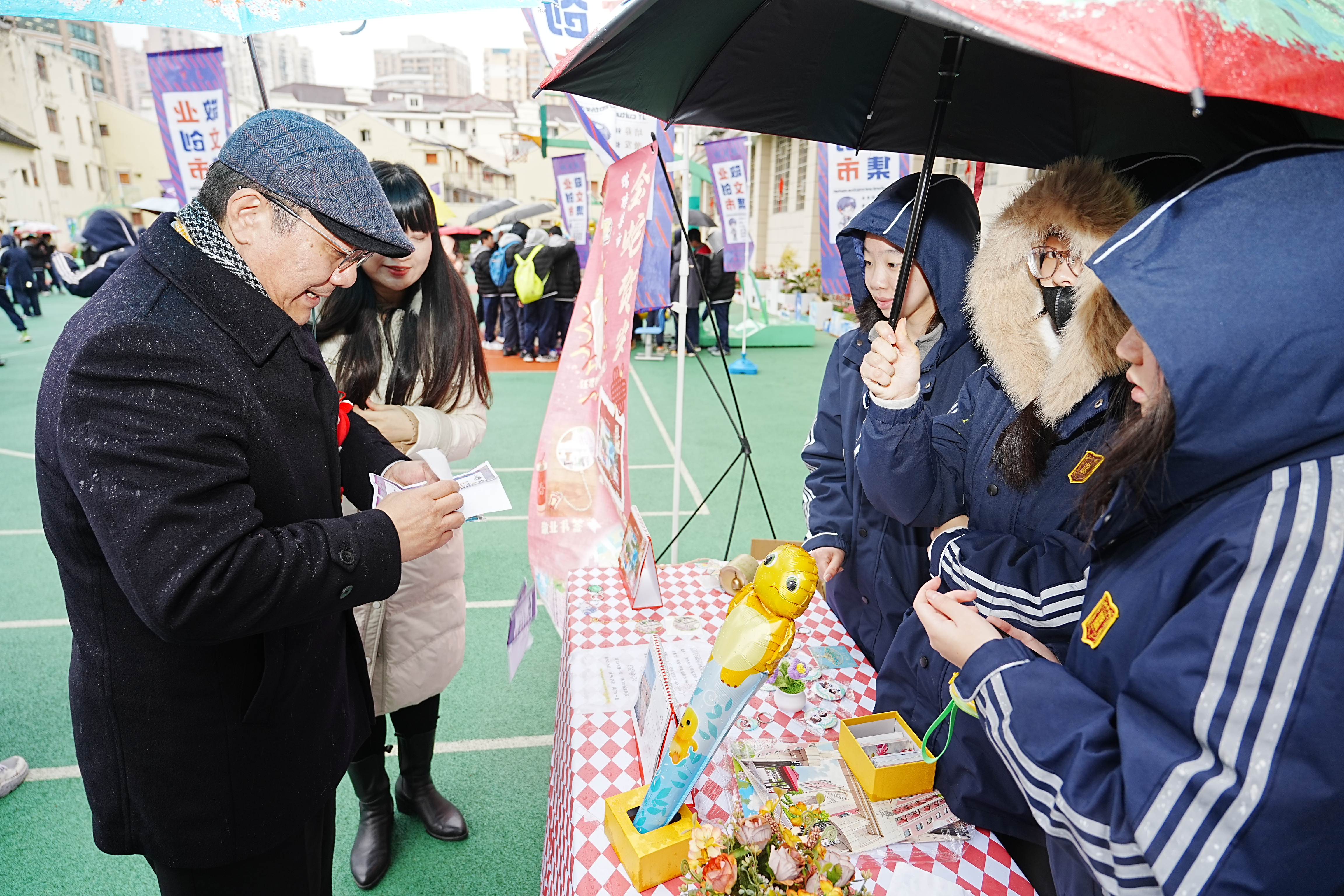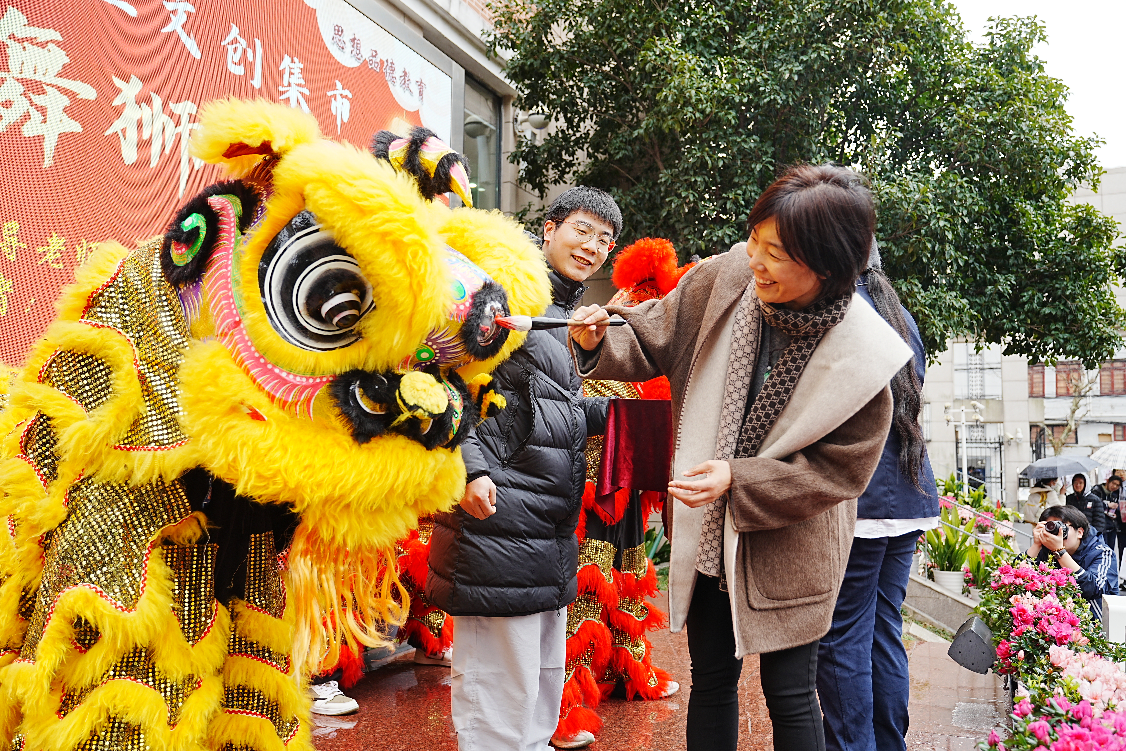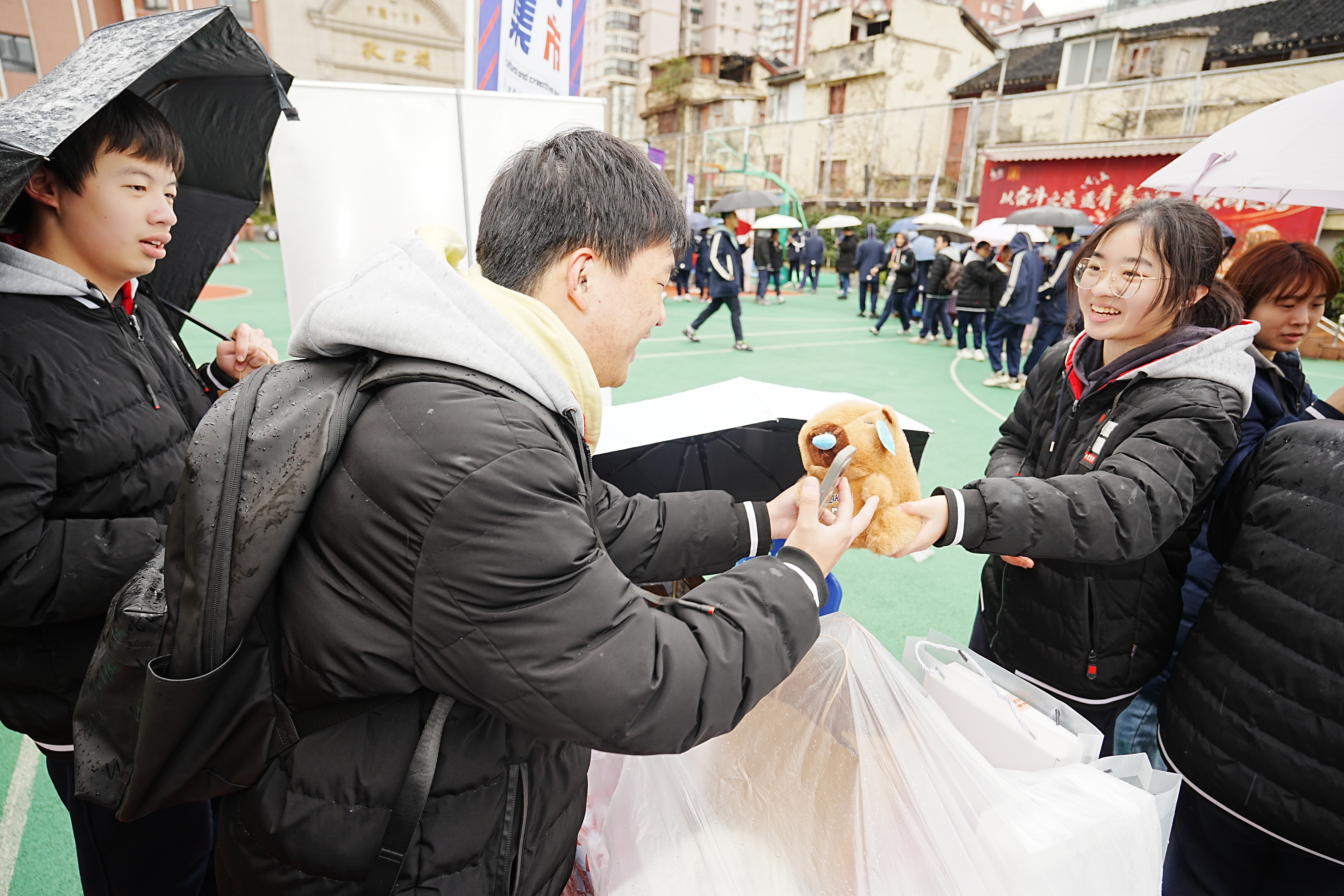 开幕式上,高一3班的费子媛同学面对突如其来的雨水,依然从容不迫地完成了主持任务。随后,在余媛媛老师指导下的啦啦操表演瞬间点燃了现场气氛,赢得了热烈的掌声。紧接着,副校长张丽霞和学生会主席姚妍赉为舞狮点睛,陈思凡老师指导的舞狮表演将舞蹈、武术和音乐融为一体,充分展现了传统文化的活力与魅力。最后,随着第三届敬业文创集市销冠团队的黄琛同学敲响开市锣,集市正式拉开帷幕!