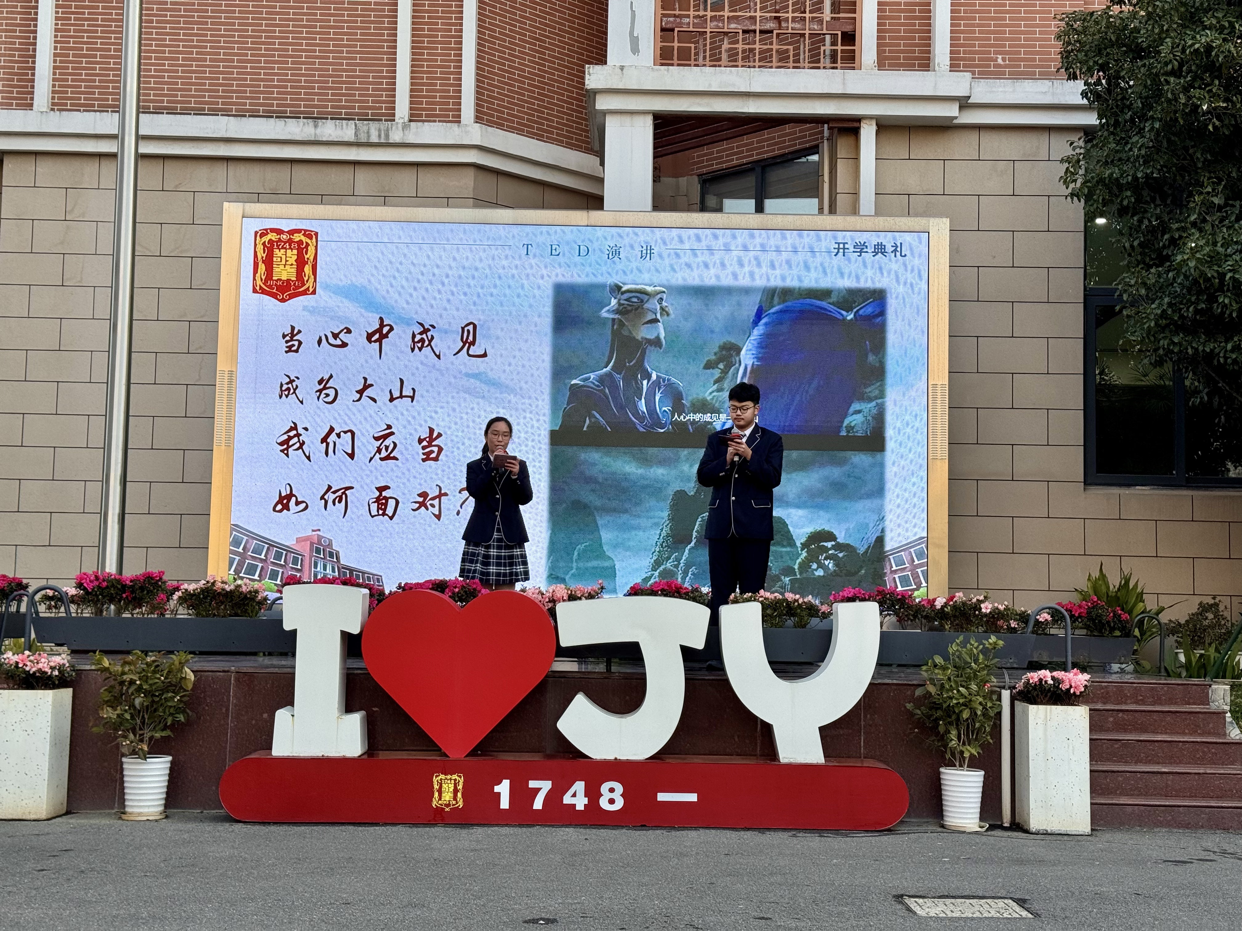 首先,我校学生媒体中心的同学制作了一段视频,回顾了敬业学子们充实而有意义的寒假生活,并展示了部分同学和老师对新学期的目标与展望。接着,两位主持人结合近期备受关注的电影《哪吒2》,分享了他们的见解。他们认为,哪吒“我命由我不由天”的精神同样可以在敬业学子身上体现,要实现自己的目标,就必须努力奋斗,挥洒青春的汗水。