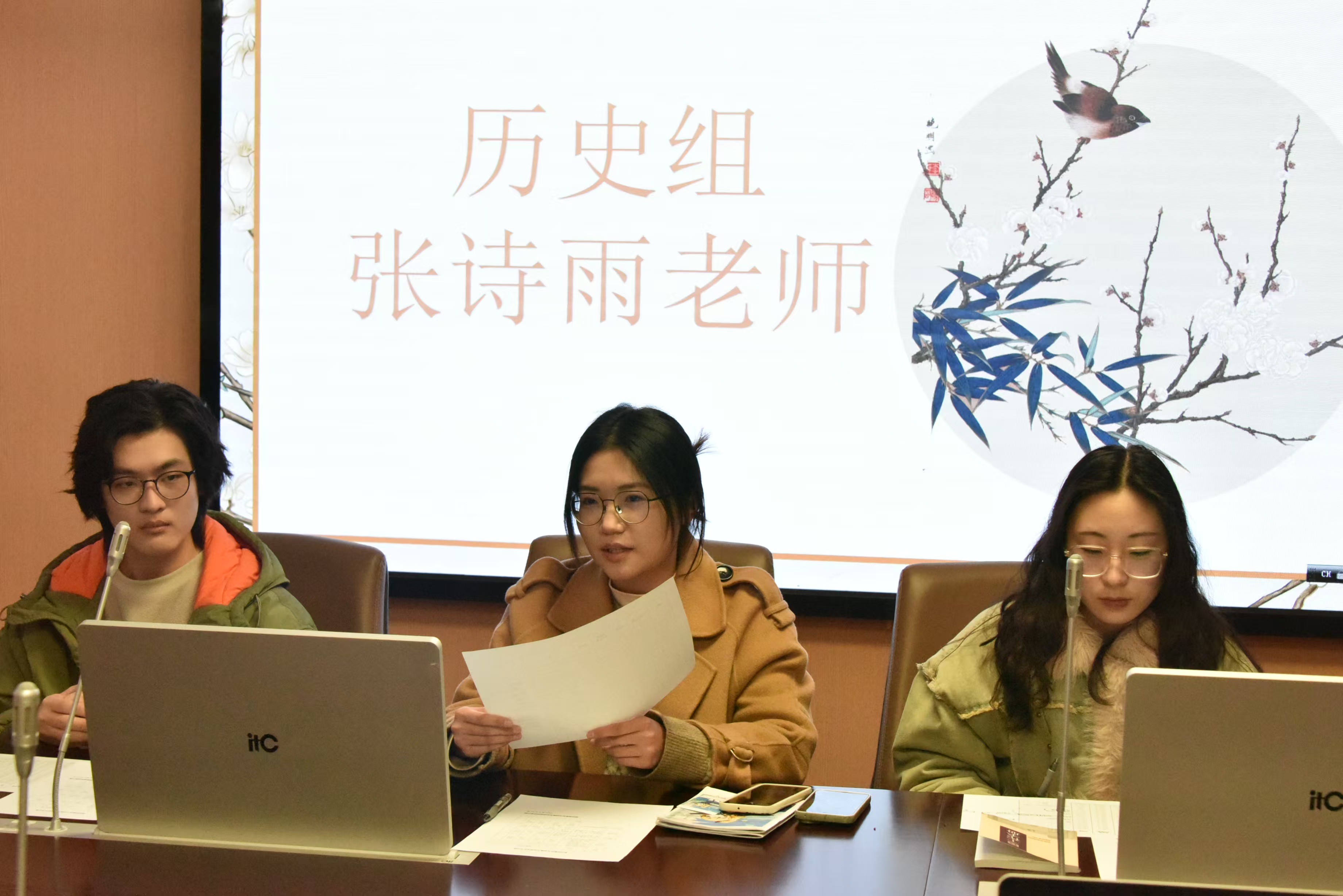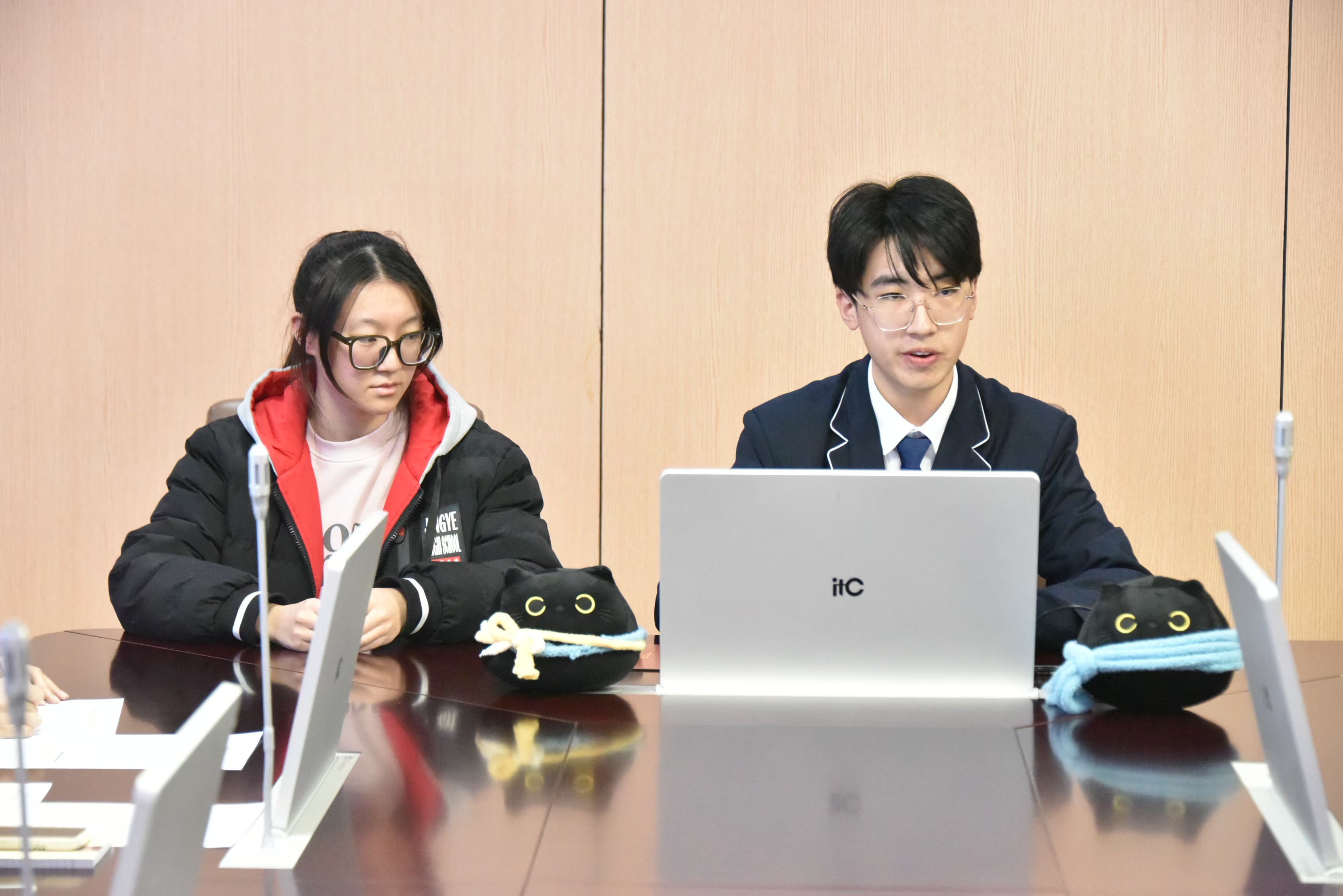 校历史组张诗雨老师,代表我校老师出席了本次评审会,并作出精彩而深刻的点评。她表示,历经四年,敬业集市活动的模式日渐成熟,然而在每一年的文创产品中,老师和同学们总能看到其中的变与不变:变的是文创产品的日新月异,不变的是jyers对母校的喜爱和热忱,以及对敬业中学277年历史的继往开来。通过此次活动,同学们不仅提升了财经素养和媒介素养,还锻炼了策划能力和团队协作能力。更重要的是,它让同学们收获了快乐、收获了成长,更收获了属于自己的“敬业记忆”。之后,2024届青年校友,现就读于上海戏剧学院的王梓颖学姐,代表校青年校友会参与本次评审会并发言。她借用“长江后浪推前浪”,表示了自己对集市优秀文创产品的肯定,并用自己的经历诠释着对这份精神的坚守与追求。