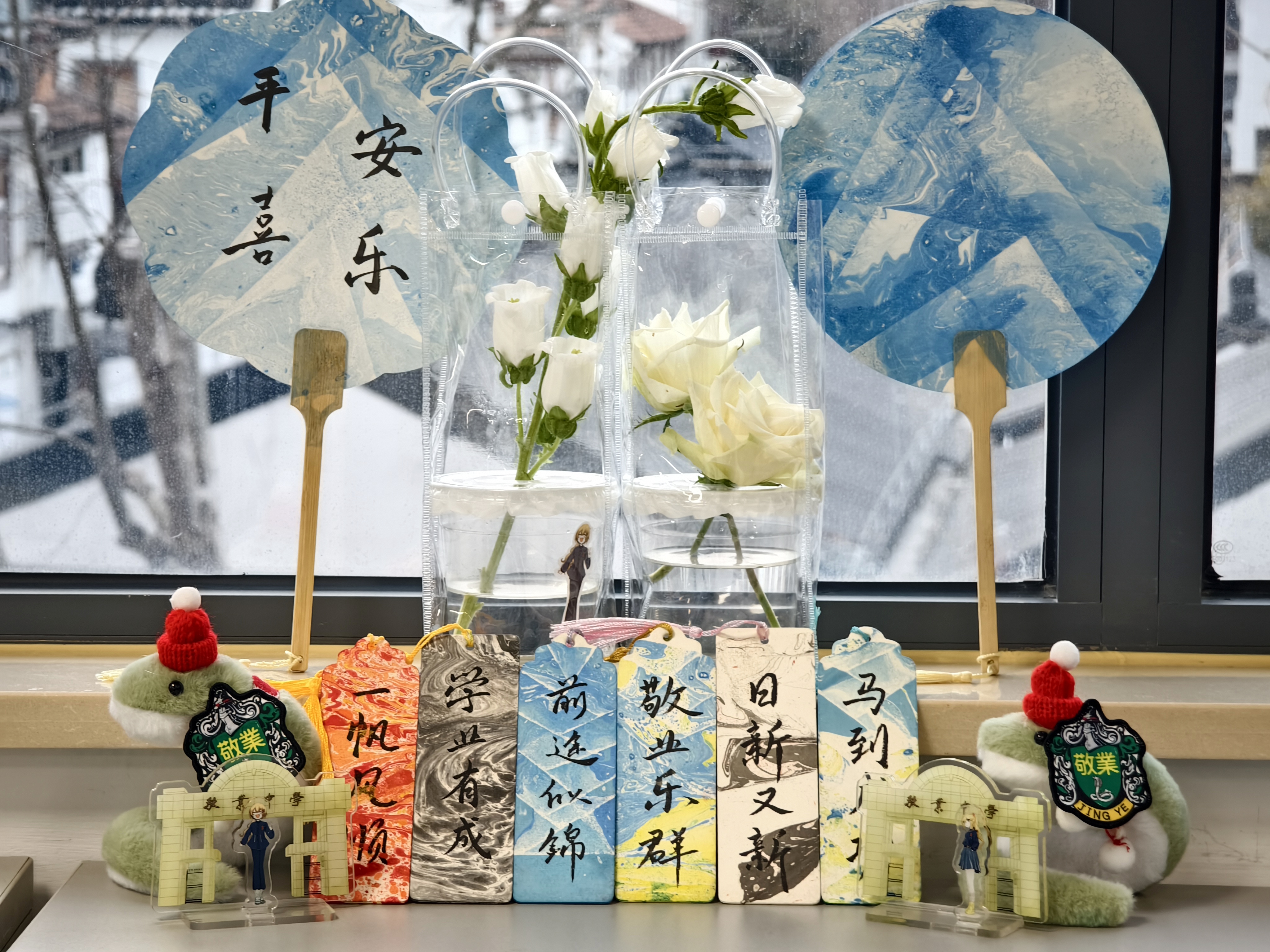 2月21日,我们举办了集市分享交流会,共同回味这场文化盛宴的难忘时刻。校德育处袁凌蓉老师,储玥、王靖、张诗雨三位青年教师,以及周申申、王梓颖、殷紫倩三位青年校友参与了本次项目评优会。在14日的当天集市中,20个摊位各展风采,文创产品琳琅满目。高一1班、高一4班、高一5班、高一7班、高二1班、高二3班、高二5班、高二6班,以及高一语文年级组青春诗会,凭借着独特创意、精湛工艺和满腔热忱,赢得了广泛关注,入围到本次优秀项目评选会现场。评优会上,各优秀摊位同学代表分享了筹备过程,交流了文创产品的设计理念,并且向老师和校友展示了旗下文创产品。部分摊位的商品更是让人眼前一亮:敬业小熊、二次元立牌、非遗漆扇、奶龙挂件、《青春之歌》诗集……每一件作品都蕴含着同学们对传统文化的热爱与创新,让嘉宾们在熟悉中寻得惊喜,流连忘返。