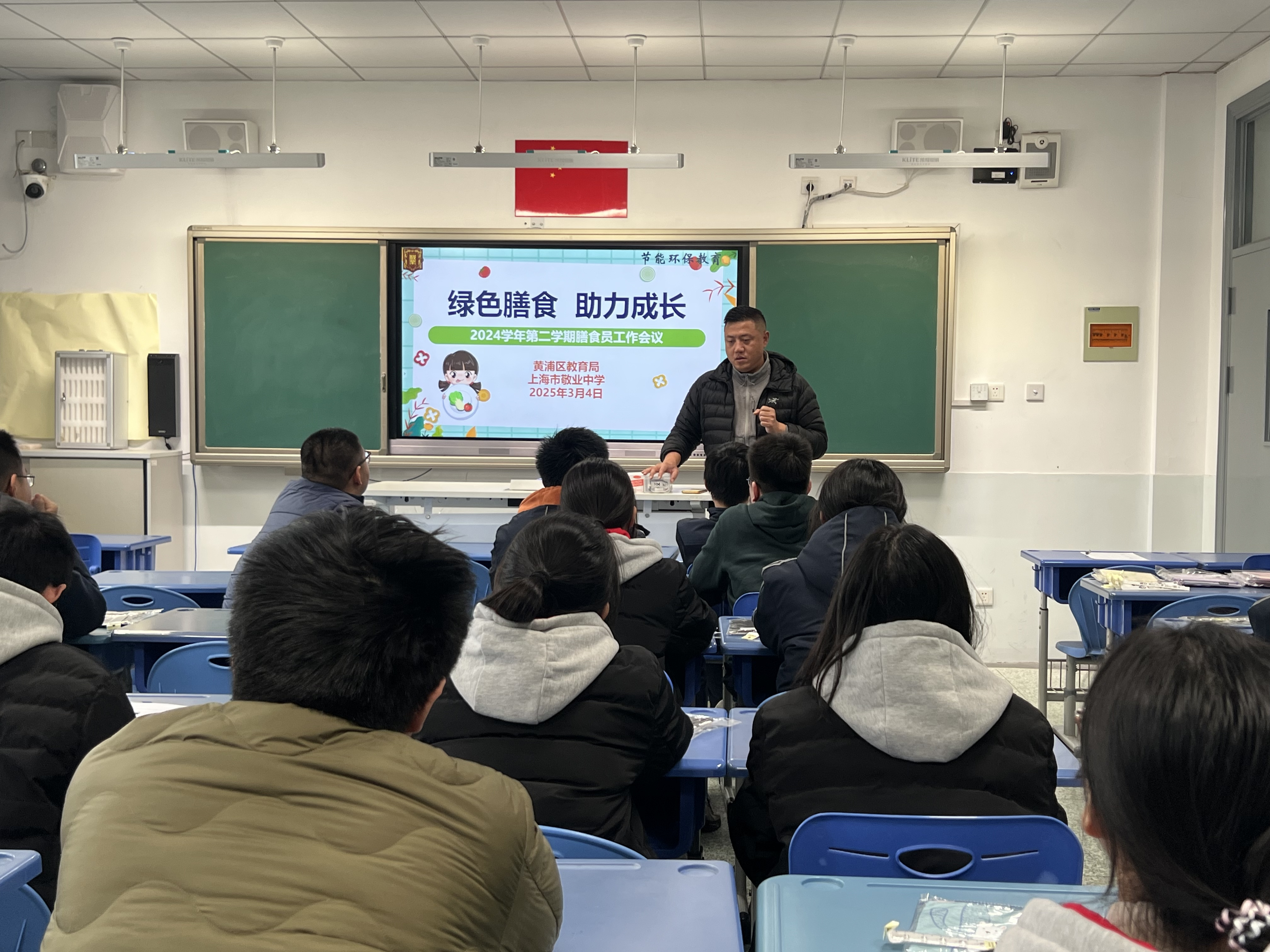 为进一步提升学生食堂服务质量,保障学生饮食健康,打造更优质的就餐体验。我校于3月4日开展2024学年第二学期“绿色膳食 助力成长”主题膳食员工作会议。此次会议由董颖老师主持,总务主任计徐康老师、德育副主任袁凌蓉老师、食堂管理员高经理以及各班24位膳食员共同参会。